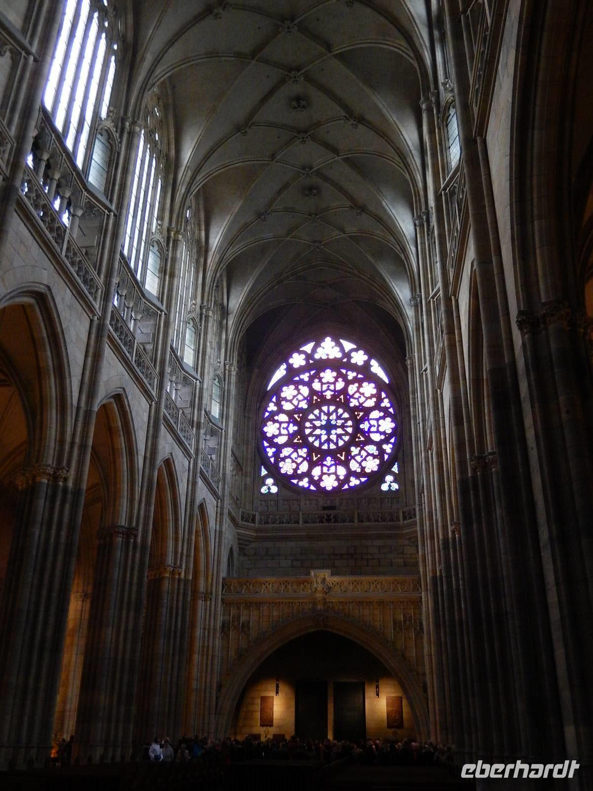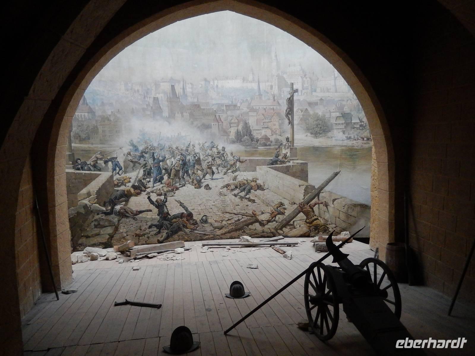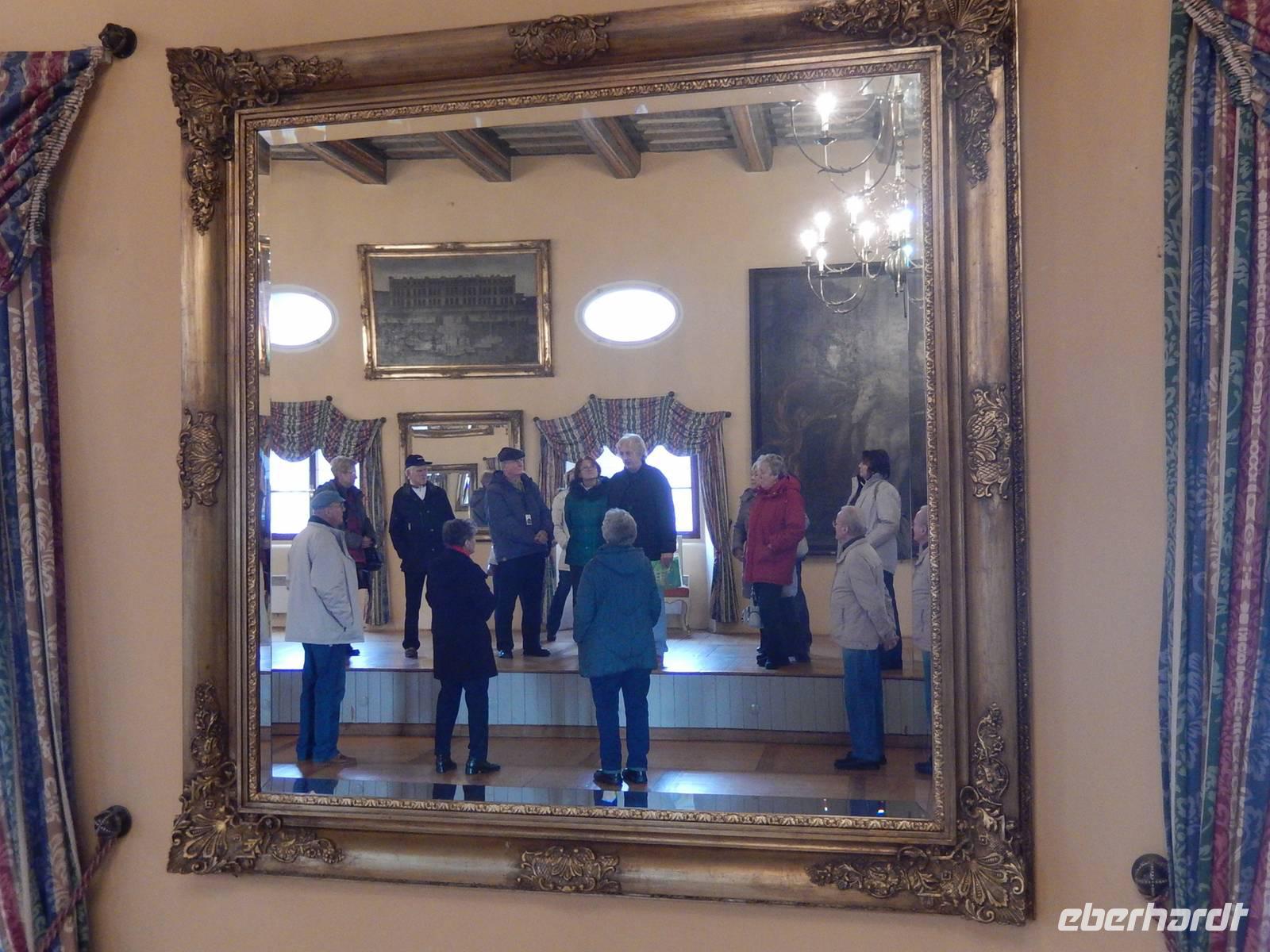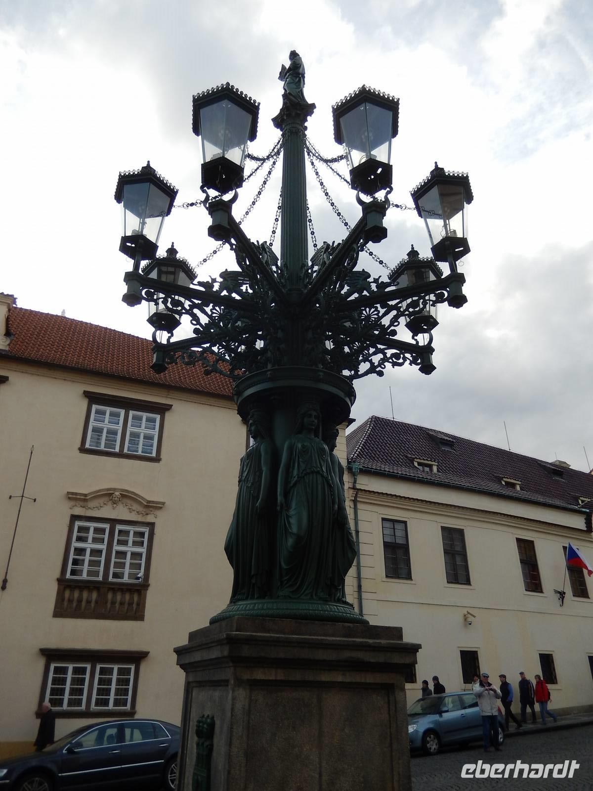 Nach gutem Schlaf wurden wir zum reichhaltigen Frühstücksbuffet mit Musik vom Klavier verwöhnt und konnten uns für den bevorstehenden anstrengenden Tag stärken. Das Buffet ließ keine Wünsche offen und gut gelaunt trafen wir uns in der Lobby und dort auf unsere freundliche Stadtführerin Irena, die uns die kommenden Tage begleiten sollte. Unsere erste Station war der Berg Petrin, den wir eigentlich mit einer Standseilbahn erreichen wollten. Leider wird diese im Moment gewartet und da uns noch einige Kilometer an diesem Tag erwarten sollten, haben wir uns für eine bequeme Anreise per Kleinbus-Taxi entschieden. Kurz vor 10 Uhr waren wir da und unsere erste Station hieß Spiegelsaal... So manch einer fühlte sich zurückversetzt in Kindertage beim Bewundern der Spiegelbilder. Wir haben herzlich gelacht! Und dann standen wir am Eiffelturm - richtig gelesen, am Eiffelturm. Ein wenig kleiner als das Original in Paris, aber für unsere Zwecke optimal. Zum einen handelt es sich dabei um eine Sehenswürdigkeit, die nicht zum Standardprogramm in Prag gehört udn zum anderen hat man von hier einen fantastischen Ausblick über Prag. So konnten wir auch ein paar schöne Fotos schießen. Einige von uns sparten sich dabei den Aufzug, der uns noch knarrenderweise nach oben gebracht hatte und spazierten die 299 Stufen wieder turmab. Eisiger Wind aber auch tolle Blicke waren der Lohn. Nach diesen Höhepunkten begann der anstrengende Teil des Tages. Zuerst spazierten wir gemütlich mit Irena in Richtung Burgviertel. Plötzlich rannte Uwe vom Ende der Gruppe ganz nach vorn - eine sportliche Höchstleistung! Grund dafür war die Intuition ein traumhaftes Gruppenbild zu schießen, in Ruhe vor der Kulisse von Prag bevor wir uns in Richtung Burg bewegen. Vorbei am Lorettoplatz suchen wir uns aber erstmal ein Restaurant zur Stärkung. Wir kehren im "Nepomuk" ein und jeder stärkt sich individuell für die folgenden Kilometer. Das Essen ist schmackhaft - zumindest bei den meisten - und die Bedienung... naja, wichtig ist ja, dass wir pünktlich zur Wachablösung vor den Toren des Hradschin stehen. Spätestens ab hier merken wir auch, wie attraktiv die tschechische Hauptstadt für Touristen aus aller Welt ist. Es fällt Irena nicht imemr leicht unsere eigentlich angenehm kleine Gruppe immer zusammen zu halten, aber mit orangen Handschuhen und auberginfarbene Schirm und bei diesen top disziplinierten Gästen geht natürlich alles gut. Und so bewundern wir im Alten Königspalast natürlich die historisch berühmte Böhmische Kanzel, von der aus der Prager Fenstersturz 1618 quasi den 30-jährigen Krieg auslöste... Anschließend stehen die St. Georgs Basilika und das Goldene Gässchen auf dem Programm und mit Irena an unserer Seite bleibt keine Frage unbeantwortet. Zum Schluss schlüpfen wir noch in den monumentalen St. Veits-Dom und lauschen den Geschichten von Nepomuk und dem Heiligen Wenzel. Am Ende haben wir ein bisschen Zeitnot, denn unser voll gepacktes Programm wartet mit dem nächsten Höhepunkt. An der Haltestelle Prager Burg steigen wir in eine
