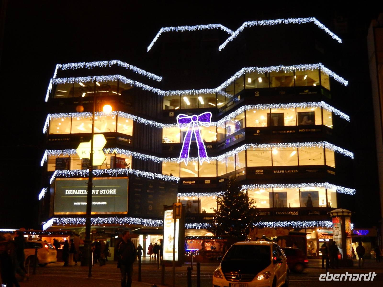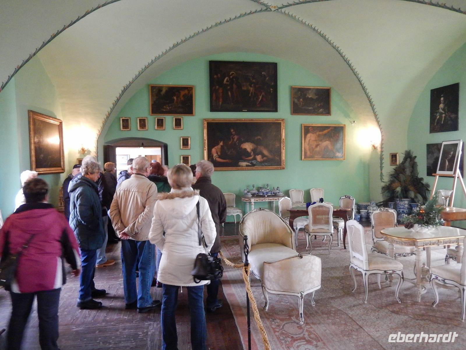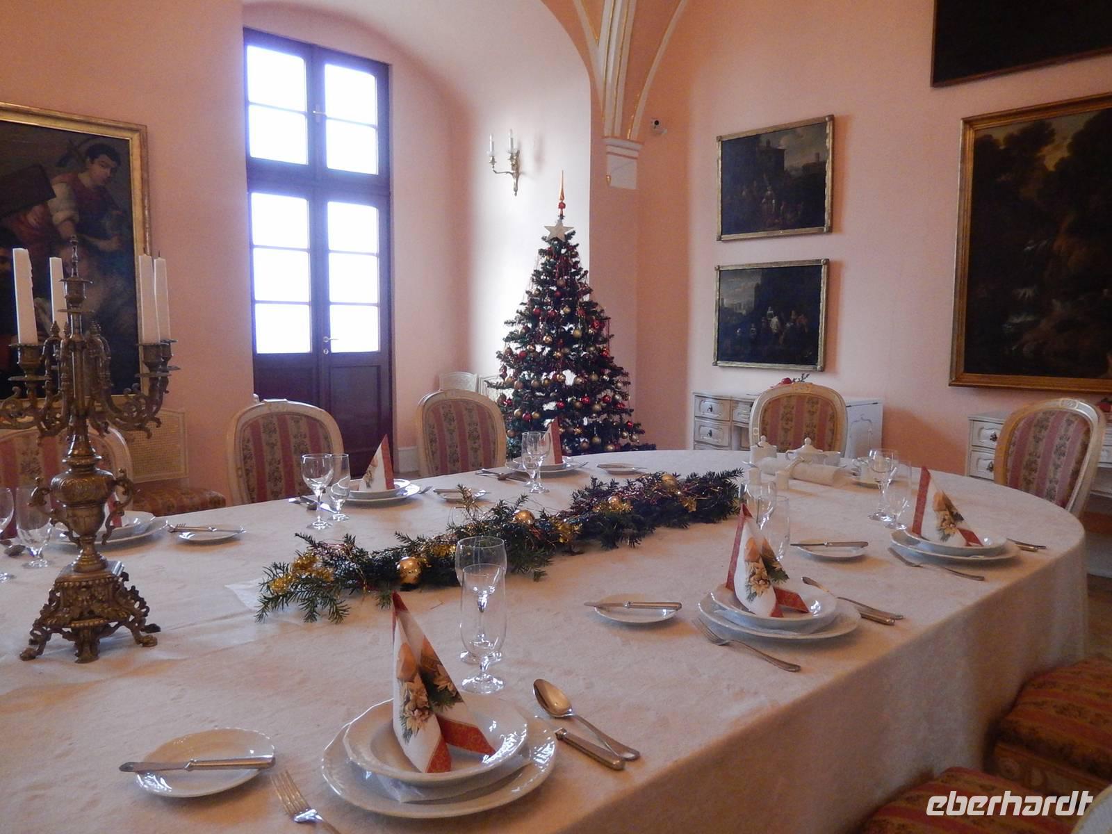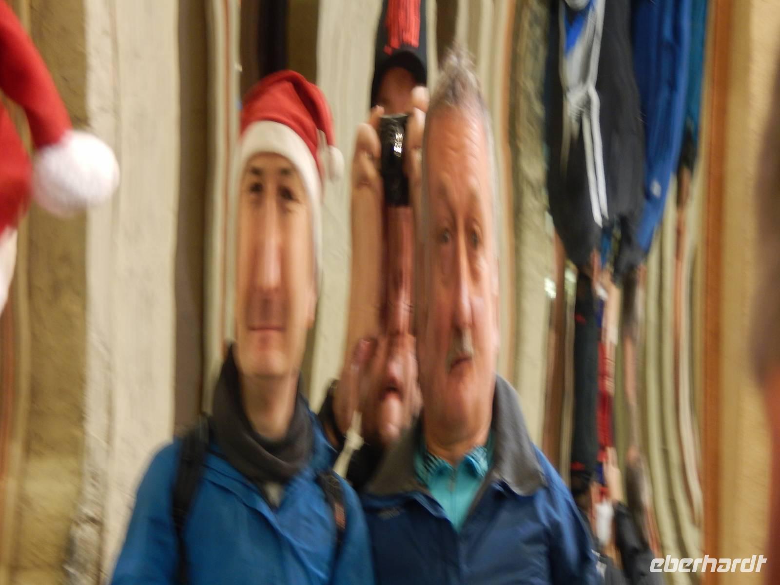 Für unsere Verhältnisse recht spät, erst gegen 10 Uhr, startete die diesjährige Treuekundenfahrt im Advent, am Freitag dem 11.12.2015 vom Betriebshof von Eberhardt TRAVEL in Kesselsdorf. Da um diese Zeit im Büro schon emsig gearbeitet wird, hatten wir vorsorglich 3-4 Parklücken reservieren wollen. Die netten Kollegen von SATRA hatten dies wohl missverstanden und so hätten wir gut 2 Reisebusse parken können, aber wie heißt es so schön: Lieber man hat, als man hätte... Diesbezüglich gut versorgt, traf sich die gesamte Reisegruppe dann auch diesmal direkt in der Firmenzentrale. Bevor wir starten konnten, musste allerdings noch der Wermutstropfen verdaut werden, dass Doreen uns dieses Jahr nicht begleiten würde. Der Grund war jedoch ein angenehm süßer mit dem Namen Mia. Doreen ließ es sich nicht nehmen, den knapp 5-monatigen Nachwuchs bei allen Reiseteilnehmern vorzustellen und die verabschiedenden Worte an die Gruppe zu richten. Einigermaßen besorgt hinterließ Sie die Gäste dieses Jahr also einzig der Obhut von René und Uwe - ob das wohl gut geht? Die beiden Reisebegleiter wollten die Fahrt als frisch gebackene Väter auch nutzen, um endlich mal wieder eine Nacht durchzuschlafen... Und so ging es - wie immer zuverlässig chauffiert von "unserem" Andreas Marx - am Vormittag los zur Jubiläums-Advents-Treuekundenfahrt nach Prag. Bereits zum 5. Mal waren wir gemeinsam unterwegs und inzwischen kennt man sich so gut, dass neue Mitreisende herzlich begrüßt wurden und der eine oder andere sogar vermisst. Über die Autobahn ging es in Richtung Tschechien mit dem ersten Ziel Melnik vor Augen. Noch in Deutschland gab es die ersten Geschenke - freudig gesponsert von der Kurgesellschaft Berggießhübel-Bad Gottleuba - einen zünftigen Bergmannsschnaps und eine Brotdose falls irgendwelche Reserven zu verstauen wären. Die Anreise zum ersten Ziel war in diesem Jahr so kurzweilig, dass wir es kaum geschafft haben, den in nächtelanger Detailarbeit vorbereiteten Quiz von Uwe vernünftig auszuspielen. ABER: so konnten wir schon viel Wissenswertes über Tschechien und Prag lernen und nebenbei konnten kleine Präsente abgestaubt werden. Nachdem wir Melnik erreicht hatten, verpflegte uns die Crew erst noch vom Bordservice, was angesichts des zu erwartenden Programms nicht die schlechteste Idee war. Ein kurzer Spaziergang zum imposanten Schloss und bei zunächst wunderbarem Wetter konnten wir einen Blick auf den Zusammenfluss von Moldau und Elbe werfen. Anschließend erwartete uns eine Führung durch das noch heute von der berühmten Fürstenfamilie Lobkowicz bewohnte Schloss, wobei wir nur die der Öffentlichkeit zugänglichen Bereiche besuchen konnten. Einige Zimemr werden noch für private Zwecke genutzt. Während der einstündigen Führung konnten wir aber alles zum Leben, Wirken und Schaffen der Lobkowicz' erfahren. Herrschaftlich eingerichtete Zimmer, große Säle udn die kleine Kapelle vermittelten dabei einen guten Eindruck des Damals und Jetzt auf Schloss Melnik. Bei doch recht frischen Temperaturen, im Übrigen auch im Schloss, waren im Anschluss alle froh, als wir in die Kellergewölbe des Herrschaftssitzes entführt wurden, um einige der hiesigen Weine zu probieren. Bei angenehmen dauerhaften 15 Grad wurde uns nicht nur vom Wein wärmer... Bei Proben von Ludmila Nouveau, Ruländer Blau rosé und rot sowie dem Blauen Portugiesen erfuhren wir dann alles über die Geschichte des kleinen Weinanbaugebietes und die Besonderheiten der nur für den Eigenbedarf gekelterten Weine. Sehr schmackhaft und ein gelungener alkoholischer Einstieg nach Tschechien. Jetzt noch schnell Geld getauscht und dann ging es mit Karel Gott im Ohr in Richtung Prag. Die einsetzende Dämmerung steigerte die Vorfreude auf den ersten Weihnachtsmarkt-Besuch und ohne Komplikationen erreichten wir die Innenstadt. Da unser Hotel mitten in der Altstadt in einer nicht mit dem Bus erreichbaren Straße lag, wurde unser Gepäck transferiert und wir begaben uns zu Fuß auf den Weg zum Hotel. Unser Fahrer Andreas verließ uns, denn ihn würden wir erst am Sonntag zur Rückfahrt wieder benötigen. Leider mussten uns auch Gäste aufgrund von plötzlich auftretender Krankheit gleich wieder verlassen, es geht Ihnen inzwischen aber wieder gut. Alle anderen haben ganz entspannt im sehr schönen Hotel Grand Majestic eingecheckt und dann ging es auf abendliche Erkundungstour zum Weihnachtsmarkt auf dem Altstädter Ring, vorbei an glitzernden Kaufhaus-Fassaden.
