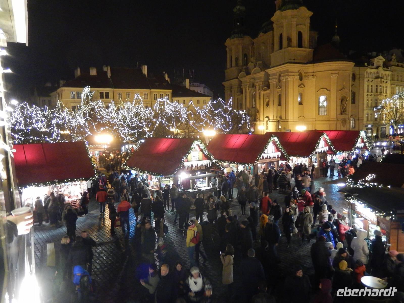 ist wunderschön und bildet ein romantisches Ensemble mit den umliegenden, angestrahlten, historischen Gebäuden. Besonders beeindruckend und ganz anders als gewohnt war der mit reichlich Lichtern geschmückte Weihnachtsbaum inmitten des Platzes. Turmbläser vom Alten Rathaus, Leckereien vom Weihnachtsmarkt und stündlich eine Musik-Licht-Choreographie des Weihnachtsbaumes ließen die Zeit trotz einsetzenden Nieselwetters schnell vergehen. Doch selbst nach Glühwein, Prager Schinken, Kartoffelchips, grober Wurst, Baumkuchen ... hatten die meisten noch nicht genug. Nur gut, dass Uwe und René vorausschauend in einem höchstpersönlichen Restaurant und Bar Plätze vorreserviert hatten. Bei gutem tschechischen Bier, dem einen oder anderen Klargetränk und verschiedenen "Kleinigkeiten zum Bier"ließ die gesamte Gruppe den Abend sehr gemütlich im "Kotleta" ausklingen. Und das Beste: keine 100 Meter bis zum Hotel zurück...