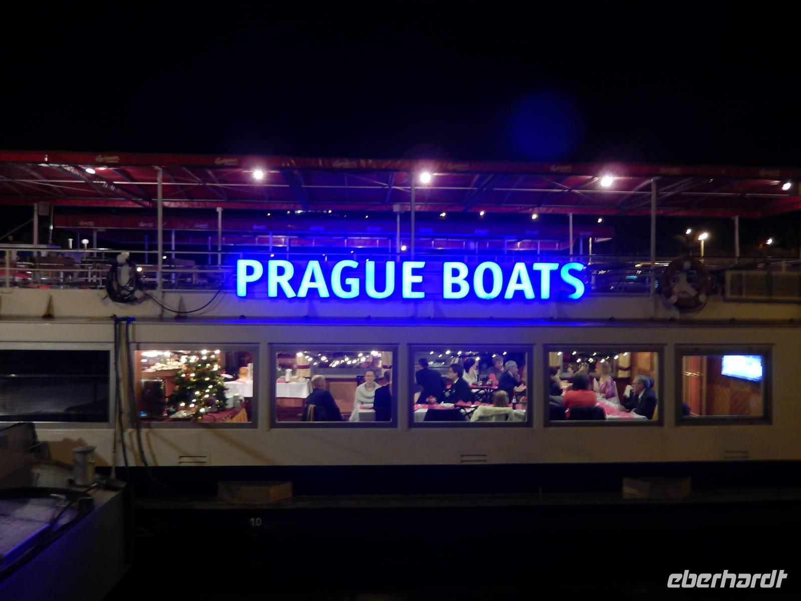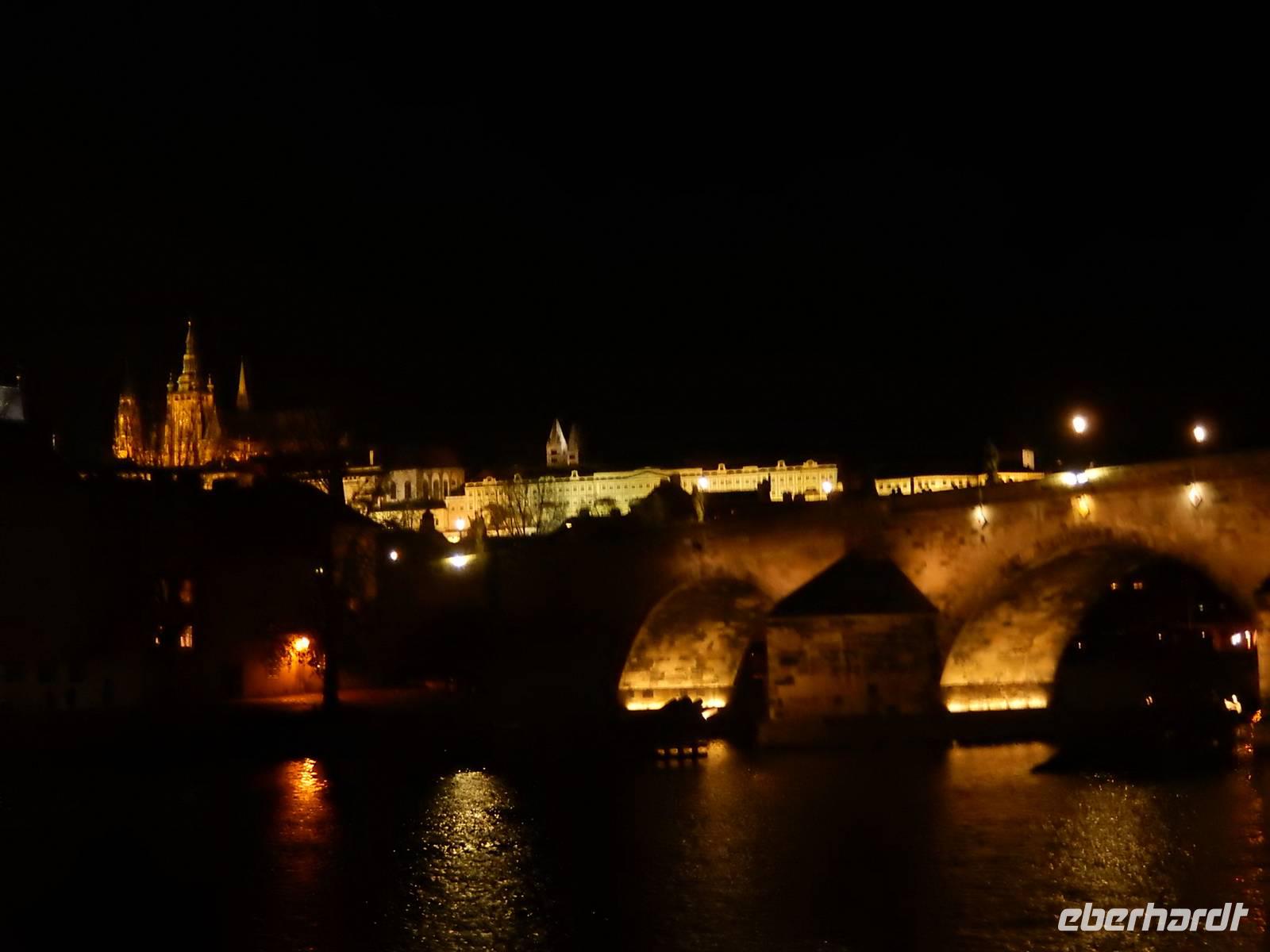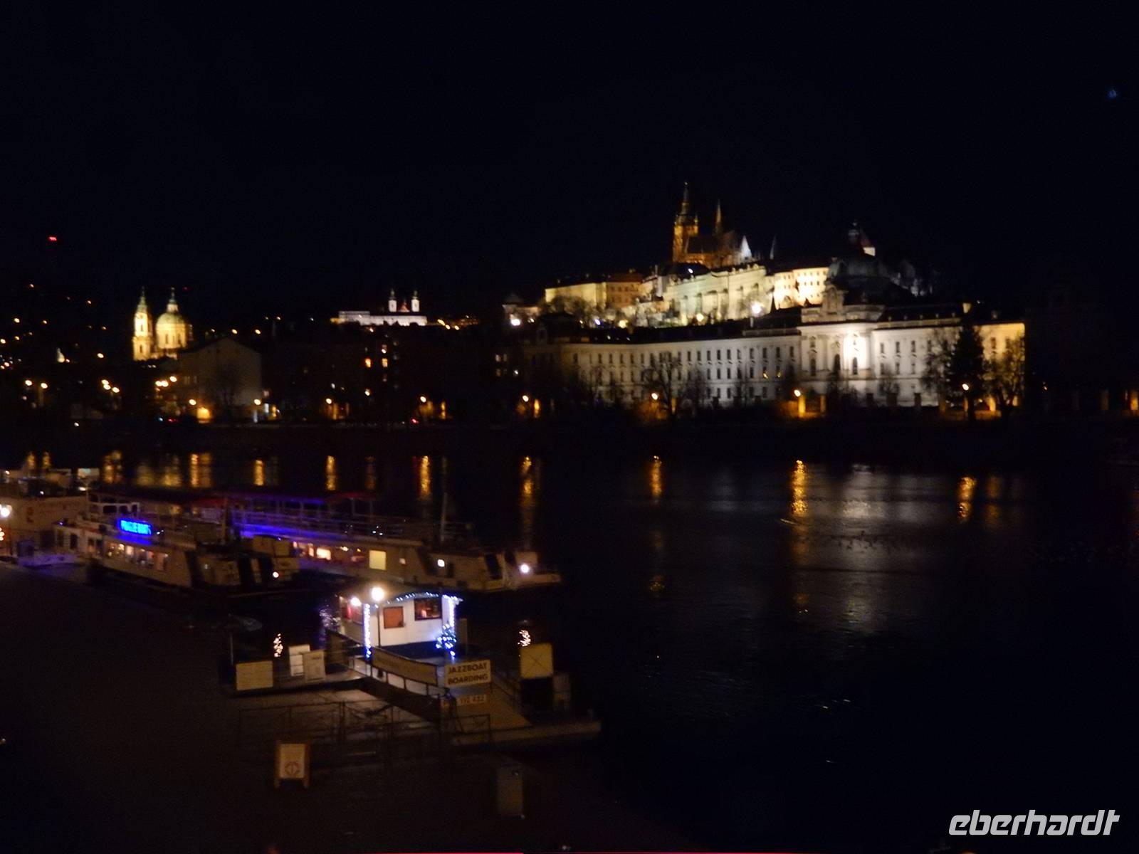 und werden - wie es sich für uns gehört- mit einem prickelnden Glas Sekt empfangen. Anschließend "schaukeln" wir durch Prag vorbei an so ziemlich allen Sehenswürdigkeiten bis zum Platz der Republik, der gerade um die Ecke von unserem Hotel liegt. Kurz Frischmachen ist angesagt, denn der Tag in Prag ist für uns noch lange nicht vorbei. Ein weiterer Blickwinkel auf die Sehenswürdigkeiten der Moldau-Metropole erwartet uns, diesmal von der Moldau aus. Wir spazieren durch weihnachtlich geschmückte Straßen zur Schiffsanlegestelle an der Juristischen Fakultät und besteigen ein Boot der Reederei Natal, um bei einem rustikal-tschechischen Buffet romantisch angestrahlte Bauwerke entlang der Moldau zu bewundern. Die Aufenthaltszeiten in diversen Schleusen nutzen wir zum probieren von Gulasch, Käsesalat oder Prager Naschwerk und selbstverständlich dürfen ein paar nächtliche Schnappschüsse nicht fehlen. Bis zu dieser späten Stunde versorgt uns Irena mit Informationen und ein freundlicher Harmonikaspieler mit bekannten Weisen, auch wenn die angekündigten Weihnachtslieder ziemlich kurz kommen. Dies tut unserer Laune aber keinen Abbruch und so ist nach dieser Moldau-Schifffahrt für die meisten der Abend in Prag noch nicht zu Ende... Noch ein Weihnachtsmarkt-Besuch oder doch ein Absacker in einem altbekannten oder neu kennengelernten Restaurant - jeder lässt den Abend heute individuell (lange) ausklingen.