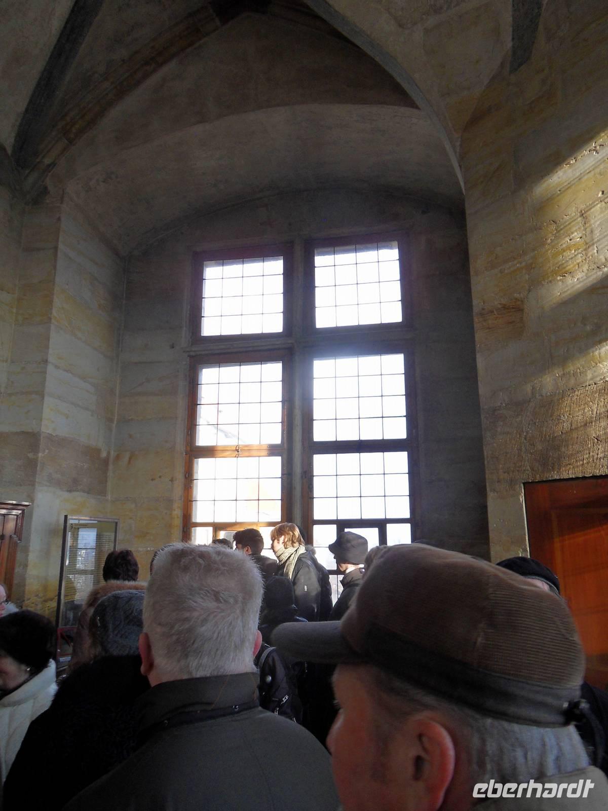 Am Sonntagmorgen ging es für uns los in Richtung Tschechien. Nach einer Mittagspause, die wegen der frostigen Temperaturen in den Bus verlegt wurde, trafen wir gegen 13 Uhr an der Prager Burg ein, wo wir bereits von unseren beiden Stadtführerinnen erwartet wurden. Hier besuchten wir die historischen Gemäuer des St.Veit-Domes, die St.Georgsbasilika, das Goldene Gässchen mit dem Haus Nummer 22, in dem auch Franz Kafka lebte, sowie den Königspalast, aus welchem heraus auch der berühmte Prager Fensterstutz stattfand. Nach einem Abstieg traf sich unsere Gruppe unterhalb der Burg wieder. Leider hatte eine unserer Stadtführerinnen die Zeit falsch verstanden, so dass einigen von uns während des Wartens schon etwas kalt war. Doch im Bus konnten wir uns schließlich wieder aufwärmen und wurden zu unserem Hotel „Diplomat" gebracht, wo wir die Zimmer beziehen konnten und uns dann 18.30 Uhr zum gemeinsamen Abendessen im Hotelrestaurant Loreta trafen, wo wir den Abend bei einem reichlichen Buffet ruhig ausklingen lassen konnten.