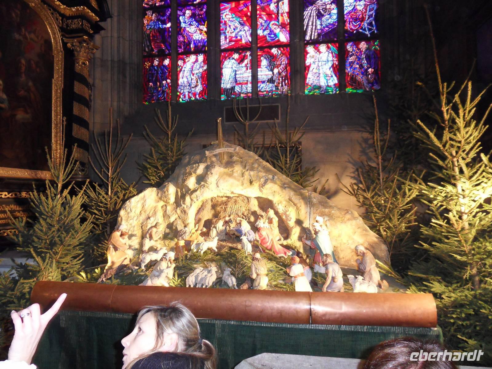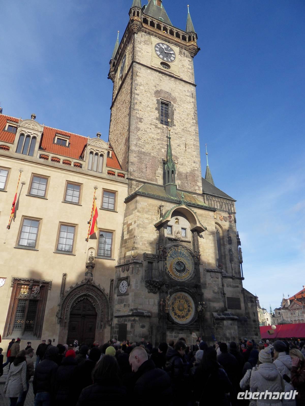 Heute morgen begrüßte uns die Sonne, so dass wir 10 Uhr bestens gelaunt zum zweiten Teil unserer Stadterkundung aufbrechen konnten. Wir werden mit dem Bus bis in die Nähe des Pulverturms gebracht und beginnen erneut in zwei Gruppen unsere Erkundungen. Wir laufen vorbei am Repräsentationshaus im Jugendstil, dem Pulverturm, dem Ständetheater und erreichen nach ca. 30 Minuten den Wenzelsplatz, auf dem immer noch „Weihnachtsmarkt" betrieben wird. Weiter geht es zum Rathaus mit der astronomischen Uhr, vorbei am Clementinum und zur Karlsbrücke, die wie gewöhnlich sehr gut besucht ist. Vorbei am Rudolfinum geht es in das Jüdische Viertel der Josefstadt, wo wir die Pinkassynagoge, die Altneusynagogen und auch die Außenmauer des jüdischen Friedhofs sehen können. Wie überall in Prag herrscht hier reges Treiben. Am Altstädter Ring endet unsere Stadtführung und wir haben die Möglichkeit, auf dem noch bestehenden Weihnachtsmarkt oder in den Seitenstraßen etwas zum Mittag zu essen.