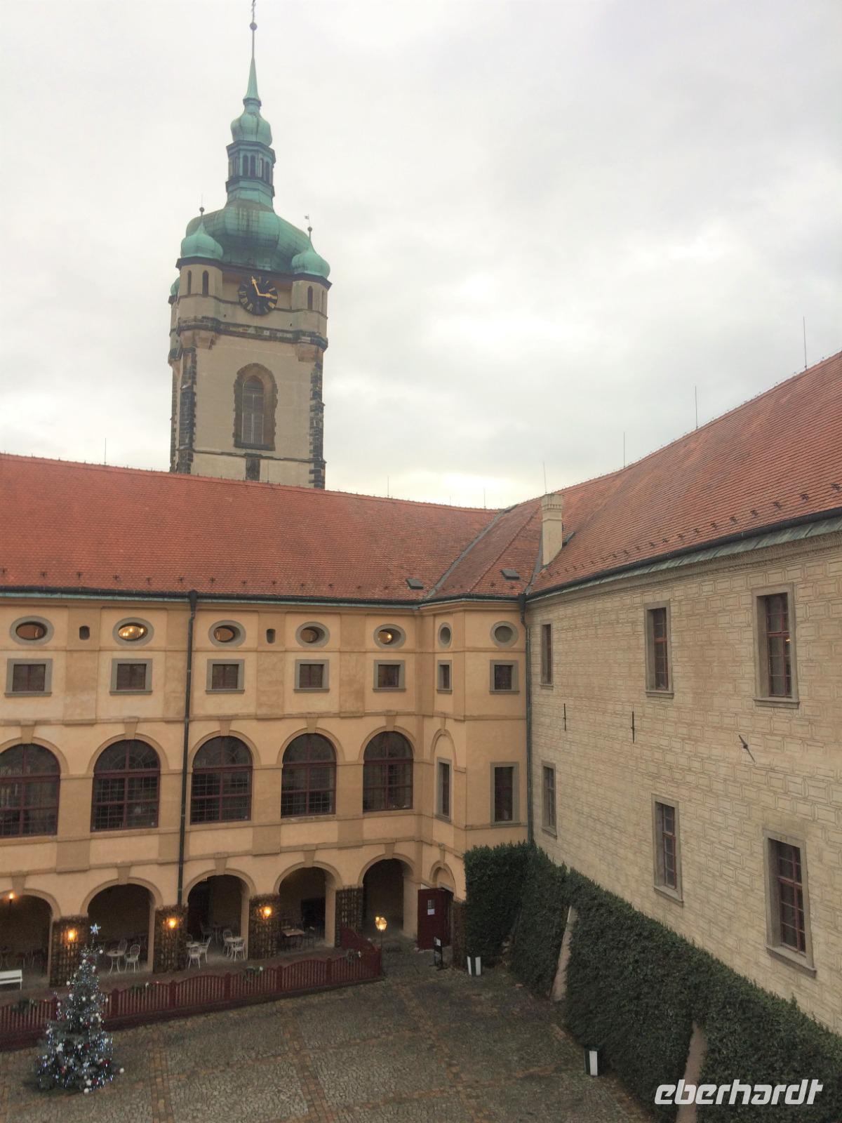 Nach einem späten Frühstück trafen wir uns zum Check-Out in der Hotel-Lobby. Auch unser Bus wartete schon, sodass wir entspannt aufbrechen konnten und Prag nun hinter uns ließen. Nach einer kurzen Fahrt erreichten wir Schloss Melnik, imposant auf einem Hügel gelegen und von Weinbergen umgeben. Nachdem wir einen Abstecher machten, um den dortigen Zusammenfluss von Elbe und Moldau zu sehen, stiegen wir in die historischen Gewölbekeller des Schlosses hinab und verkosteten einige Weine, während ein Mitarbeiter des Weingutes uns viel Interessantes über die Sorten, den Anbau und das Weingut erzählte. Auch das Schloss selbst lernten wir auf einer anschließenden Führung näher kennen. Antike Möbel, darunter auch ein Schreibtisch, an dem einige Präsidenten gesessen hatten, und viele Gemälde brachten uns hier das Leben der ehemaligen und aktuellen Besitzer des Schlosses Melnik näher. Nun war das Ende unserer Reise nach Prag gekommen und wir fuhren zurück nach Dresden, Nossen und Chemnitz.