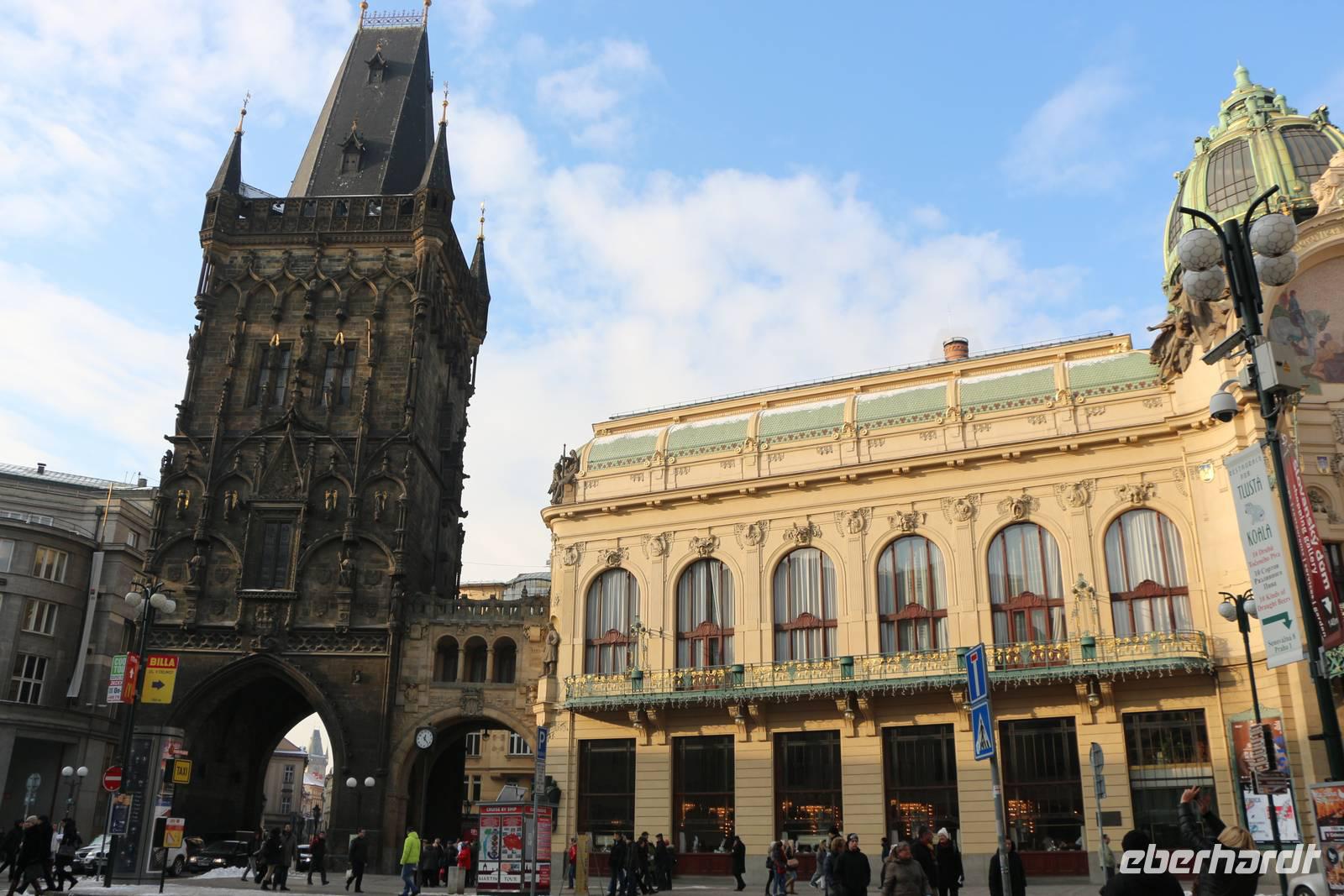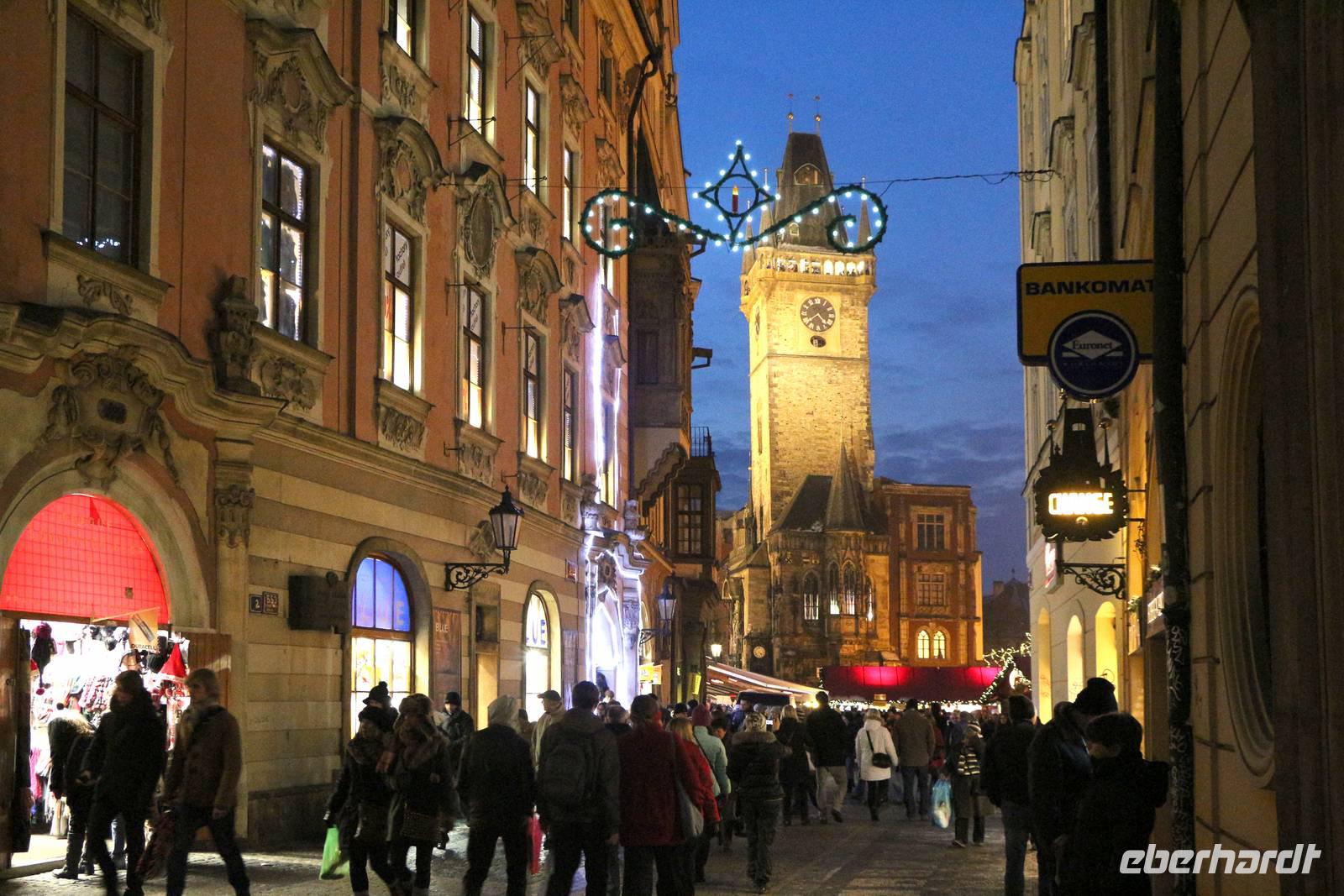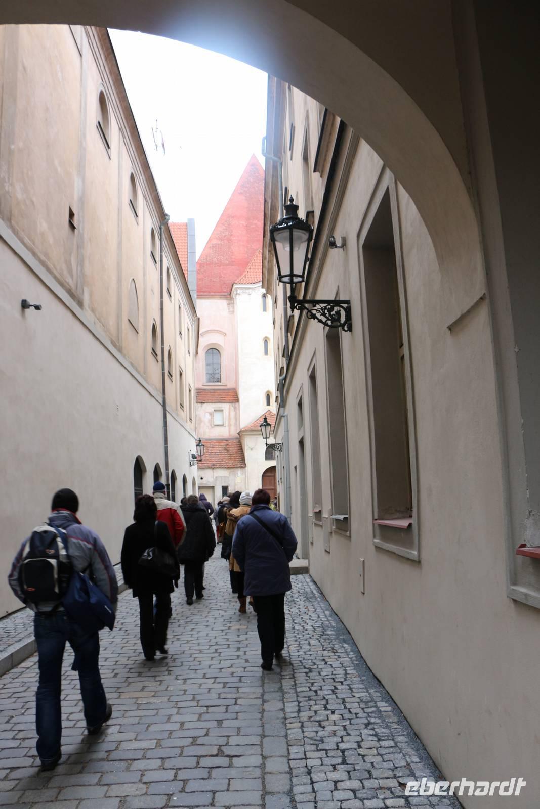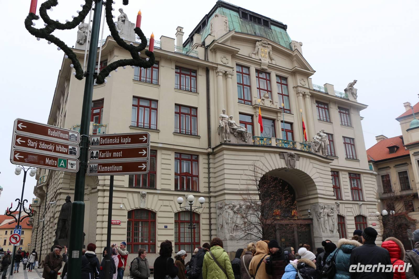 Durch enge Gassen und geschichtträchtige kleine Plätze ging es weiter zum Wenzelsplatz mit dem Nationalmuseum. Hier endete unser geführter Rundgang und wir hatten Freizeit zum Mittagessen oder einem Bummel über die Weihnachtsmärkte am Wenzelsplatz oder dem Altstädter Ring. Empfehlenswert ist ein Bummel durch die Grabenstraße zum Pulverturm und dem wunderschönen Gemeindehaus im Jugendstil. Ganz in der Nähe befindet sich auch das Einkaufszentrum Palladium, in dem über 200 Geschäfte und Restaurants auf Besucher warten.
