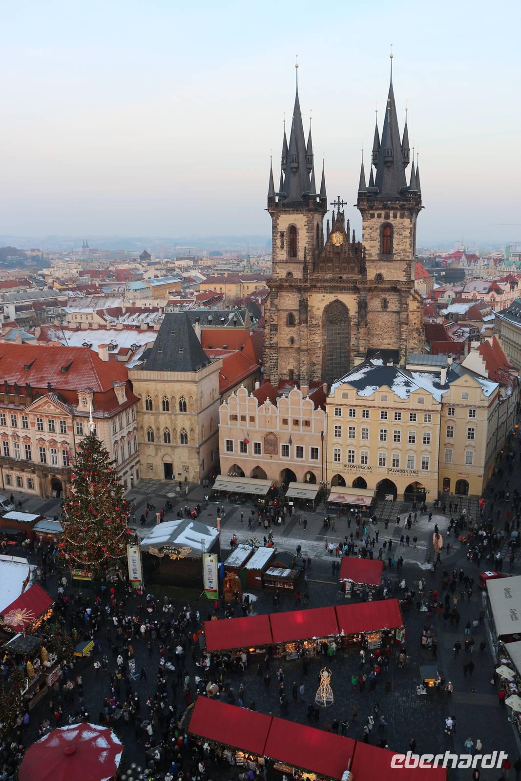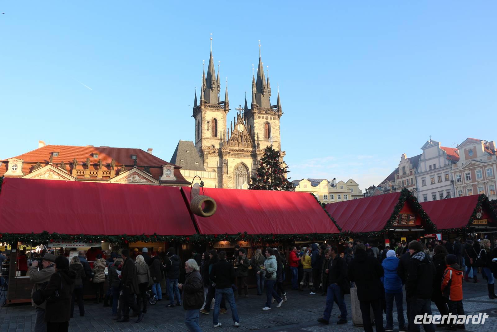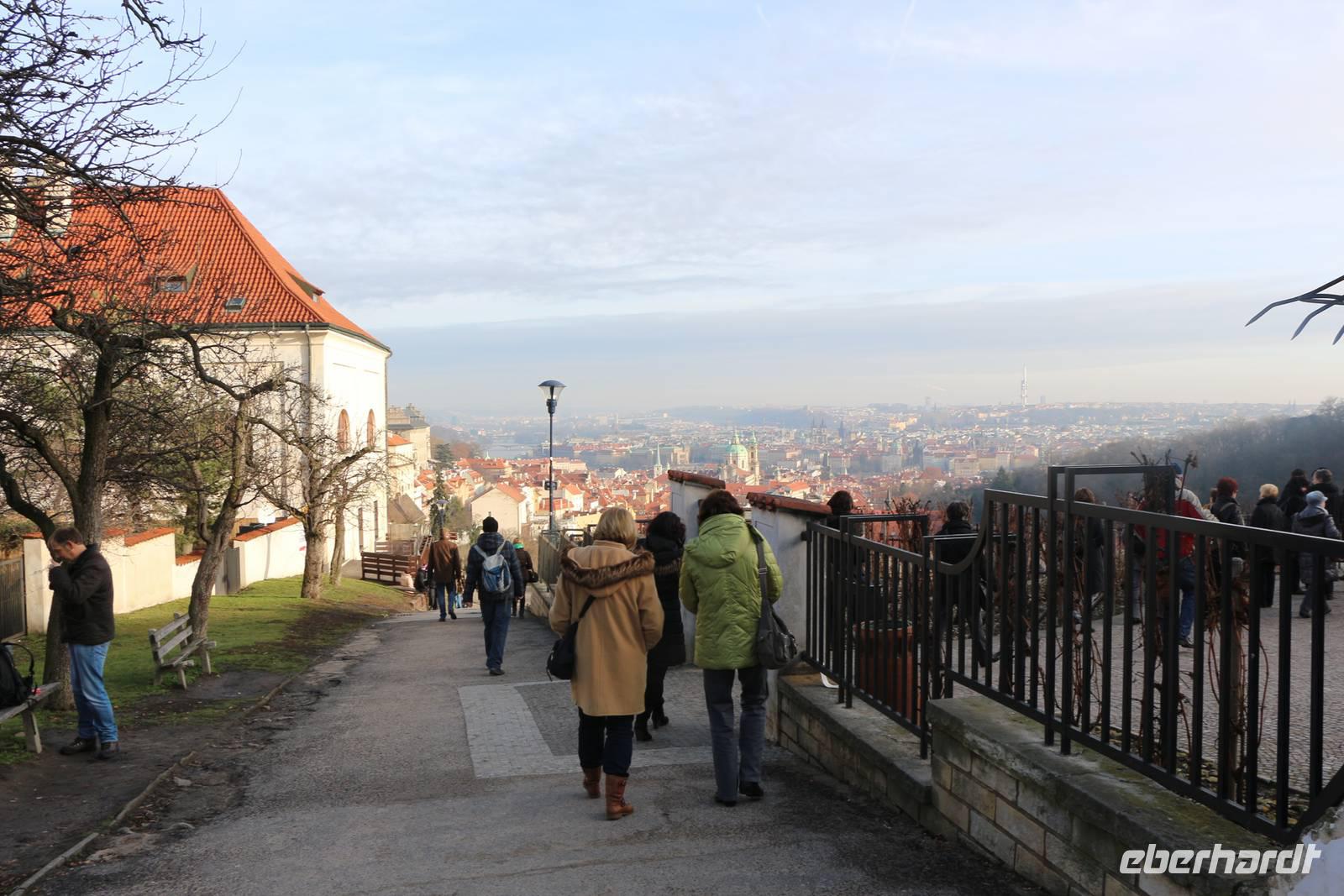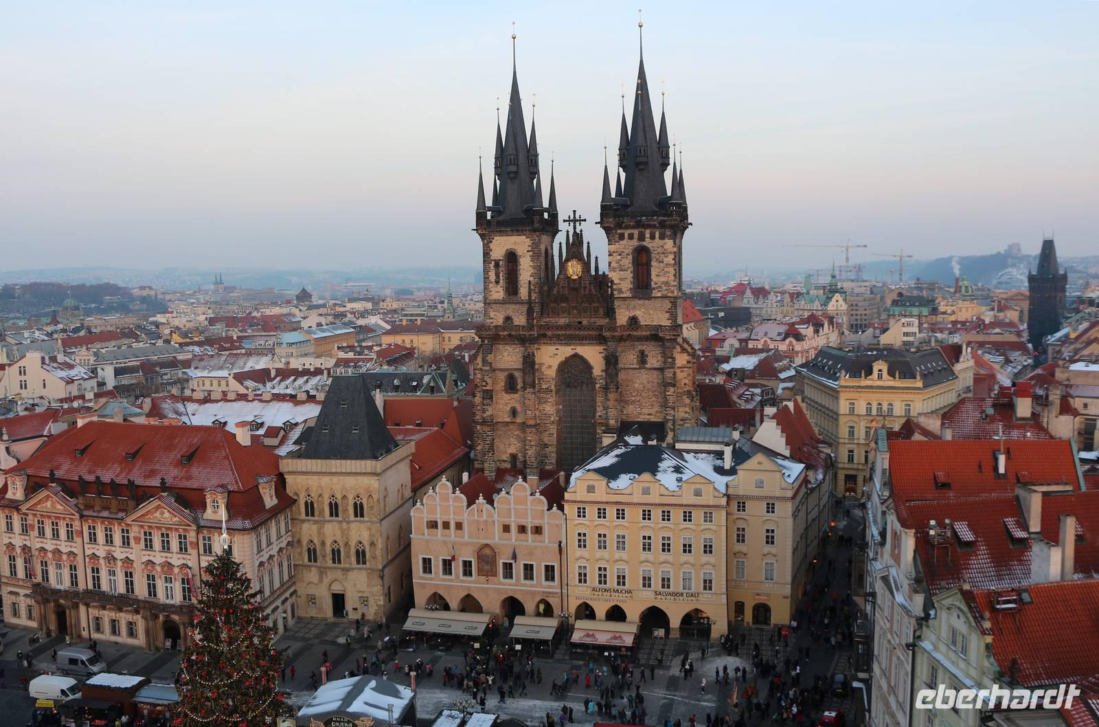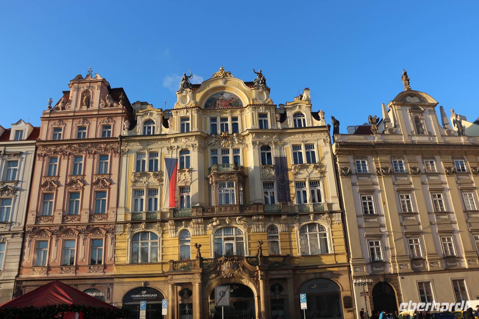 Durch enge Gassen und geschichtträchtige kleine Plätze ging es weiter zum Wenzelsplatz mit dem Nationalmuseum. Hier endete unser geführter Rundgang und wir hatten Freizeit zum Mittagessen oder einem Bummel über die Weihnachtsmärkte am Wenzelsplatz oder dem Altstädter Ring. Empfehlenswert ist ein Bummel durch die Grabenstraße zum Pulverturm und dem wunderschönen Gemeindehaus im Jugendstil. Ganz in der Nähe befindet sich auch das Einkaufszentrum Palladium, in dem über 200 Geschäfte und Restaurants auf Besucher warten.