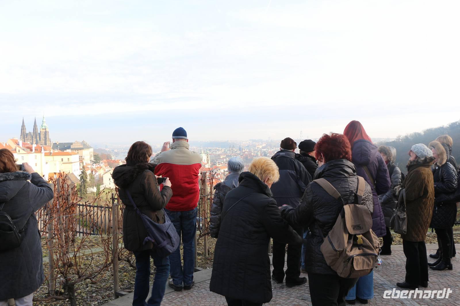 Früh am Morgen fuhren wir in unserem Reisebus von Chemnitz über Dresden in die Hauptstadt der Tschechischen Republik. Unsere Gäste aus Berlin, Leipzig und Thüringen kamen bequem mit dem Haustür-Transfer zu den Bus-Zustiegen. In Prag angekommen, begrüßten wir unseren örtlichen Reiseleiter Karel und begannen unser Programm mit einer Stadtrundfahrt durch Prag. Dabei lernten wir die modernen Stadtteile kennen, sahen das Haus von Karel Gott und fuhren hinauf auf den Laurenziberg - den Petrín. Auf diesem Hausberg von Prag stehen zum Beispiel das Strahov-Stadion, der Prager Eiffelturm und die ehemalige Hungermauer - zu denen uns Karel alles Wissenswerte erklärte.