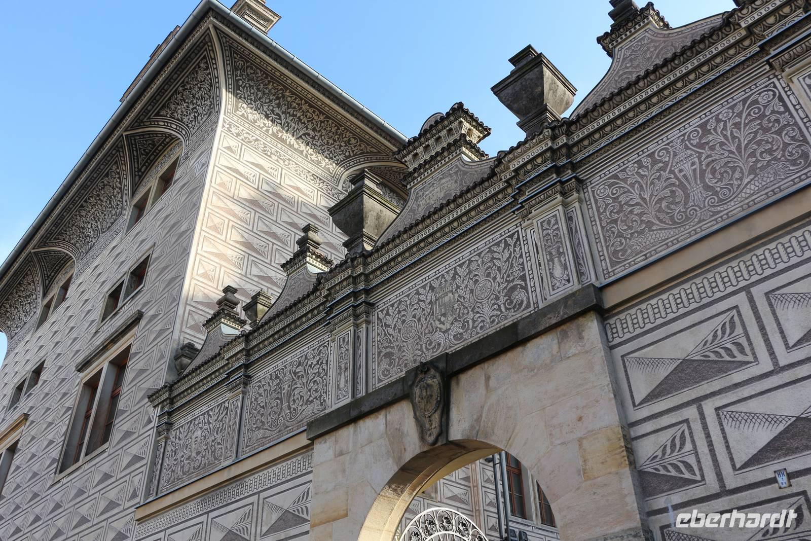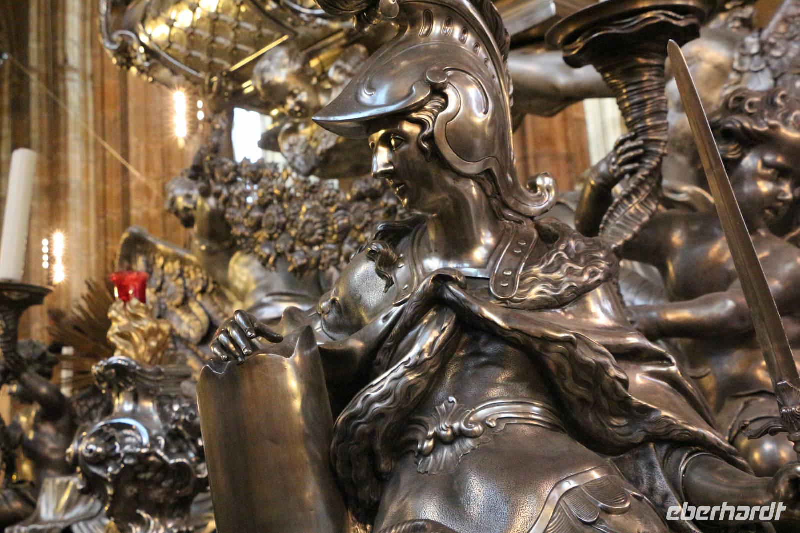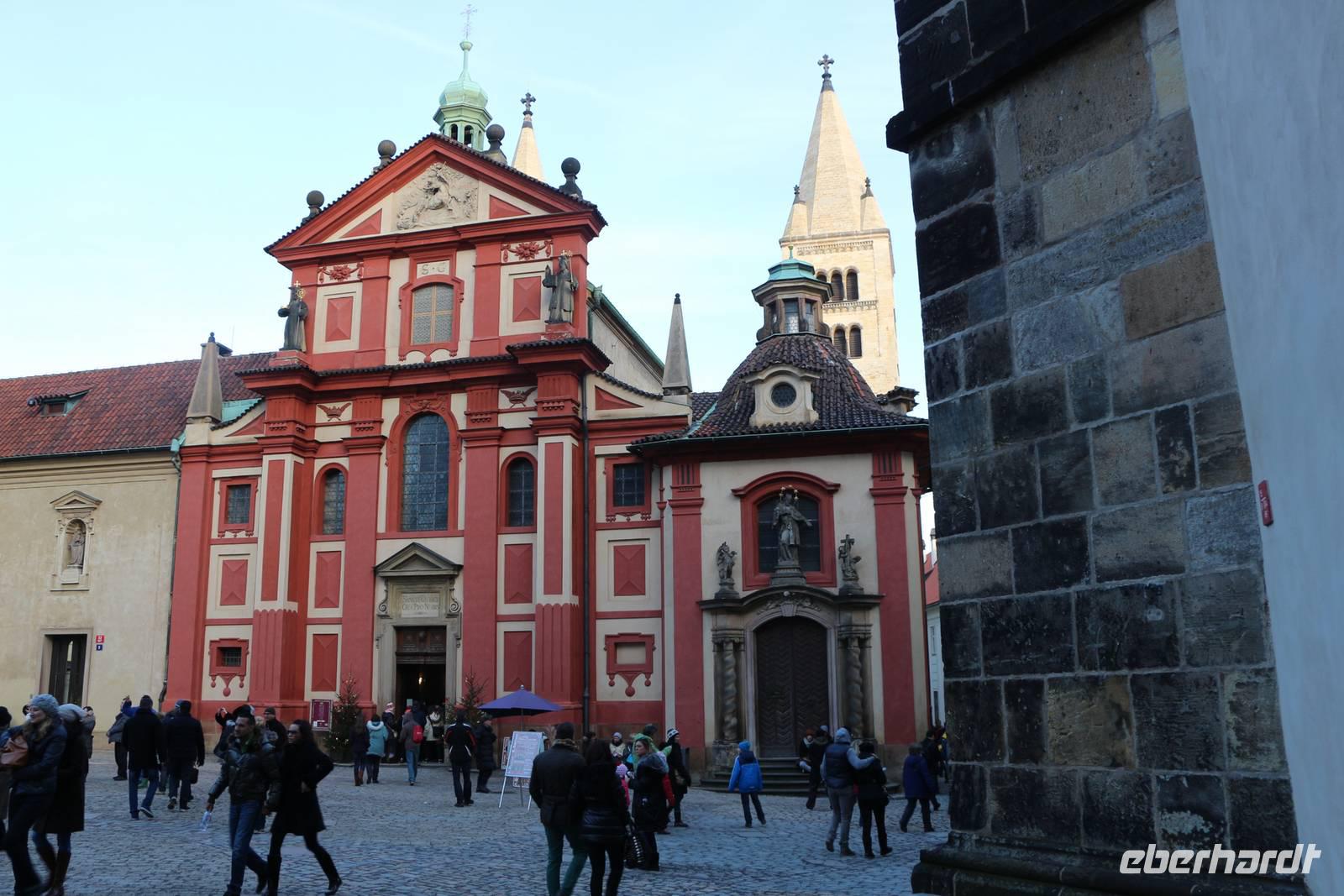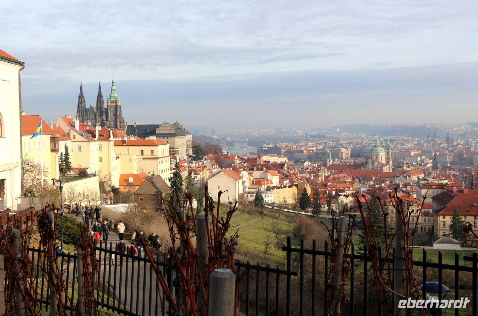 Weiter ging es zur berühmten Prager Burg auf dem Burgberg Hradschin. Über viele Jahrhunderte in immer neuen Baustilen gebaut und erweitert, gibt die Prager Burg Einblicke in die wechselvolle Geschichte der Stadt. Am Hradschiner Platz und in den einzelnen Burghöfen bestaunten wir Palais aus Barock und Jugendstil. Der Eingang zur Prager Burg wird nicht nur von zwei riesigen Sandstein-Giganten bewacht, sondern auch von der Leibgarde der Regierung. Die hübsch gekleideten jungen Männer werden täglich auf Tausenden Fotos abgelichtet.