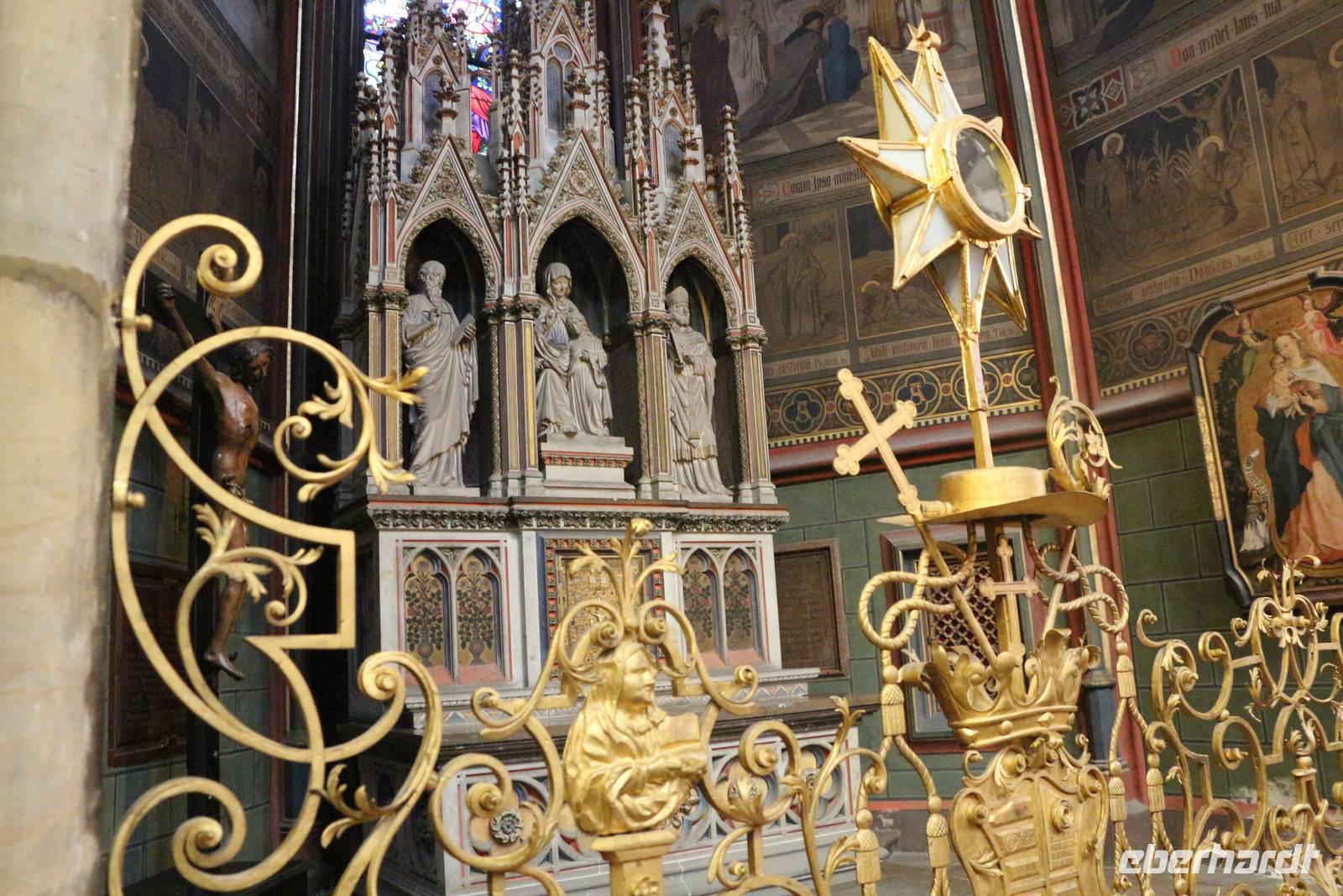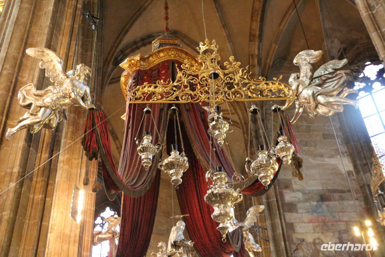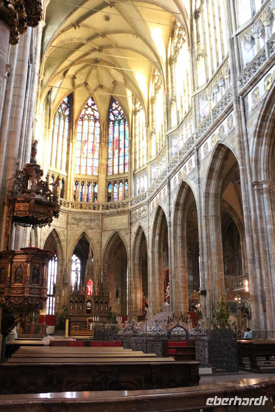 Bei unserer Führung besichtigten wir auch den beeindruckenden gotischen St. Veits Dom mit seinem reichen Schmuck aus Holz, Silber, Bleiglas und Gold. An der Seite des Doms befindet sich die berühmte Goldene Pforte, durch die alle Könige Böhmens bei Ihrer Krönungszeremonie gingen. In den Innenräumen des Königspalastes besichtigten wir auch den Wladislaw-Saal, in dem die Ritter und Gefolgsleute des Königs früher sogar zu Pferde hinein ritten. Und wir sahen das Fenster des zweiten Prager Fenstersturzes, der bekanntlich zum verheerenden Dreißigjährigen Krieg führte.