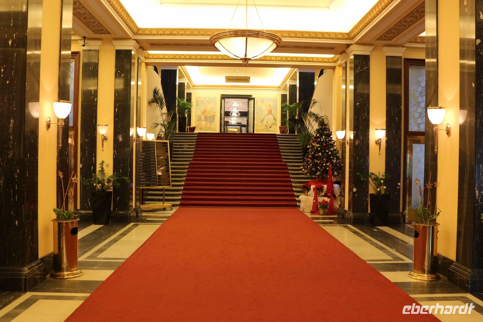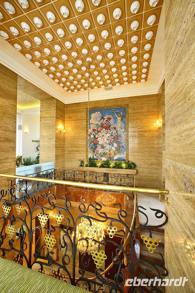 Vor allem die Inneneinrichtung in den öffentlichen Räumen, Sälen und Restaurants ist bis heute im orignalen Stil erhalten. Hochwertige Materialien und Kunstwerke aus Marmor, Kristall, Glas und Schmiedeeisen schmücken die Innenräume. Besonders beeindruckend sind die Mosaike, Wandteppiche, Lampen und Kronleuchter, die überall zu entdecken sind. Selbst wenn man hier nicht wohnt, ist das Hotel eine Besichtigung wert!