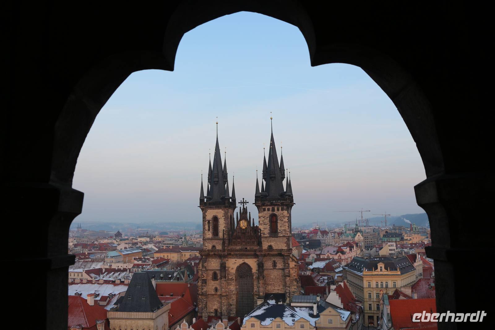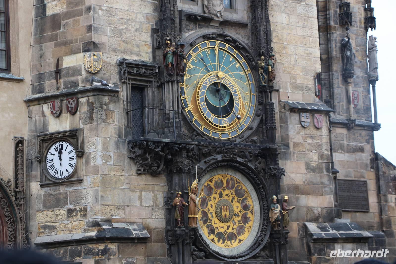 Durch die Altstadt gingen wir vorbei am Neuen Rathaus und der Nationalbibliothek zur Karlsbrücke. Hier tummelten sich auch jetzt im Winter unglaublich viele Touristen. Karel erklärte uns die einzelnen Statuen entlang der Karlsbrücke, die Geschichte der Brückentürme und der angrenzenden Gebäude. Durch die Karlsgasse gingen wir anschließend hinein in die Altstadt zum ALtstädter Ring - dem Hauptplatz mit dem Altstädter Rathaus, der Teynkirche, der St. Niklas Kirche und den schönen Bürgerhäusern. Bis zum 1. Januar gibt es hier auch einen großen Weihnachtsmarkt. Zur vollen Stunde sahen wir uns das Spiel der berühmten Astronomischen Uhr am Rathaus an. Die Figuren neben den Ziffernblättern bewegten sich und die zwölf Apostel fahren an den kleinen Fensterchen oben vorbei. Die Astronomische Uhr von 1410 ist ein Meisterwerk der Ingenieurs- und Schmiedekunst!