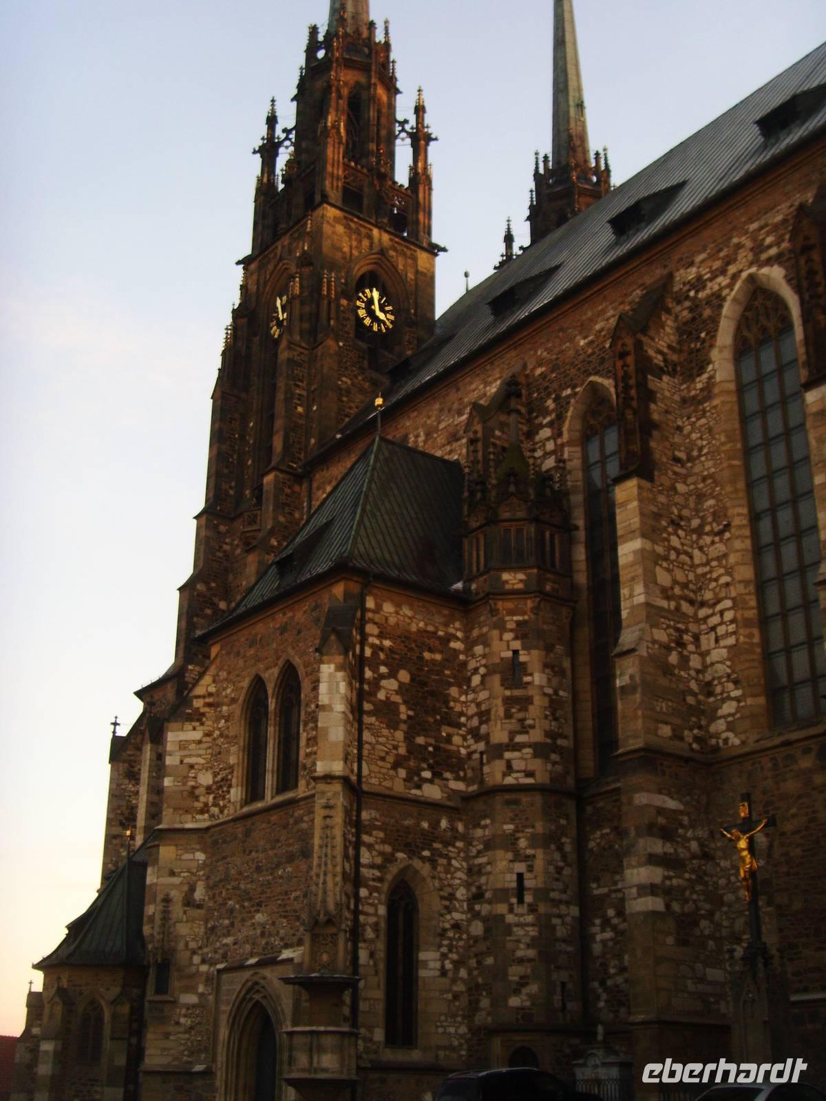 Nach einer kleinen Toilettenpause führte unser Weg zum alten Rathaus. In der Toreinfahrt hängt ein riesiger Alligator bzw. Drachen. Der Legende nach tauchte ein Drachen irgendwann am Fluss Svratka auf und fraß die badenden Jungfrauen. Die Belohnung für die Erlegung bekam ein Fleischergeselle. Er warf der Bestie eine mit ungelöschtem Kalk gefüllte, frisch geschlachtete Ziege hin. Der Drache fraß, trank danach durstig Wasser, löschte damit den Kalk und platzte. Tatsache ist, der Alligator war ein Geschenk an die Stadt Brünn.