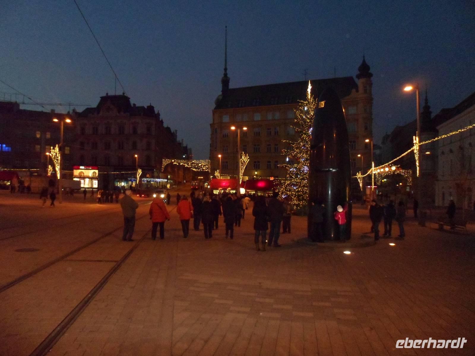 Zurück zum Platz der Freiheit - es war schon dunkel und sehr kalt - Zeit für einen heißen Glühwein zum Aufwärmen, auch probierten wir Trdelnik - ein warmer in Zimt gewälzter Hefeteig - einfach lecker und dies alles in weihnachtlicher Atmosphäre.