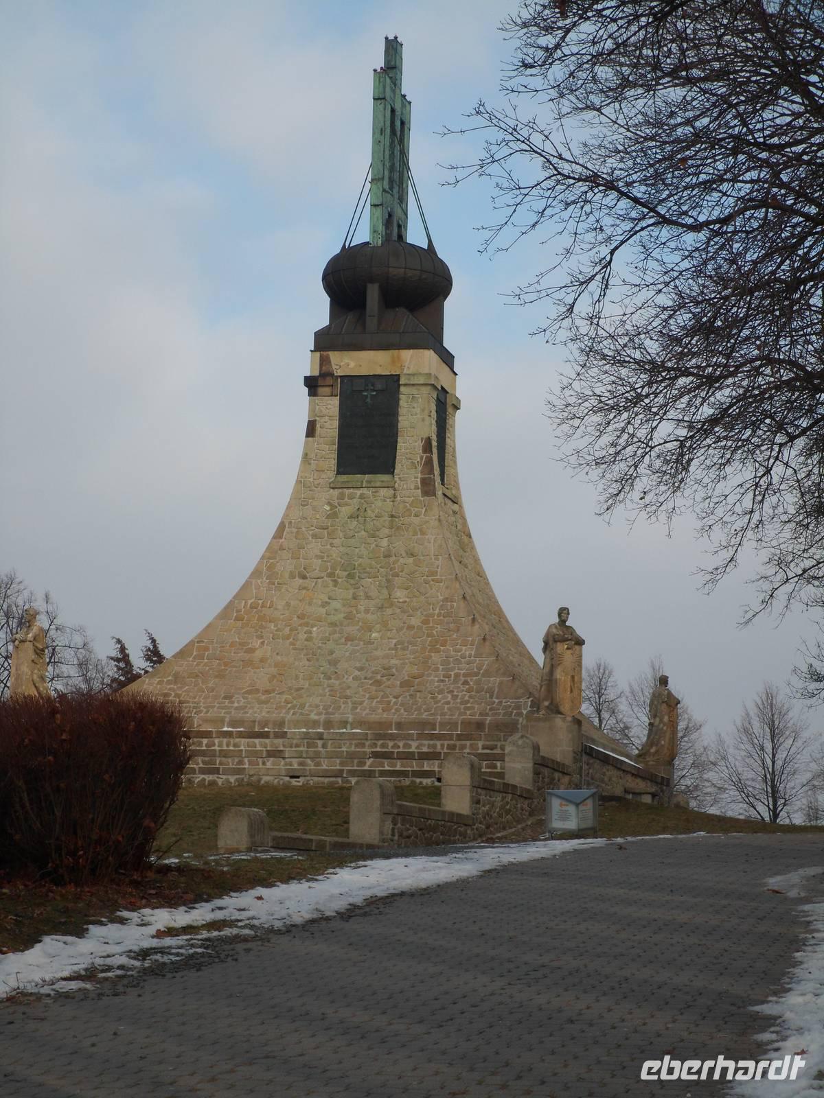 Nach dem Frühstück führte unser Weg über Brünn - entlang der alten Motorradrennstrecke - nach Austerlitz. Das Schlachtfeld, eine Fläche von ca. 10 x 10 km, lag westlich von Austerlitz. Unser Rundgang führte uns über den Pratzen-Hügel. Hier hatte Napoleon einen seiner größten Erfolge zu verbuchen - am 02. Dezember 1805 fand die Dreikaiserschlacht statt, bei welcher die verbündeten Einheiten des österreichischen Kaisers Franz II. und Zar Alexander I. den Truppen Napoleons gegenüberstanden. Bei dieser Schlacht starben an einem Tag rund 22.000 Soldaten. Seit 1912 erhebt sich auf dem Hügel ein monumentales Friedensdenkmal. Gekrönt wird es von einem 10 m hohen Kreuz. Unter der Ehrenhalle befindet sich die Krypta, in der die sterblichen Überreste vieler Gefallenen beigesetzt wurden.
