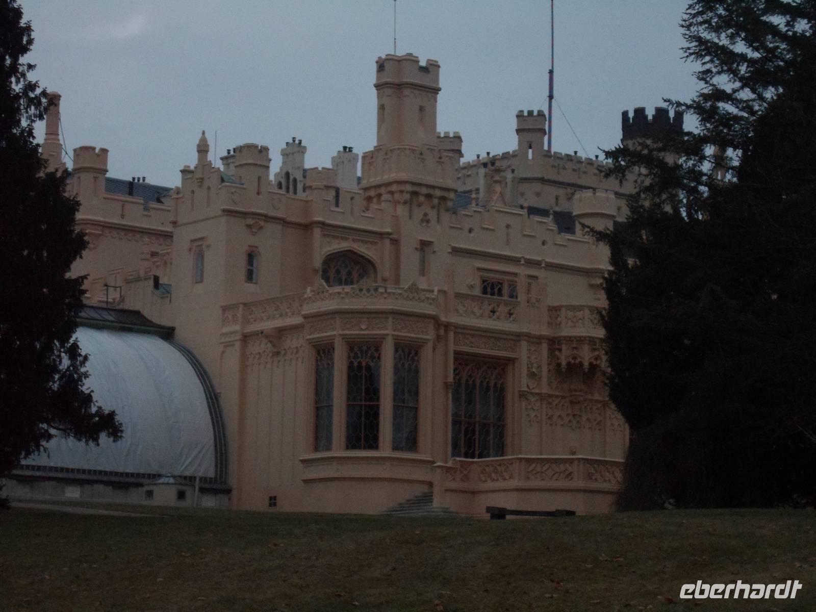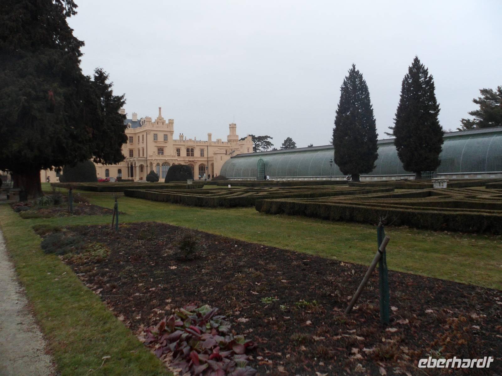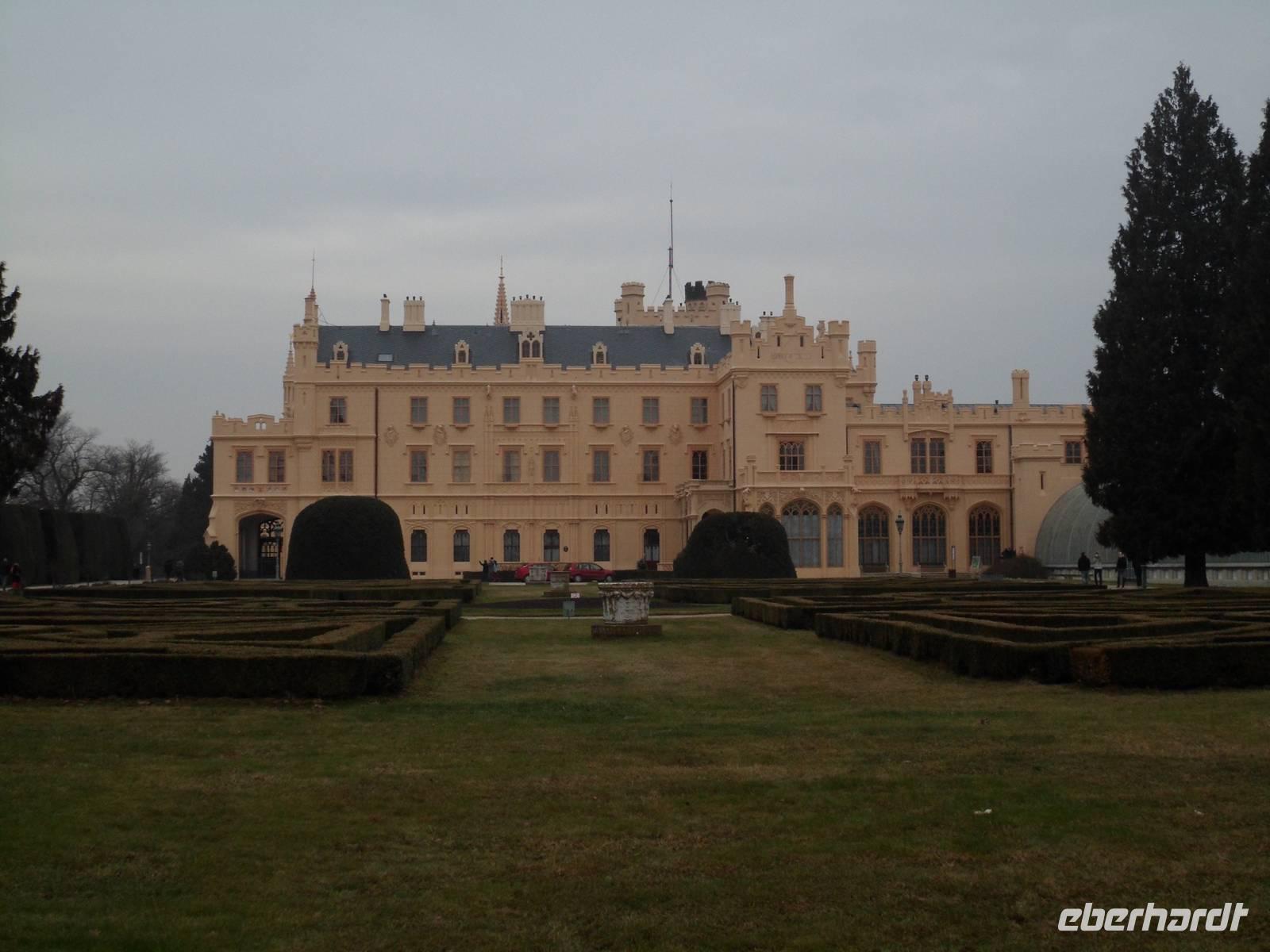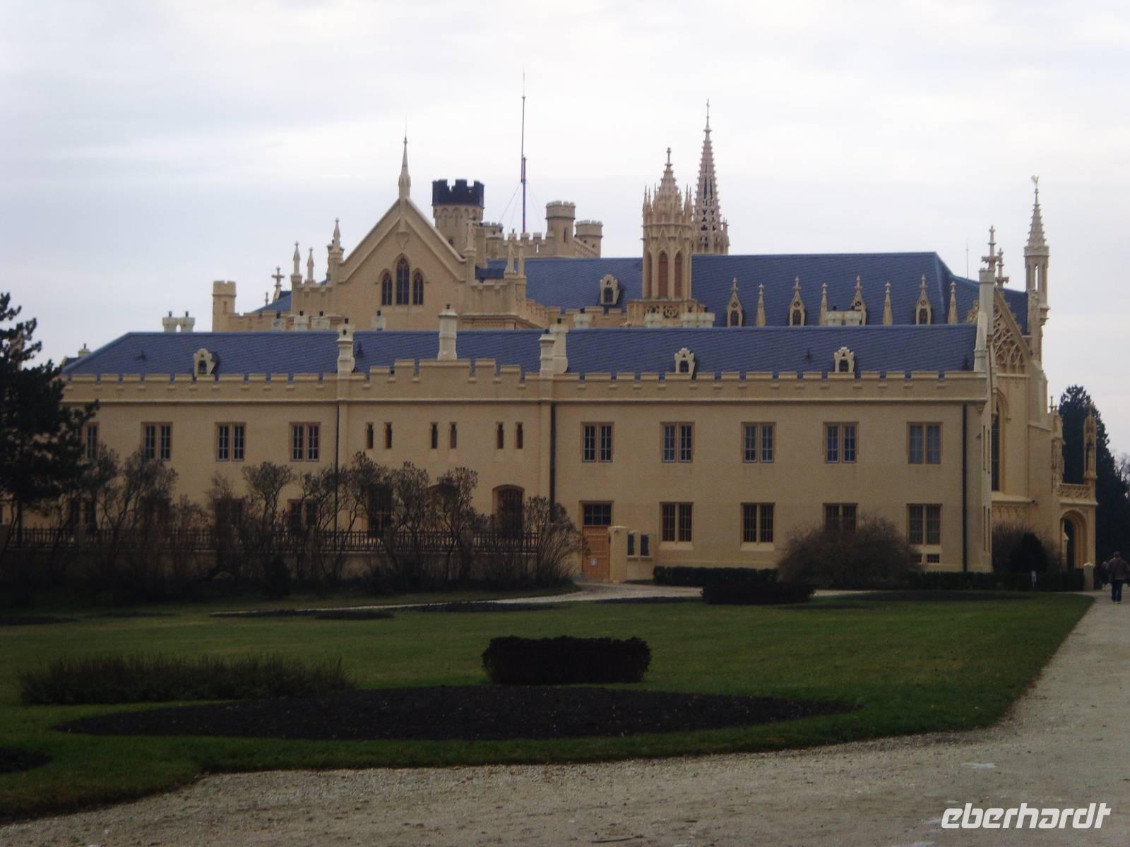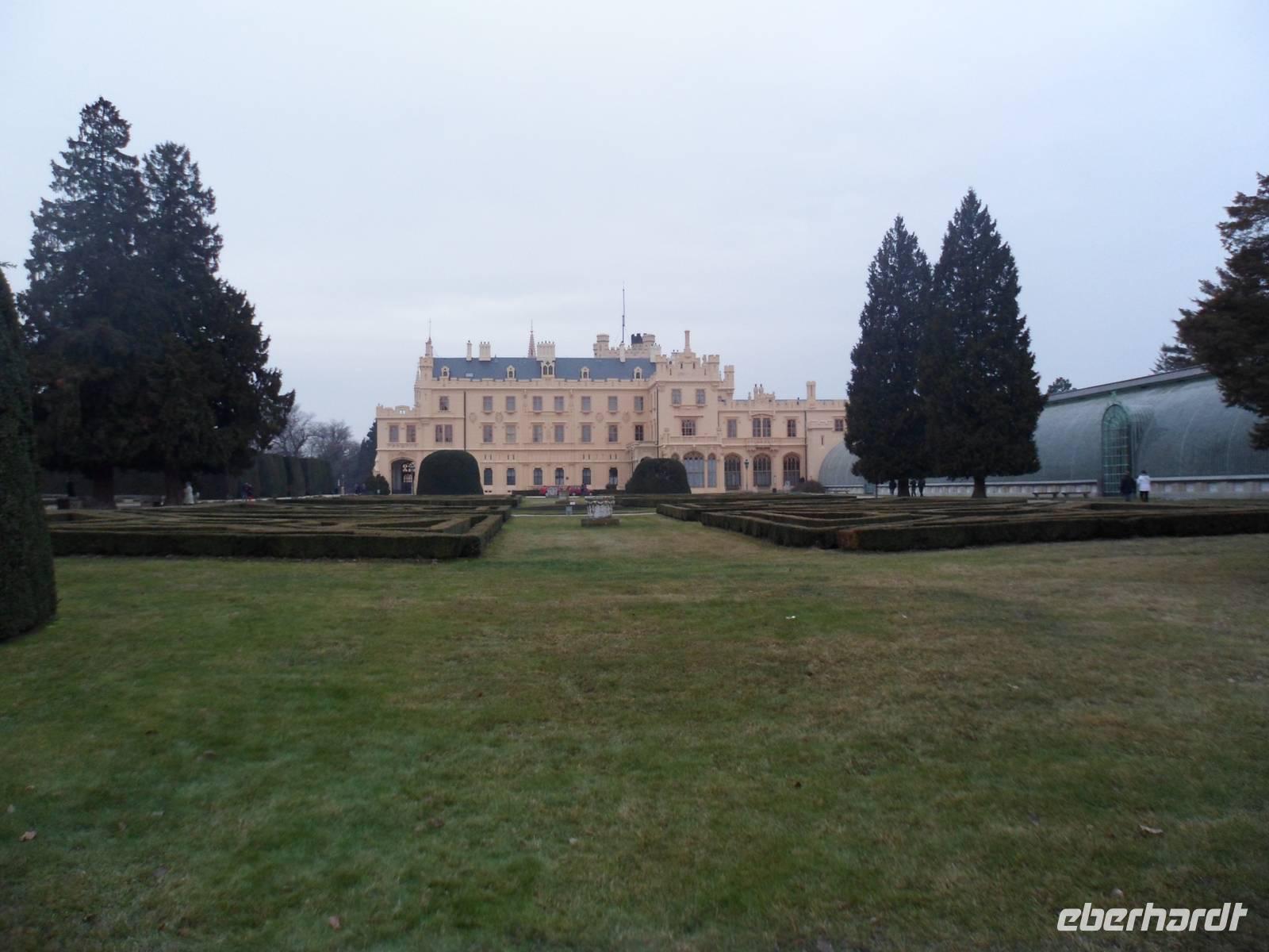 Weiterfahrt nach Lednice. Nach einem guten mährischen Mittagessen besichtigten wir den Schlossgarten des gigantischen neogotischen Schlosses - das sehenswerteste weit und breit - es war die Sommerresidenz der Familie Lichtenstein.