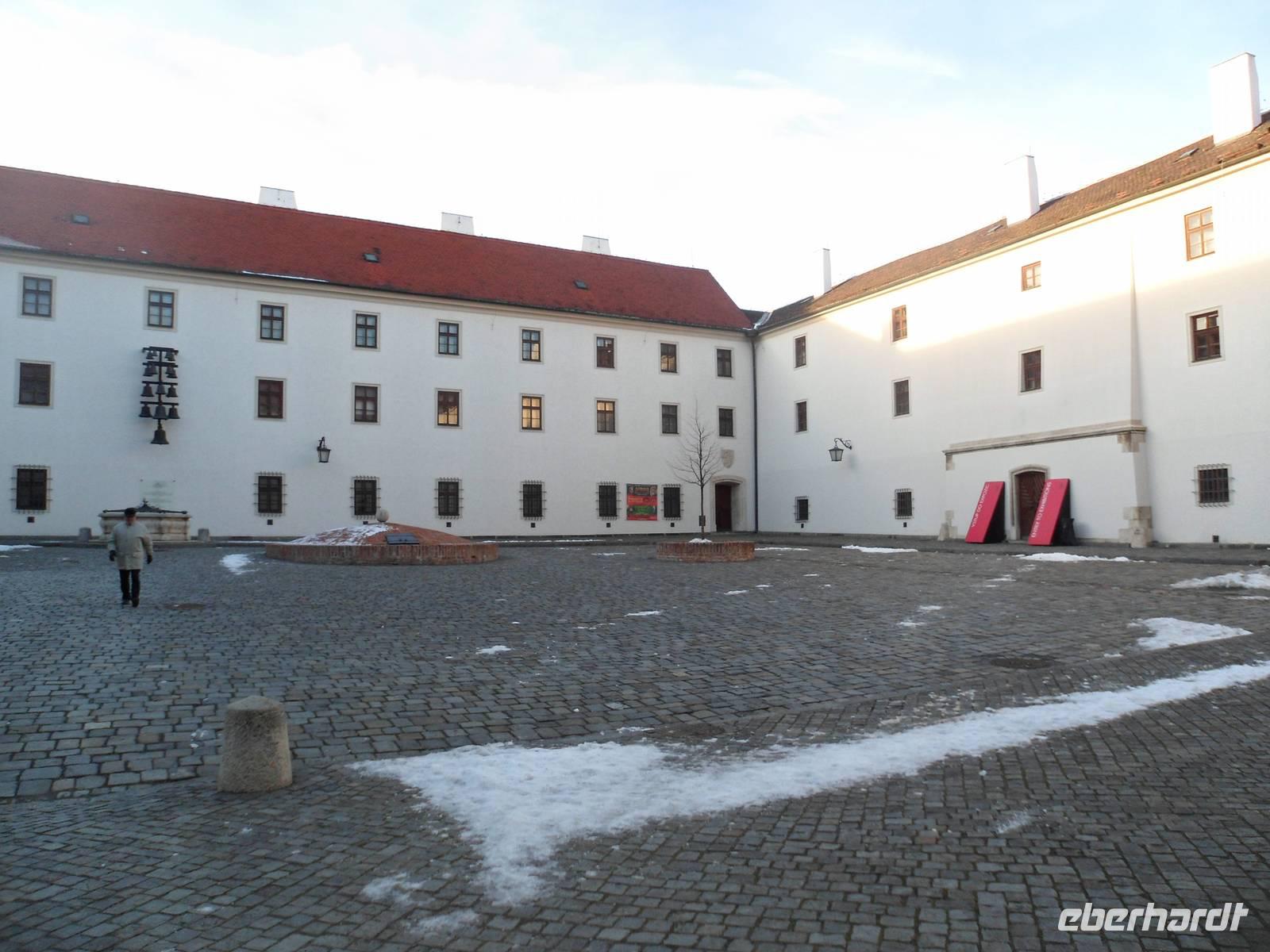 Lange Zeit hatte die Burg den Ruf des berüchtigtsten Gefängnisses des Habsburger Reiches. Vom Busparkplatz entlang der äußeren Burganlage - mit Blick auf Brünn - führte unser Rundgang bis in den Innenhof der quadratisch angelegten Burg. In den Räumlichkeiten der Burg befindet sich das Museum der Stadt Brünn.
