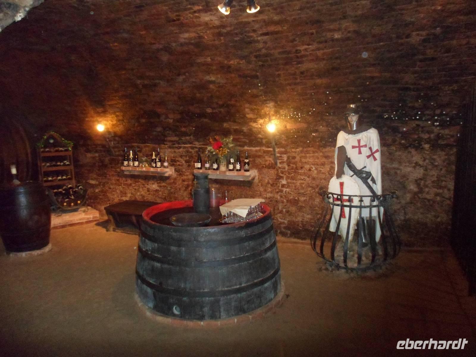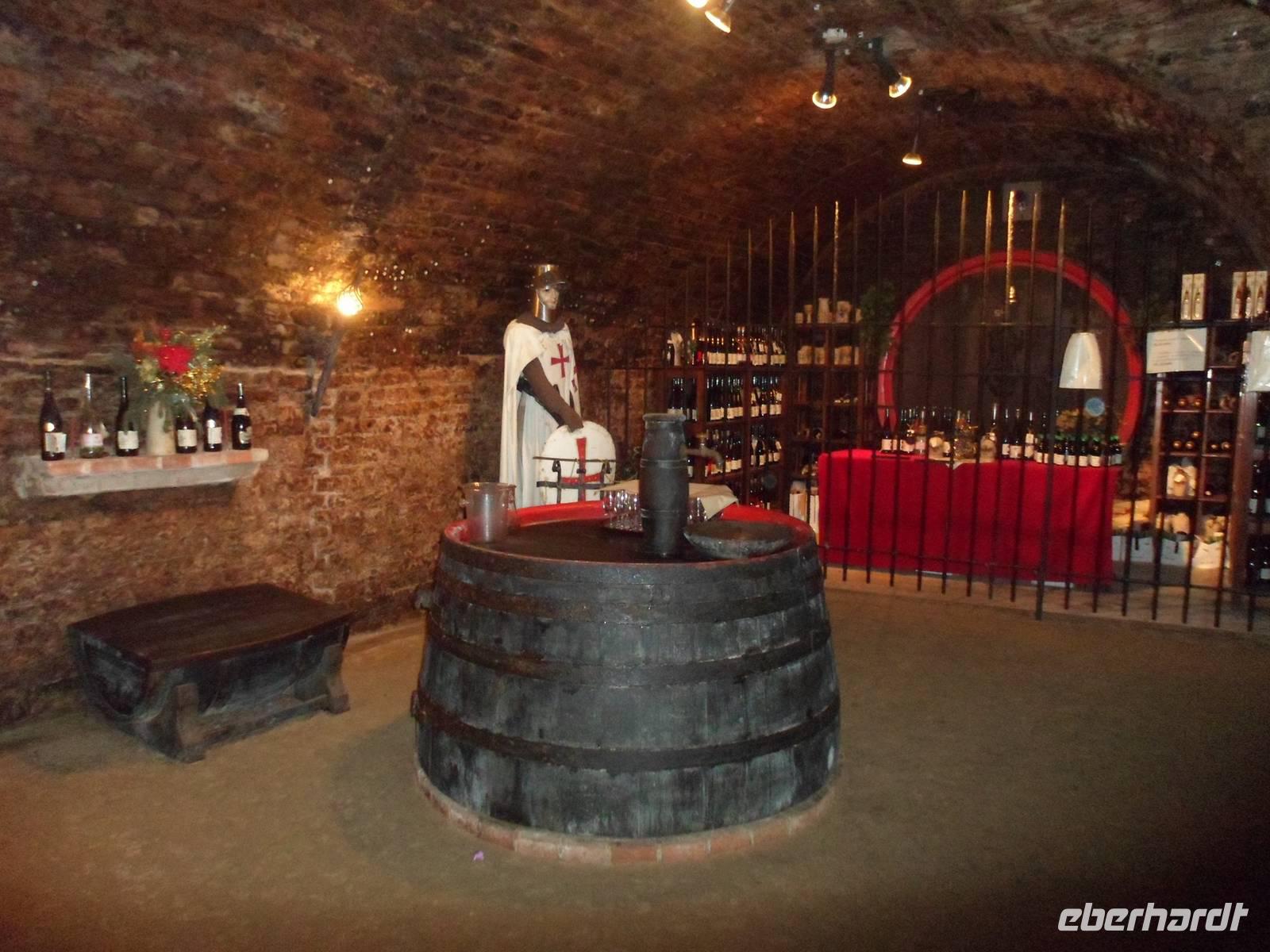 Unsere Weinprobe fand im Stilweinkeller inmitten des unterirdischen Gängekomplexes, der die Tempelritter mit der gotischen Festung verbindet, statt. Nach der Verkostung konnte man für sich den besten Tropfen erstehen.