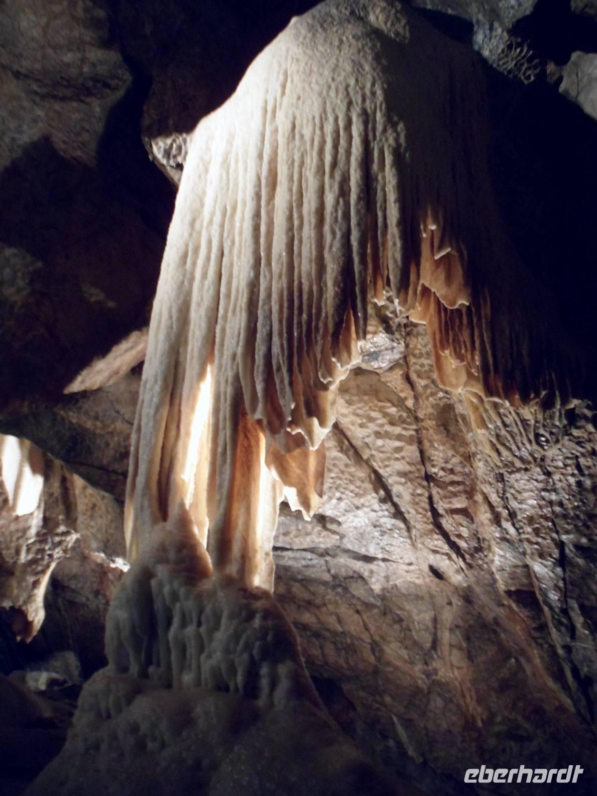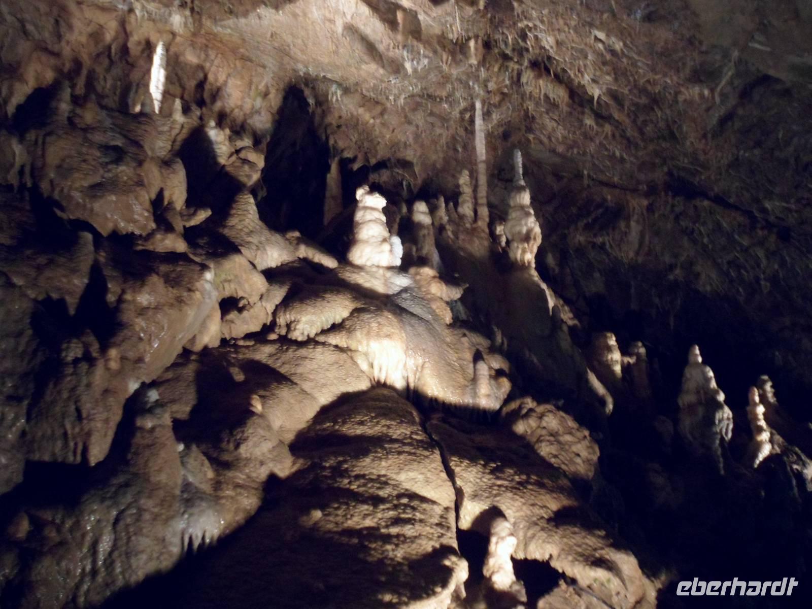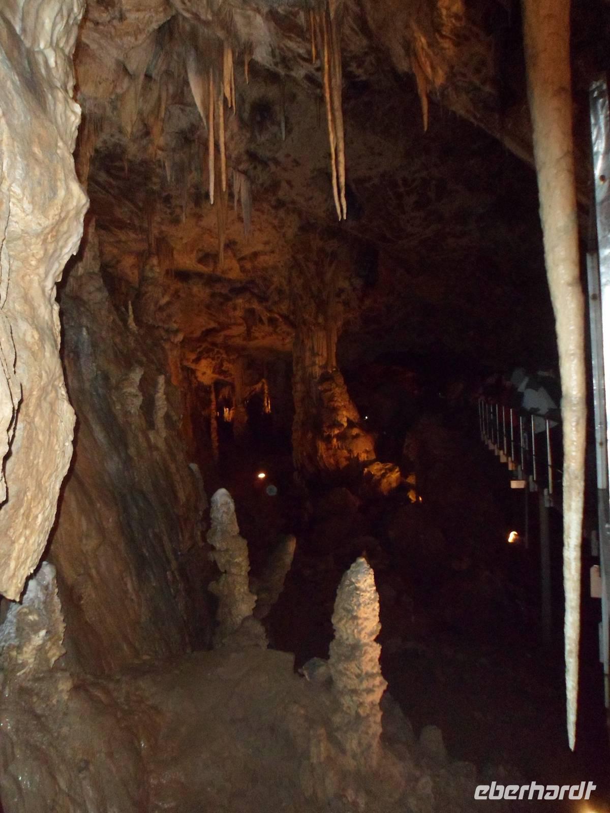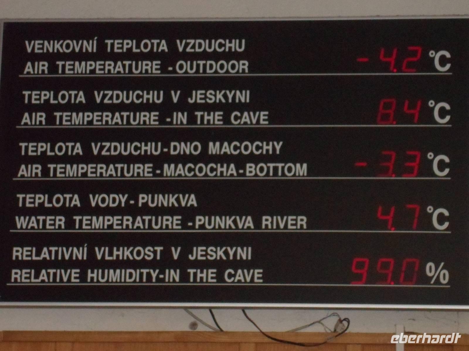 Über 1000 Höhlen gibt es hier, nur vier große wurden jedoch bislang der Öffentlichkeit zugänglich gemacht. Wir haben die schönste und einzige im Winter geöffnete Höhle - die Punkva Höhle - besucht. Dieser Höhlenkomplex wurde 1909 entdeckt. Für uns begann der Weg auf der 1200 m langen Besichtigungsstrecke in der Höhle bei angenehmen acht Grad plus. Zuerst zu Fuß durch ein rund 750 m langes Tunnellabyrinth mit mehreren Höhlenkammern samt größeren und kleineren Tropfsteinen. Die 200 Stufen haben wir alle problemlos bewältigt.
