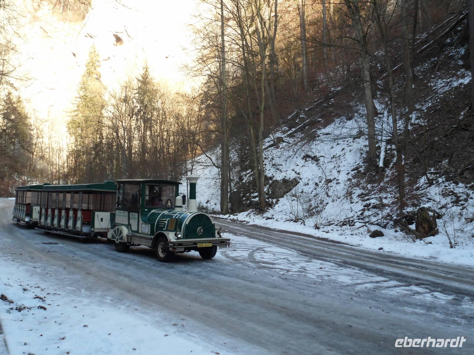 Nach dem Frühstück fuhren wir mit dem sogenannten Ökozug über einen romantischen Hohlweg (ca. 1,5 km) durch das „Dürre Tal" bis zum Eingang der Punkva Höhle.