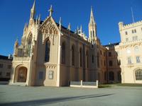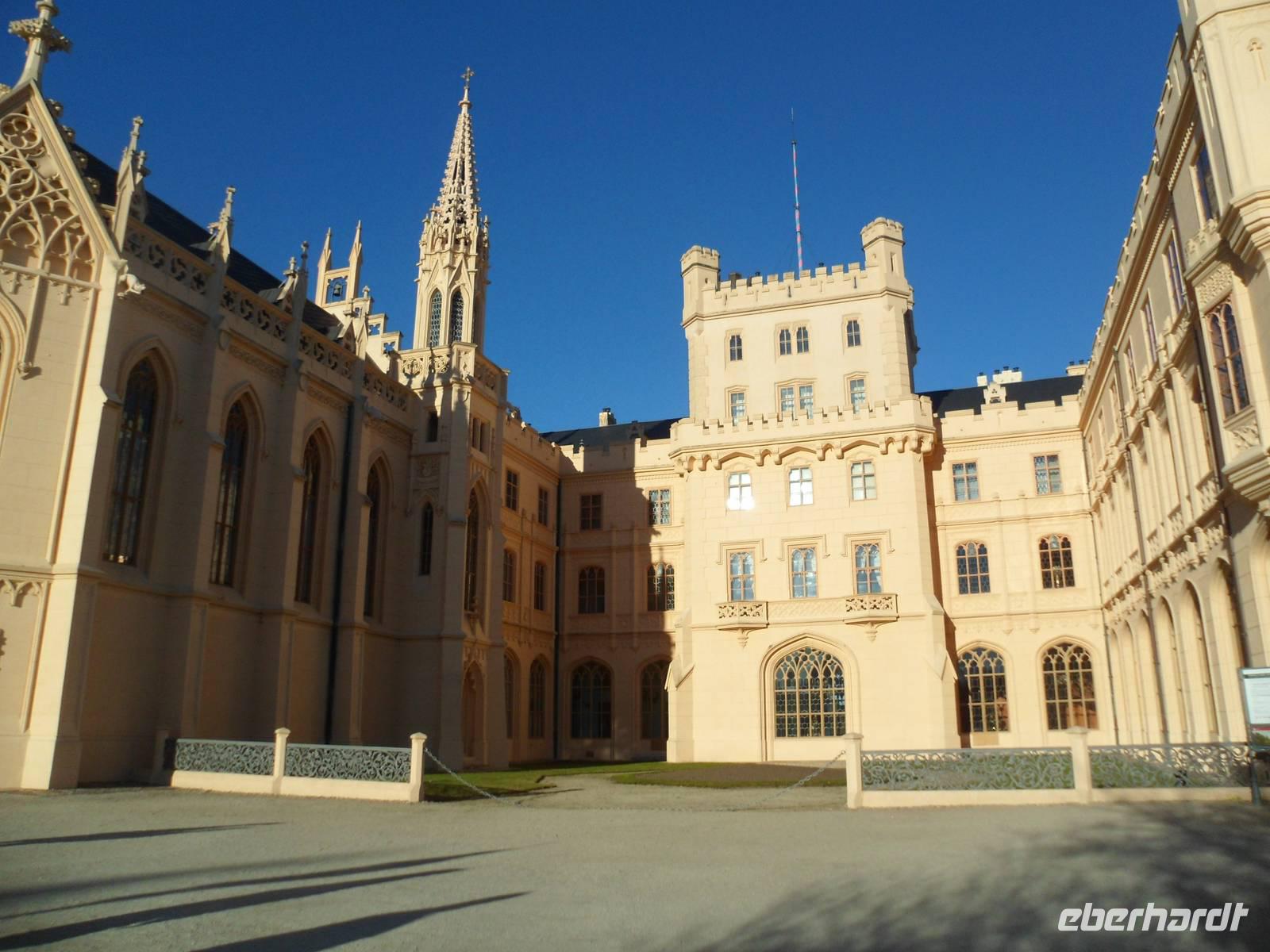 Beim Eintritt in den Schlosspark sahen wir das gigantisch neogotische Schloss - das sehenswerteste weit und breit - es war die Sommerresidenz der Familie Lichtenstein.