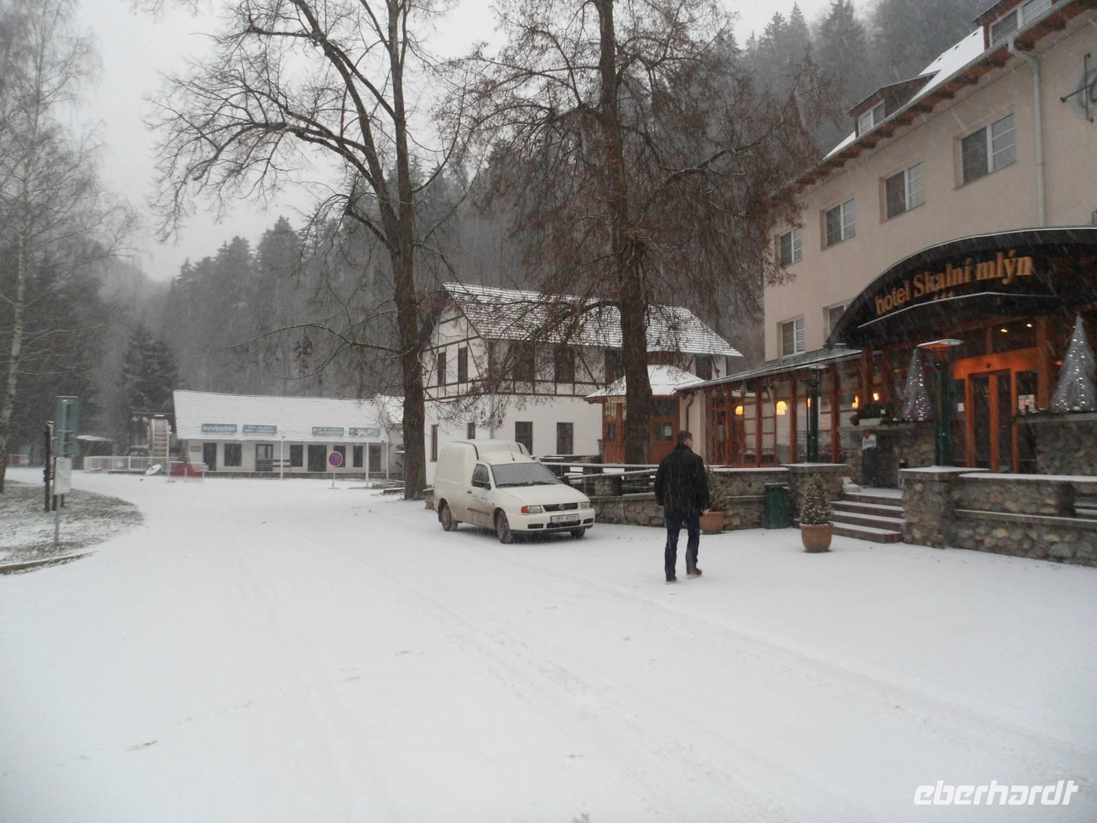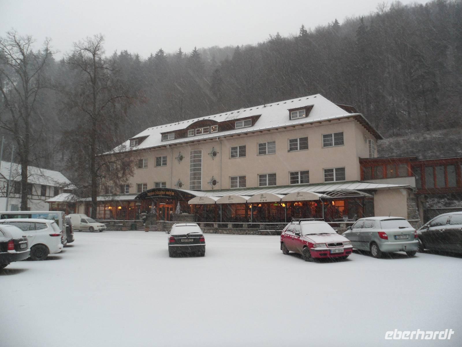 Zurück zum Bus - mit vielen neuen Eindrücken - fuhren wir durch mehrere Ortschaften bis nach Blansko - der Eingang zum Mährischen Karst. Die Straßen bis zum Hotel wurden immer schmaler - keine Häuser nur noch Wald. Um 17.00 Uhr kamen wir im Hotel Skalni Mlyn (Steinmühle) an. Zimmerbezug, Abendessen.