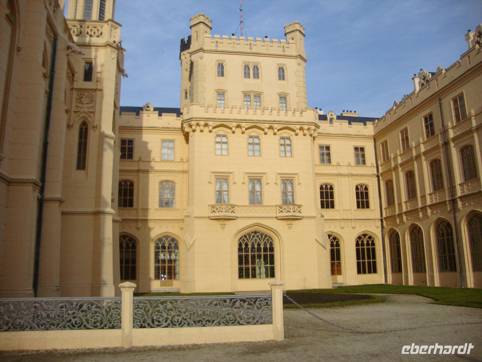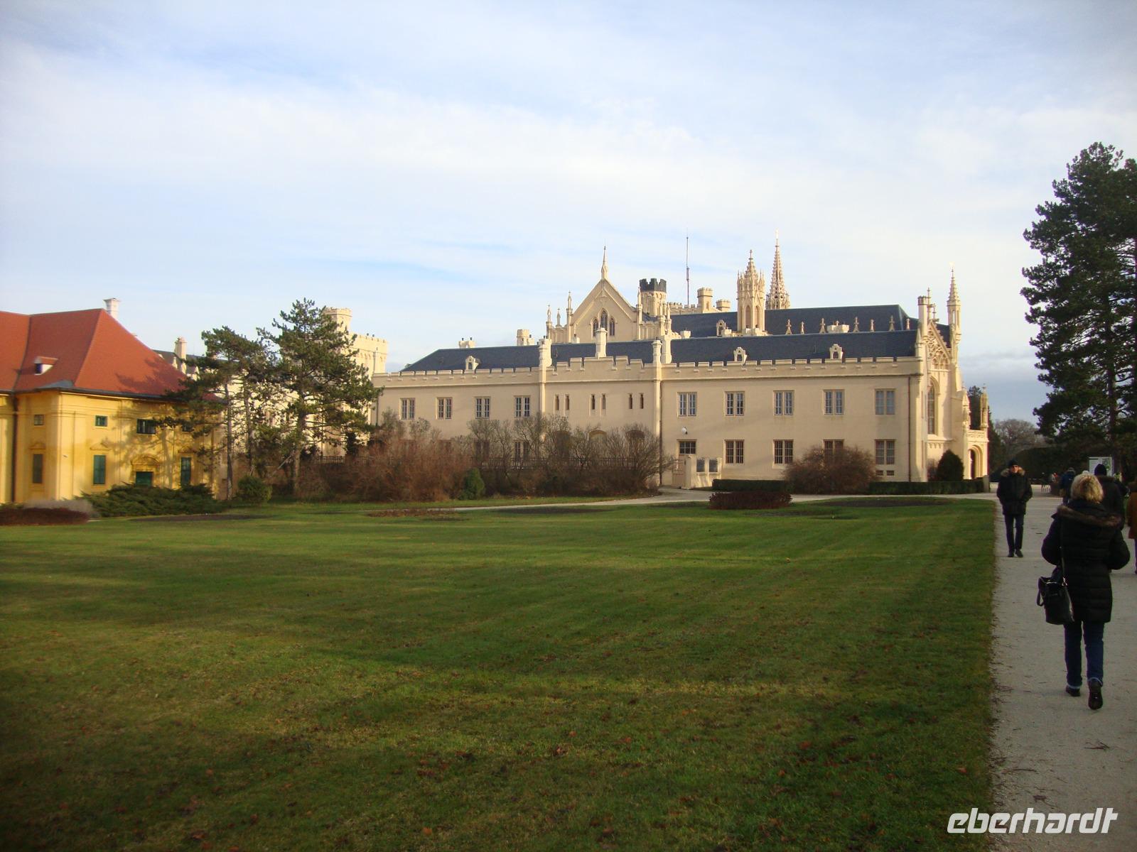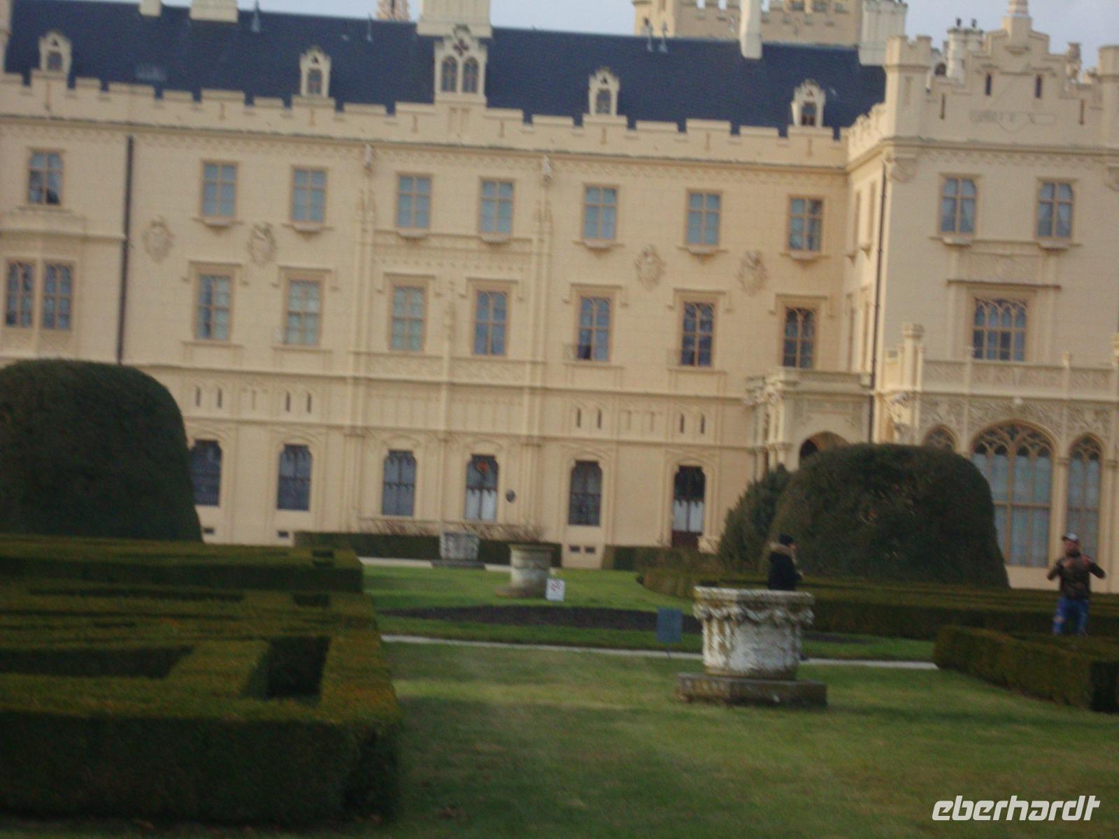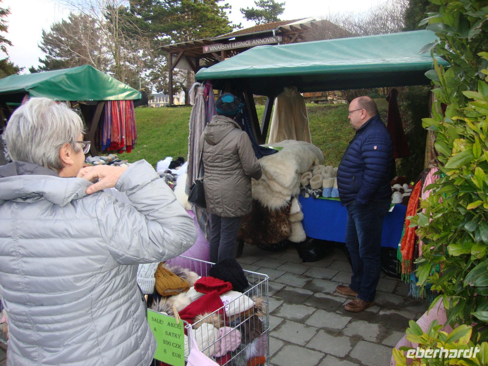 Nach einem ausgewogenem Frühstück begaben wir uns mit unserem Gästeführer Gustav auf die Rundfahrt durch Südmähren. Unser erstes Ziel war der Ort Slavkov u Brna', Austerlitz - bekannt durch die Drei-Kaiser-Schlacht im Jahre 1805 -mit dem legendären Sieg Napoleons. Leider war das Schloss Austerlitz geschlossen, wir konnten nur die weiten Außenanlagen in Augenschein nehmen. Das Friedensdenkmal Mohyla miru, welches sich auf der Anhöhe oberhalb des Ortes befindet, erinnert an die Opfer der Napoleonischen Kriege. Ironie des Schicksals, es wurde im Jahre 1914 eingeweiht. Leider waren auch hier das Bistro und Souvenir -Shop geschlossen. Inmitten von Hügeln, Kartsfelsen und Seen befindet sich die frühere Hauptstadt Mährens, Mikulov - Nikolsburg, ein Zentrum des Wein- ,Obst- und Gemüseanbaus. Blickfang ist das nach dem zweiten Weltkrieg wieder aufgebaute Schloss. Unterhalb des Schlosses liegt der Marktplatz gesäumt von schönen Bürgerhäusern des 17.Jh. Leider konnten wir nur eine Stadtrundfahrt machen, das Schloss war auch heute nicht geöffnet und der einzige Busparkplatz war mit PKW zugeparkt. So ging unsere Fahrt weiter nach Lednice - Eisgrub. Das Schloss war vom 13.Jh. bis 1945 im Besitz der Fürsten von Lichtenstein. Es wurde mehrfach umgebaut und erhielt sein neogotisches Äußeres Mitte des 19.Jh. Bei einer sachkundigen Führung betrachteten wir das Interieur, welches durch üppige Holzschnitzreien und die aus einem einzigen Eichenstamm geschnitzte Wendeltreppe allgemein Bewunderung fand. Im weitläufigen Schlossgarten stehen ein großes Gewächshaus, kleine Lustschlösschen und einige romantische Parkbauten. Wer Lust hatte konnte durch den Park bummeln. Am späten Nachmittag waren wir zu Gast in Cejkovice. Diese Gegend ist bekannt für Weinanbau in bester Qualität. Unser Besuch im Weinkeller der ehemaligen Templerritter war ein Höhepunkt der Reise. Wir nahmen im urigen Gewölbe Platz und wurden verwöhnt, mit einem sehr guten 3-Gang-Menü, außerdem lernten wir bei einer Verkostung die ausgezeichneten Weine kennen. Der gesellige Abend wurde mit Folklore - Musik umrahmt und gegen 19.00 Uhr traten wir bei leichtem Schneefall die Rückfahrt nach Brünn an. Ein erlebnisreicher und schöner Tag ging zu Ende.