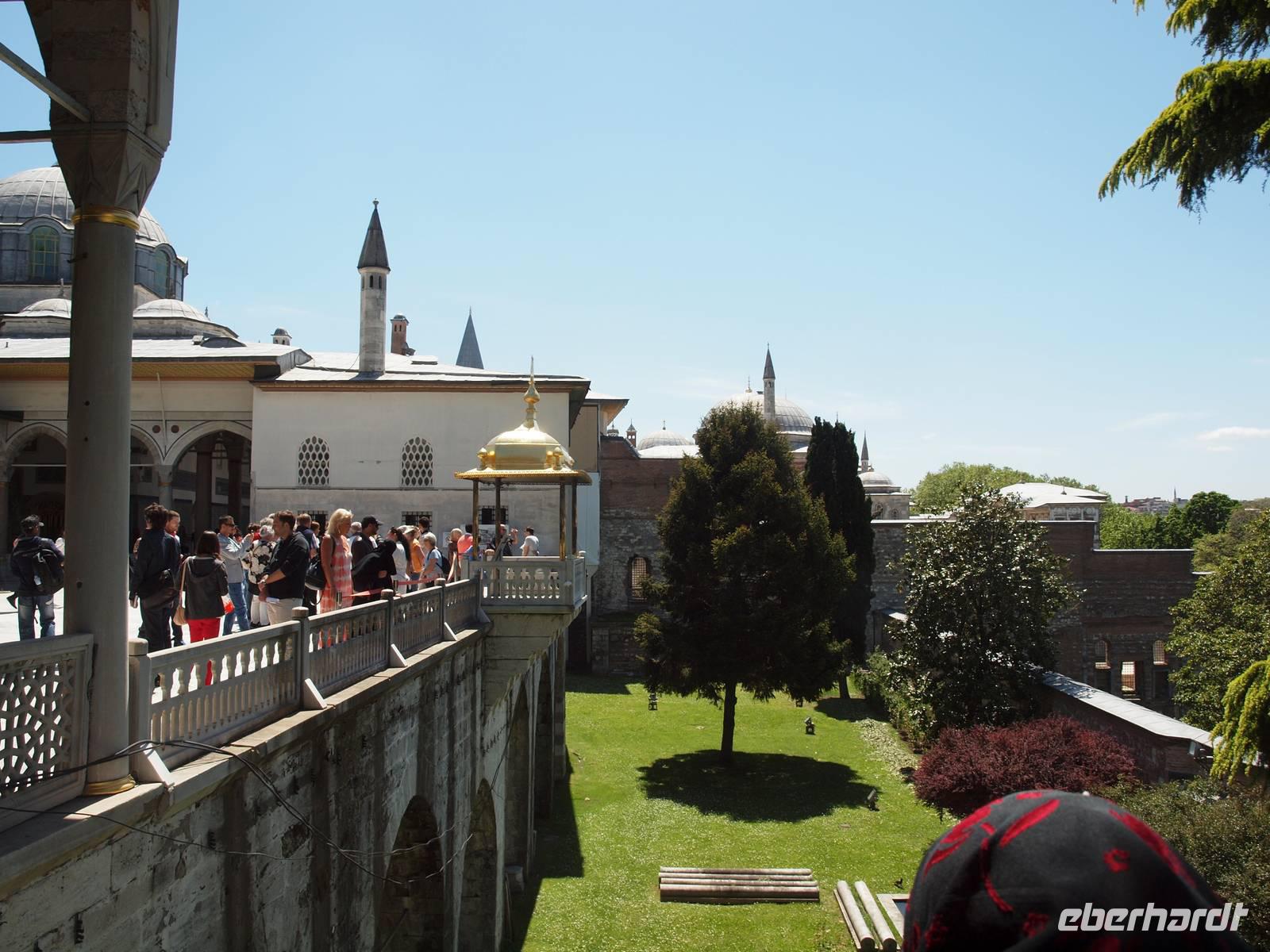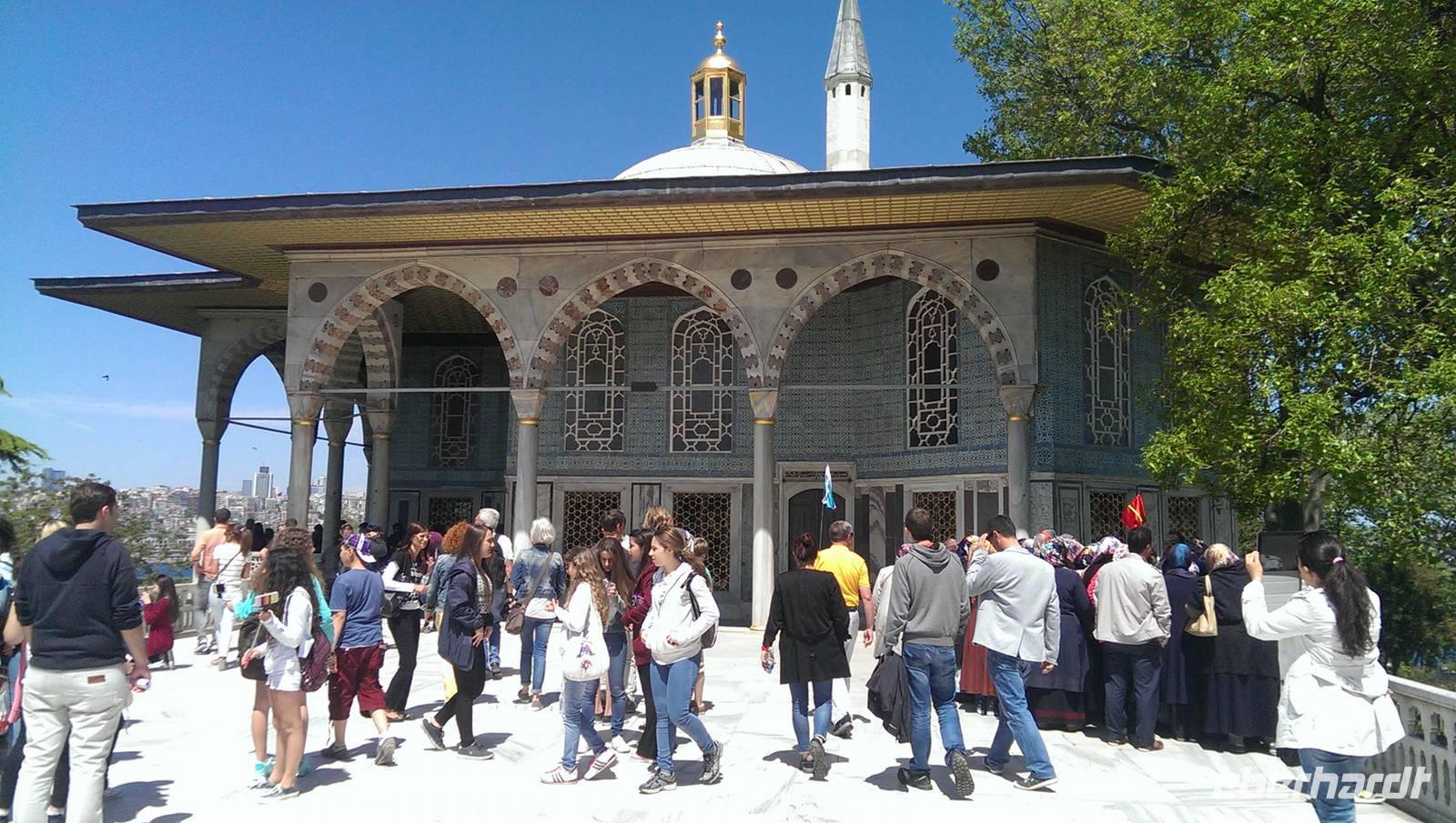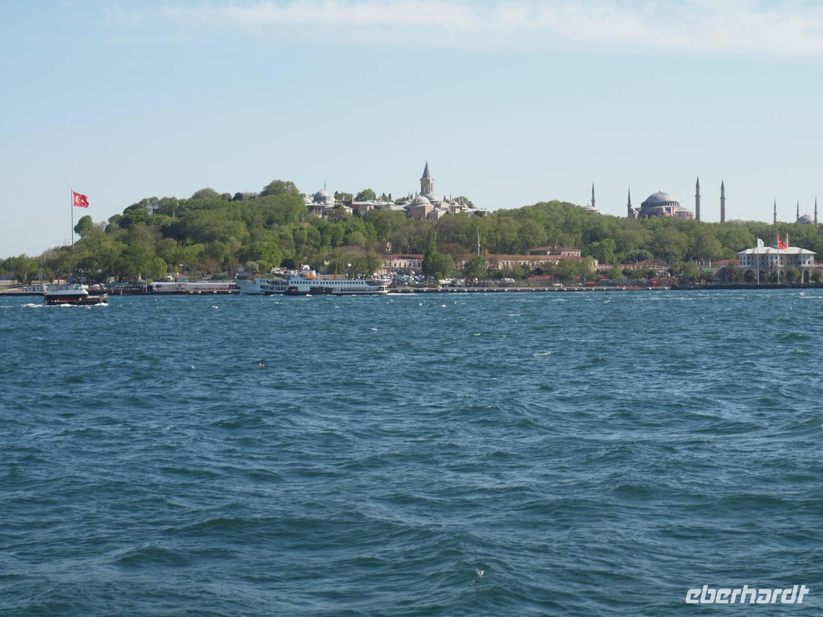 Nach dem Frühstück begeben wir uns auf Sightseeing-Tour durch Istanbul. Wir beginnen am Deutschen Brunnen am Hippodrom. Hier stehen auch zwei Obelisken und die Schlangensäule. Nach wenigen Metern erreichen wir die Blaue Moschee. Hier erzählt uns Serdar alles über den Glauben und wie dieser in den Alltag eingeht. Direkt gegenüber der Blauen Moschee befindet sich die Hagia Sophia, ein wahres Meisterwerk. Gleich neben der alten Kirche befindet sich der Haupteingang des Topkapi Palastes. Zum Glück haben wir schönes Wetter! Hier spazieren wir mit Serdar durch die gesamte Anlage, die in drei Teile geteilt ist. Serdar führt uns durch den Harem, wo sich mehrere Ausstellungen befinden und erzählt uns viel von der Geschichte des Palastes sowie von Istanbul. Während der Freizeit wissen wir das gute Wetter zu schätzen, denn vom Palast aus hat man einen tollen Blick auf die anderen Seiten des Bosporus und des Goldenen Horns. Wir beenden die Tour und fahren runter zum Fluss. Der Bosporus wartet auf uns und ein Schiff, nur für uns! Wir nehmen auf dem „Panorama"-Deck Platz und genießen die individuelle Flussfahrt.