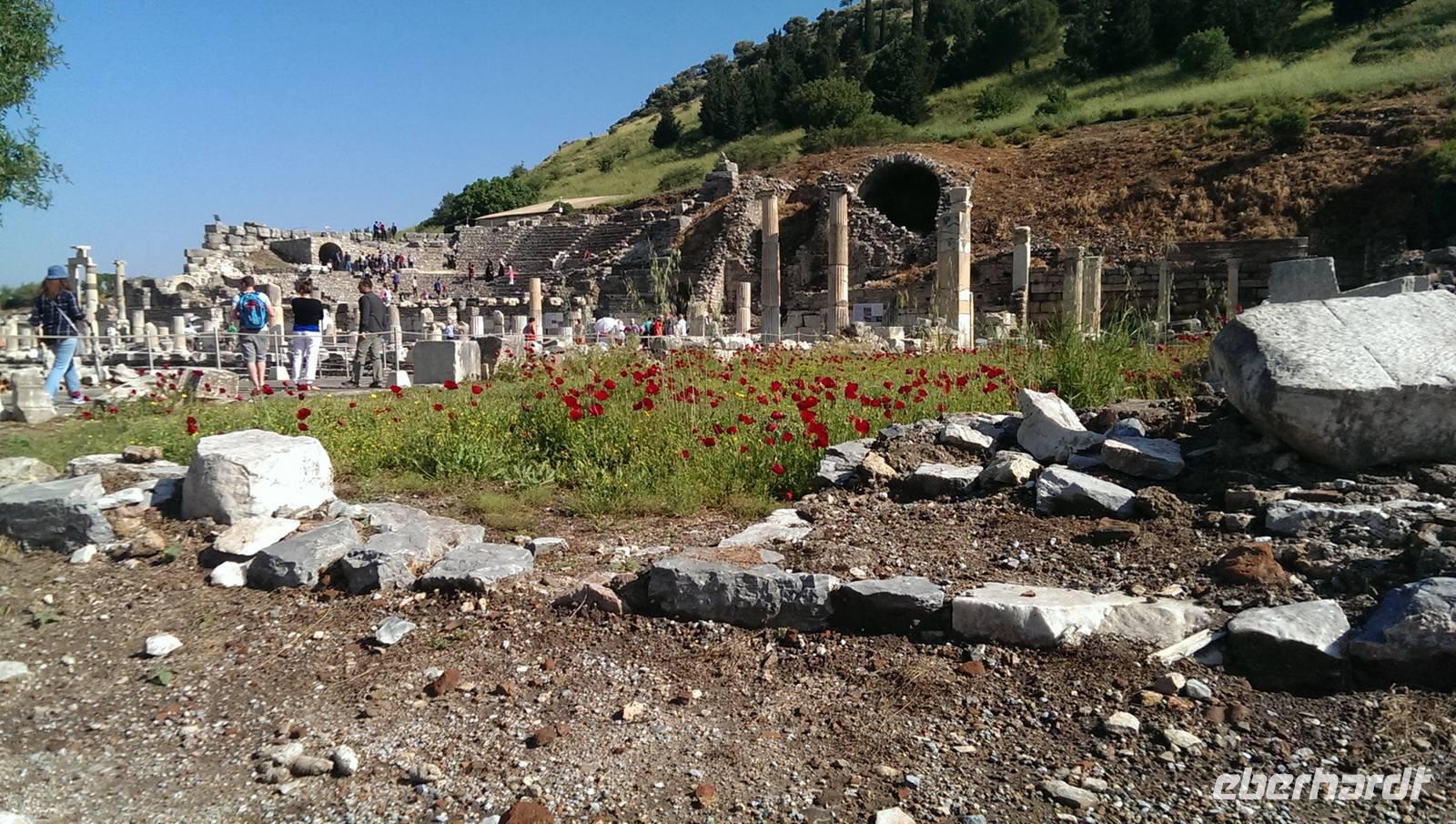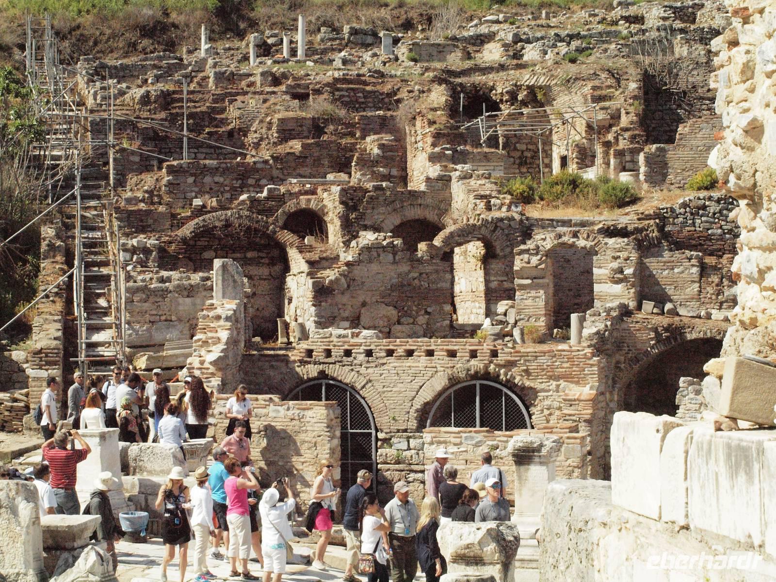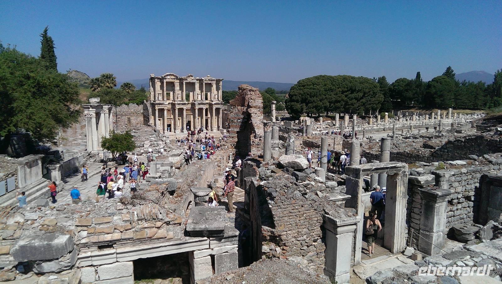 ... Zum Glück hat der Regen aufgehört und wir können bei strahlendem Sonnschein die letzte antike Stadt besichtigen - Ephesus. Die Stadt bot uns ein überwältigendes Ausmaß an historischen Schätzen. Die Bibliothek und das Theater, welches noch heute für Konzerte genutzt wird, waren die Höhepunkte.
