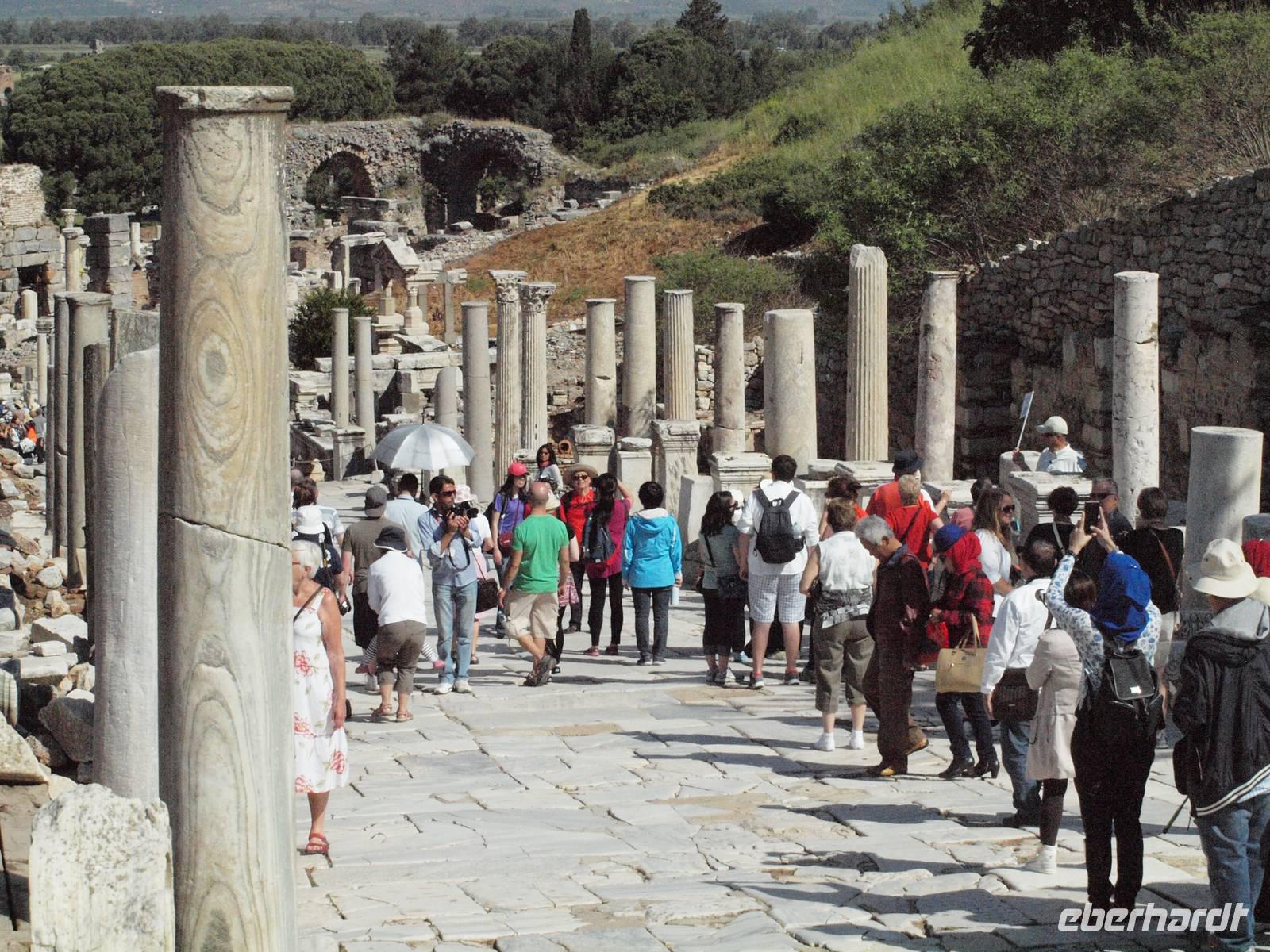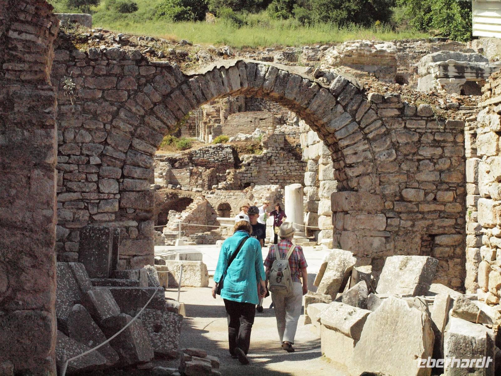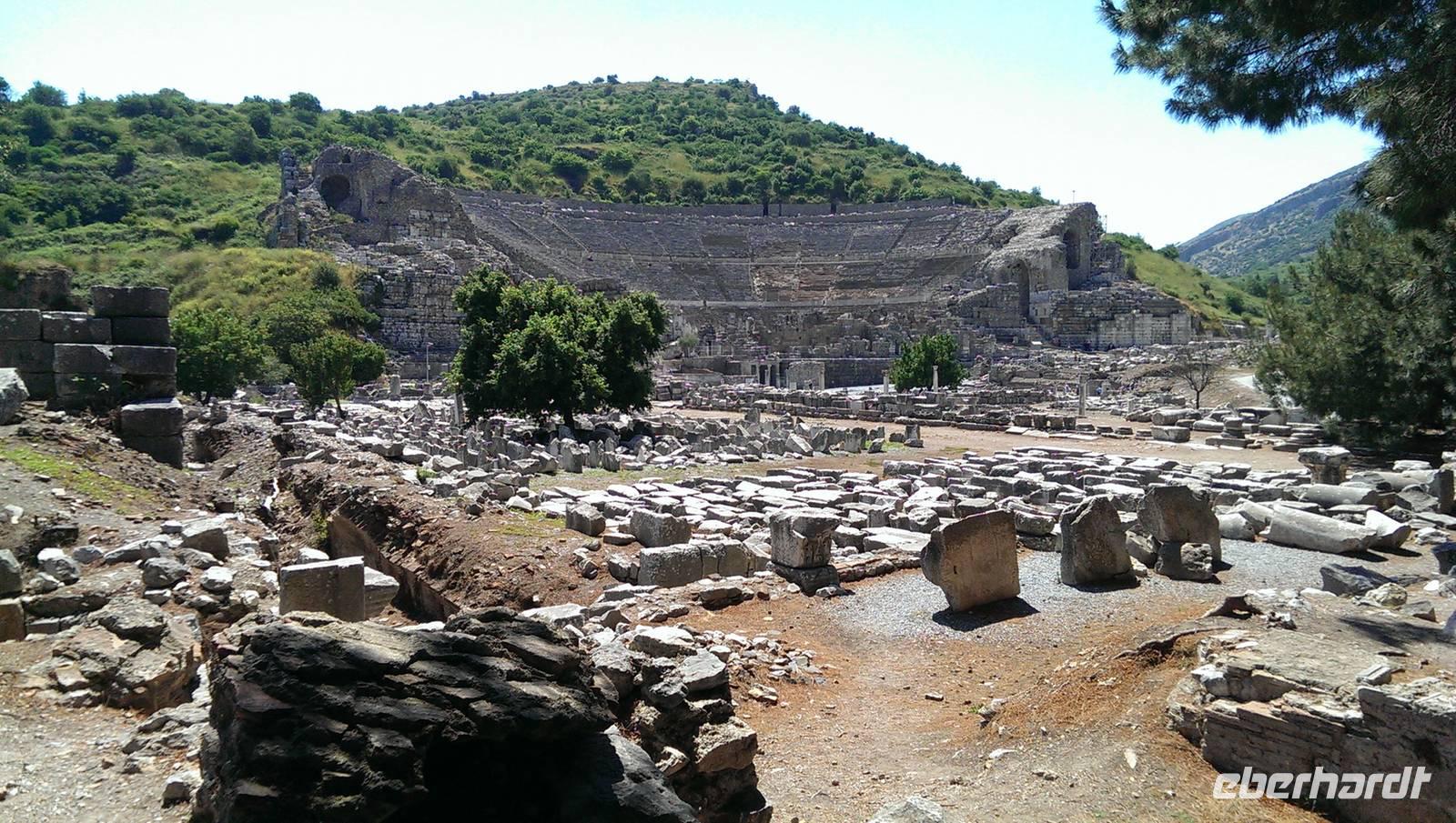 ... Zum Glück hat der Regen aufgehört und wir können bei strahlendem Sonnschein die letzte antike Stadt besichtigen - Ephesus. Die Stadt bot uns ein überwältigendes Ausmaß an historischen Schätzen. Die Bibliothek und das Theater, welches noch heute für Konzerte genutzt wird, waren die Höhepunkte.