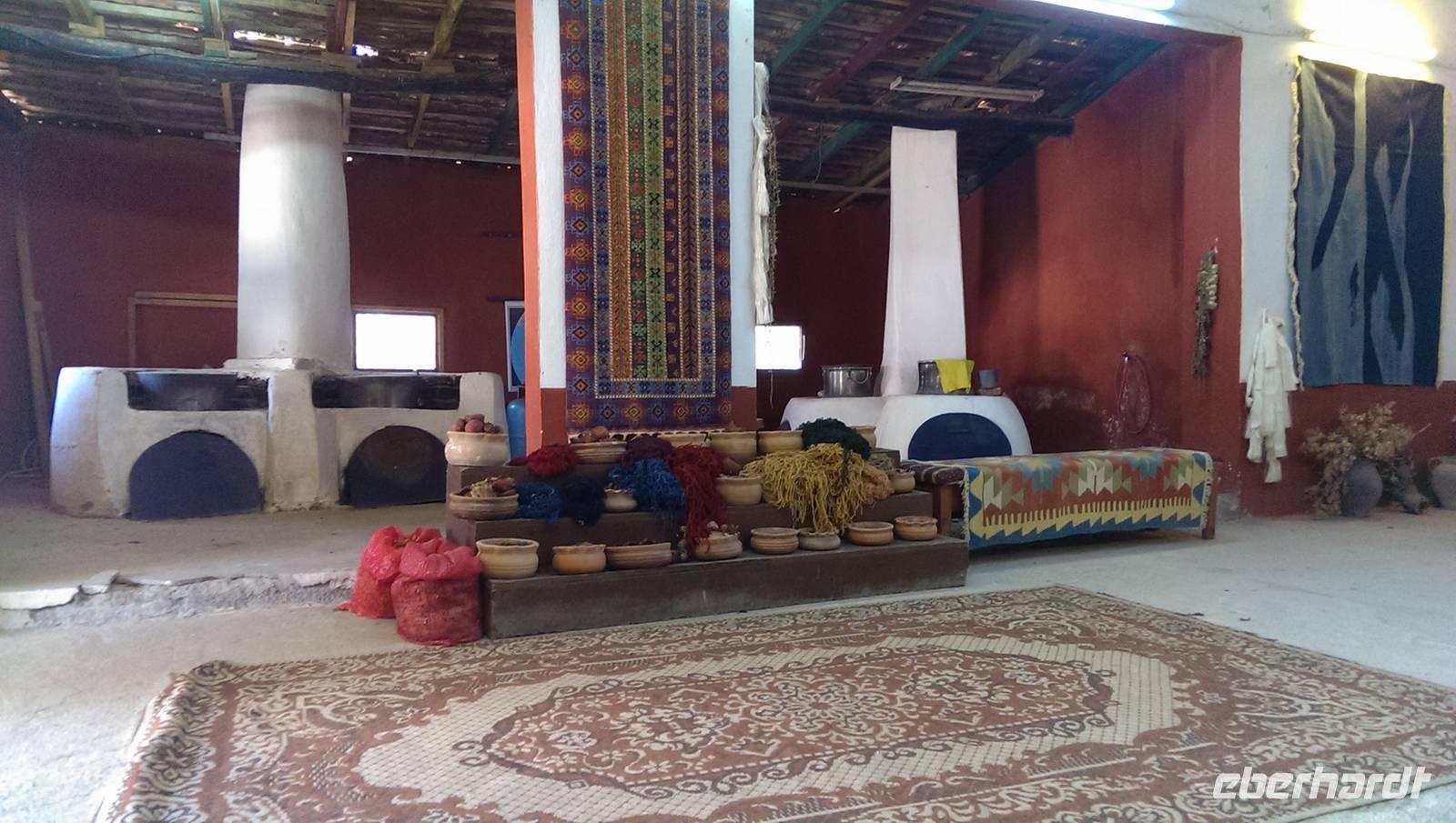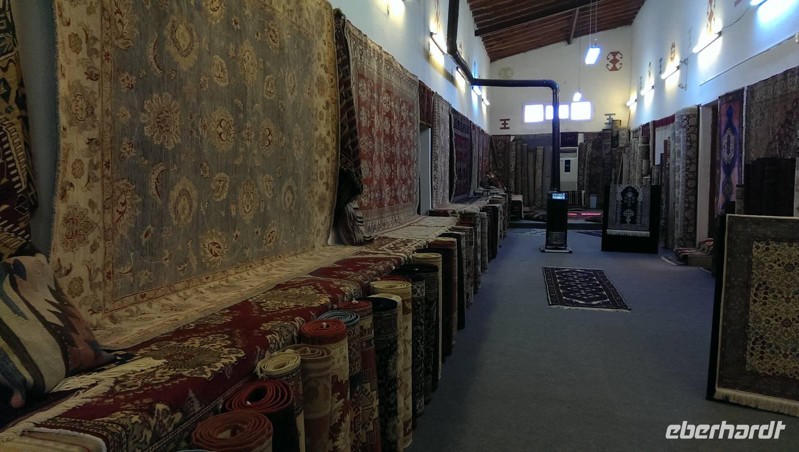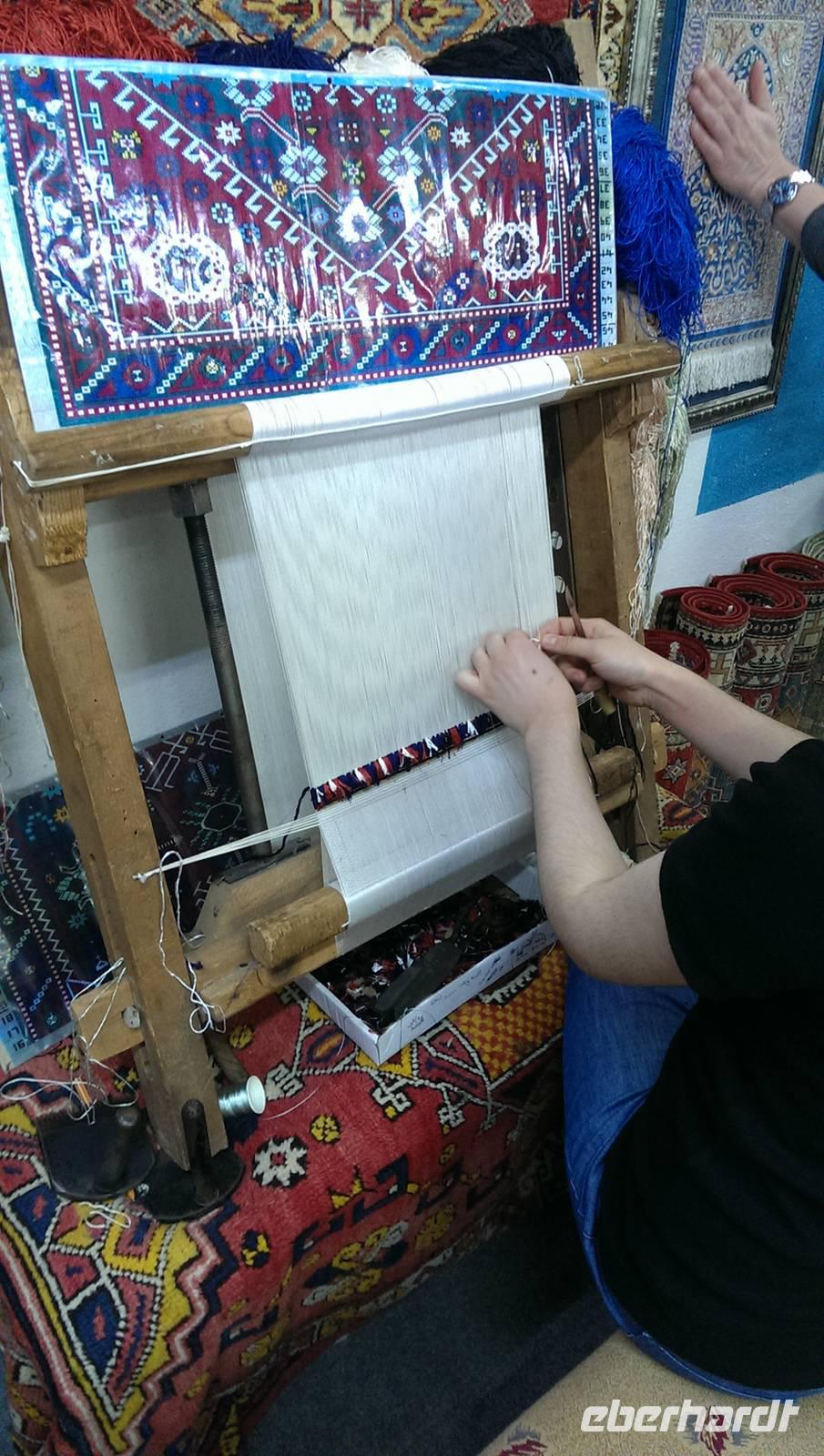 Unsere Reise führt uns heute weiter in den Süden. Wir besichtigen Pergamon, leider ist es heute sehr windig uns wir können nicht mit der Seilbahn nach oben fahren. Zum Glück kann uns Hassan bis kurz vor den Eingang fahren. Wir sehen viele alte Tempelanlagen und Serdar erzählt uns auch hier von der Entdeckung der Ruinen die der kleine Berg zu bieten hat. Besonders gut erhalten ist das Theater von Pergamon. Es besitzt das am steilsten ansteigende Zuscherrund aller antiken Theater. Auf dem Weg nach Kusadasi legen wir einen Zwischenstopp bei einer Teppichknüpferei, die sogar für uns ein tolles Mittagessen vorbereitet haben. Gestärkt und wieder aufnahmefähig erklärt man uns wie wichtig die Kooperativen für die Teppichknüferei sind. Wir können den Frauen bei der Arbeit über die Schultern schauen und unser Talent sogar selbst unter Beweis stellen. Nach einer Verkaufsshow mit Tee fahren wir weiter nach Kusadasi. Als wir ankommen regnet es bereits in Strömen...