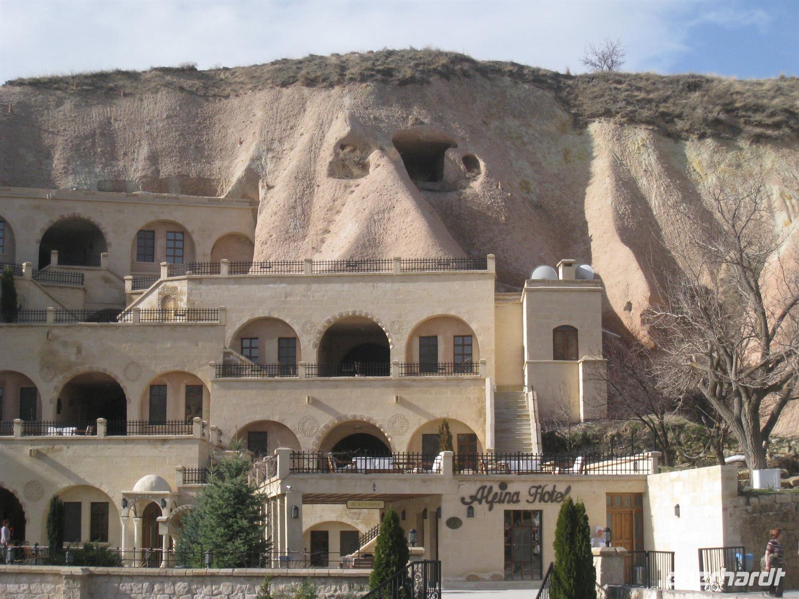 Eine lange Fahrt über mehr als 600 km stand uns bevor, als wir um 7:30 Uhr Antalya, zunächst in Meernähe fahrend, verließen. In Manavgat schwenkten wir nach Norden, um über den Bademli-Pass im Taurusgebirge in das Anatolische Hochland zu gelangen. Links und rechts der Straße über 1700 m Höhe waren noch zahlreiche Schneereste zu sehen. Die Gipfel des Taurusgebirges sind noch dick in Schnee gehüllt. In Konya besichtigten wir das Mevlana-Kloster, Gründungszentrum des Mevlanaordens, des «Ordens der Tanzenden Derwische», das seit der Säkularisierung unter Atatürk ein Museum ist. Ein kurzer Abstecher führte uns anschließend zu einer Moschee und Medresen. Hier gilt Schuhe ausziehen und später im Bus erklärte uns Kenan mehr über die Rolle der Frauen und die Gründe der Trennung der Geschlechter beim Moscheebesuch. Durch Zentralanatolien brachte uns der Bus zur Karawanserei Sultanhani. Inmitten der öden Hochebene liegt die größte und besterhaltene Karawanserei Anatoliens mit einem gewaltigen Wintersaal. Kenan ließ alle mitspielen an der Erklärung einstiger Karawanenwege, die sich hier trafen. So konnte jeder im Rollenspiel nachvollziehen wie sich Globalisierung entwickelte und erkennen, welch große Schutzfunktion die Karawanserei für Handelsreisende aus allen Himmelsrichtungen einst bot. Nach diesem Geschichtsunterricht ging es zum Höhlenhotel Alfina in Ürgüp. Alle fanden ein sauberes, nett eingerichtetes Zimmer im Fels vor und so trafen wir uns im Höhlenrestaurant zum späten Abendbrot.