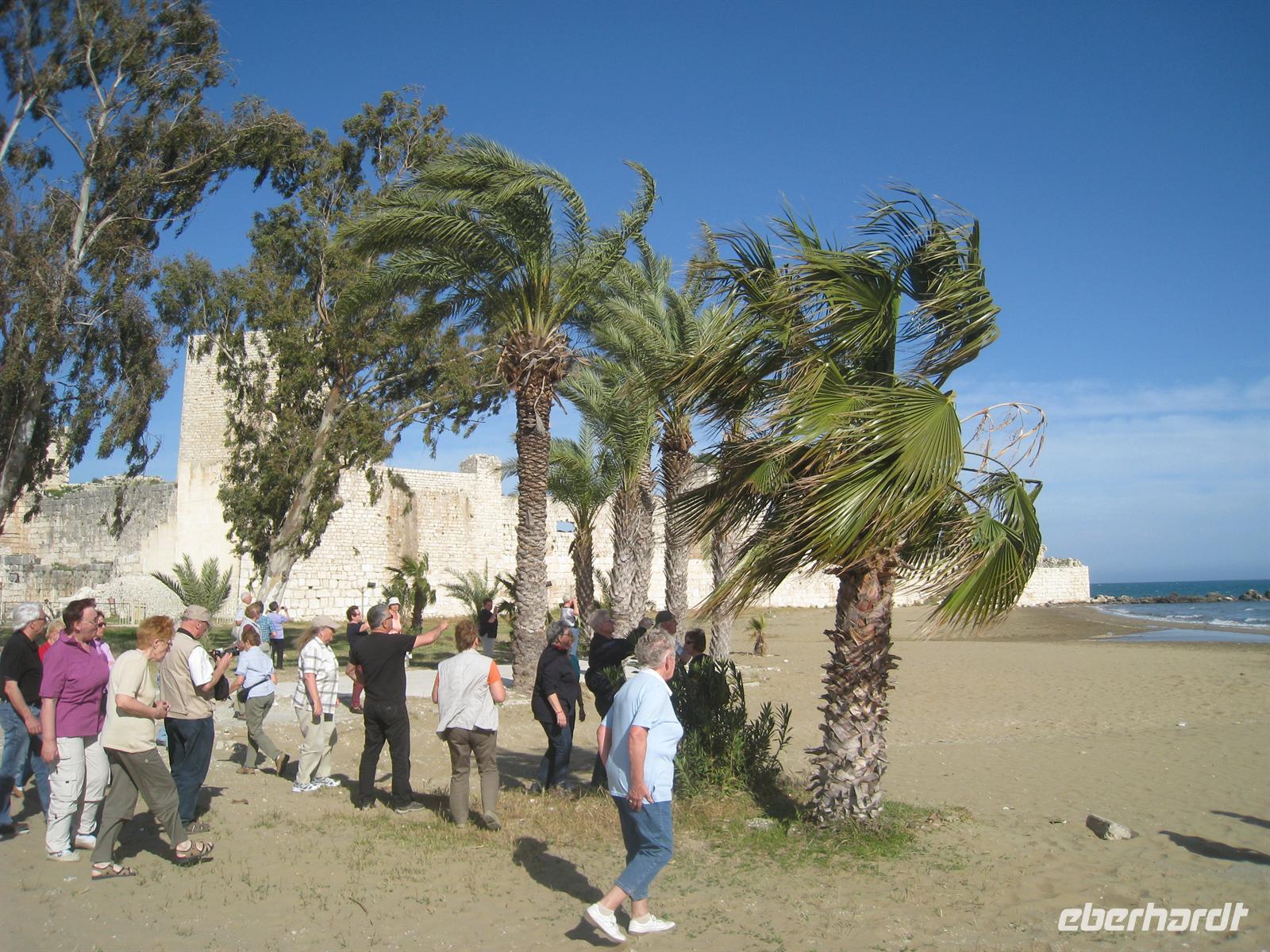 400 Kilometer Straße in Küstennähe wieß unser Tagesprogramm heute aus. Im Wechsel zwischen Asphaltband und fester Schotterstraße bei Baustellen erblickten wir linker Hand Buchten des Mittelmeeres und rechter Hand die Ausläufer des Taurusgebirges. Immer wieder Plantagen von Zitrusfrüchten, Bananen und Gemüseanbau. Gegen Mittag erreichten wir Anamur und die Marmure-Festung. Als kleinen Ausgleich für entgangene Tunnelblicke besichtigten wir die fast eintausend Jahre alte Festungsanlage auch von innen. Über den Burggraben mit sich paarenden Schildkröten gelangten wir durch starke Wehrmauern in die Innenhöfe, der durch Armenier gegründeten Wehrburg.