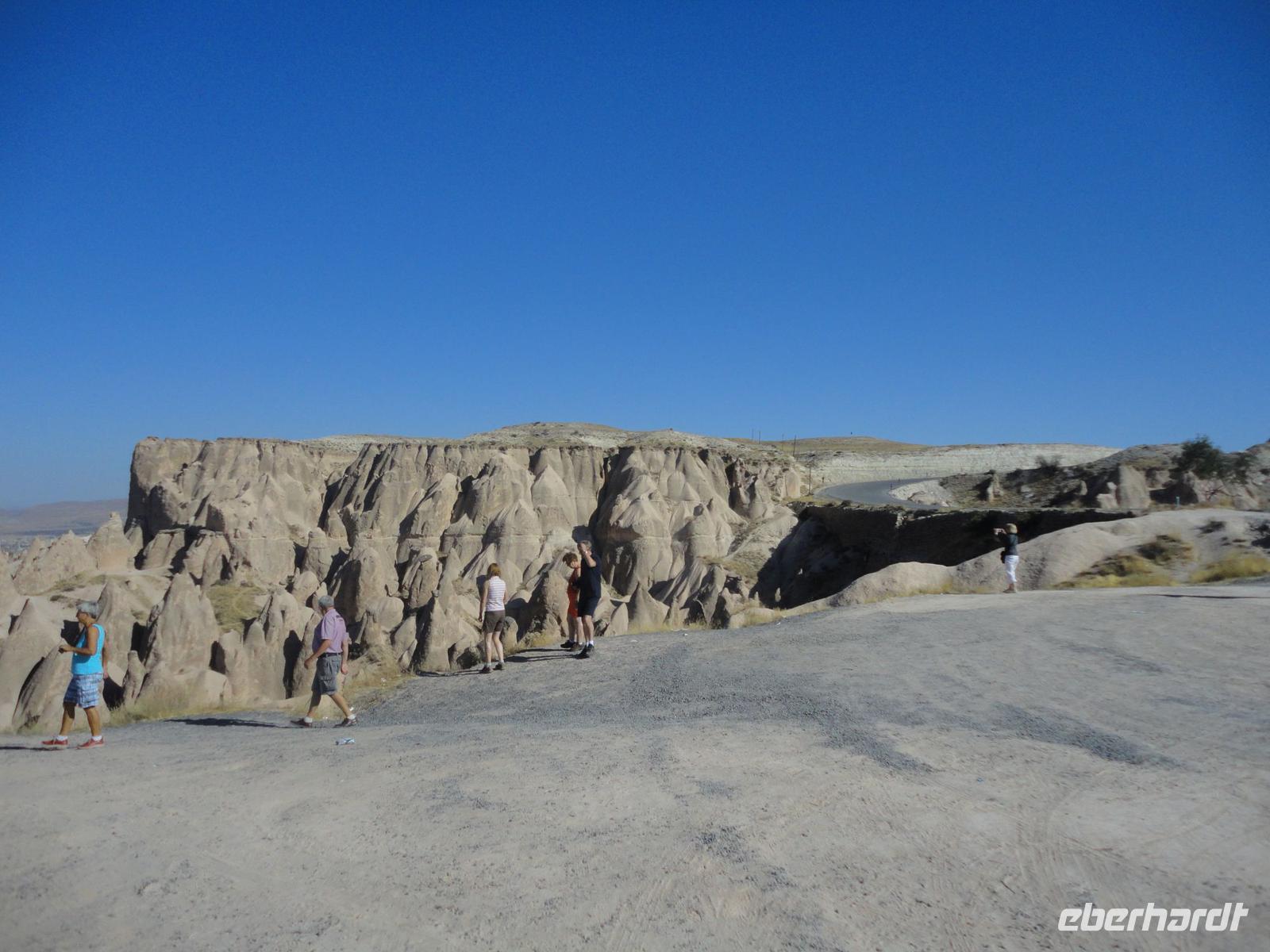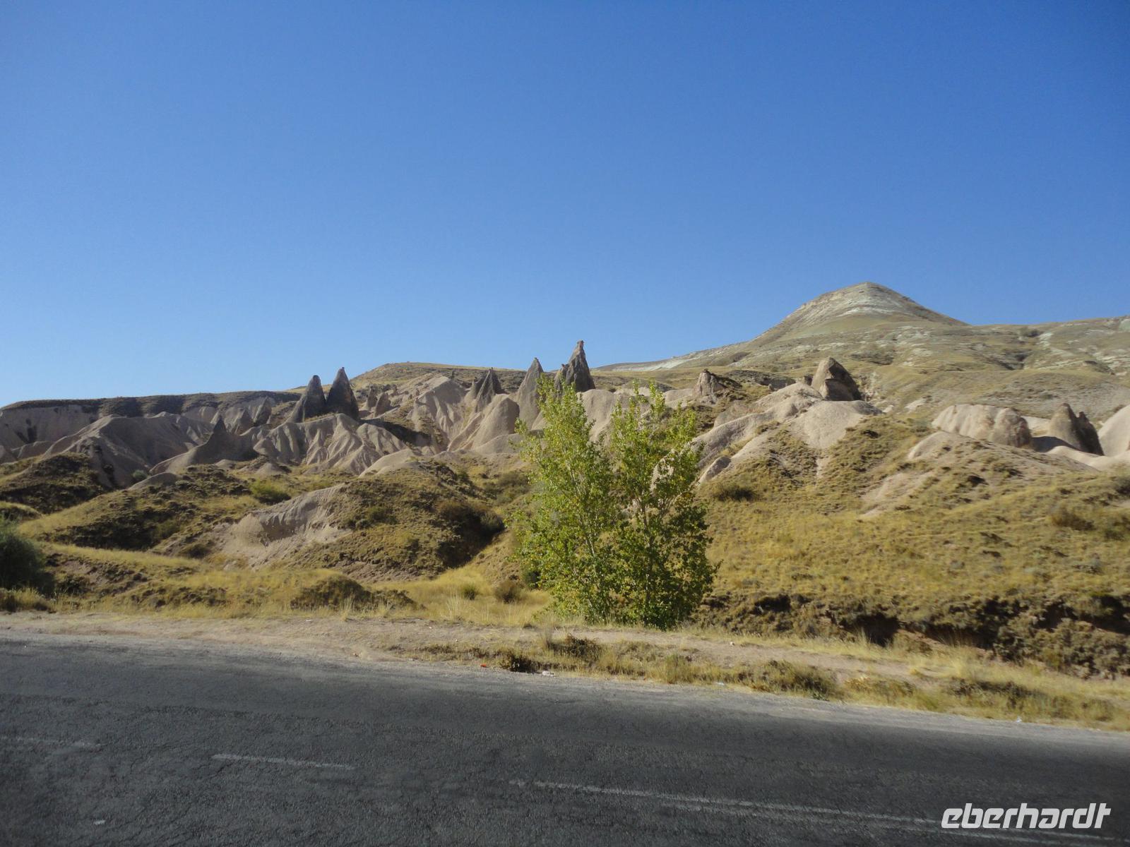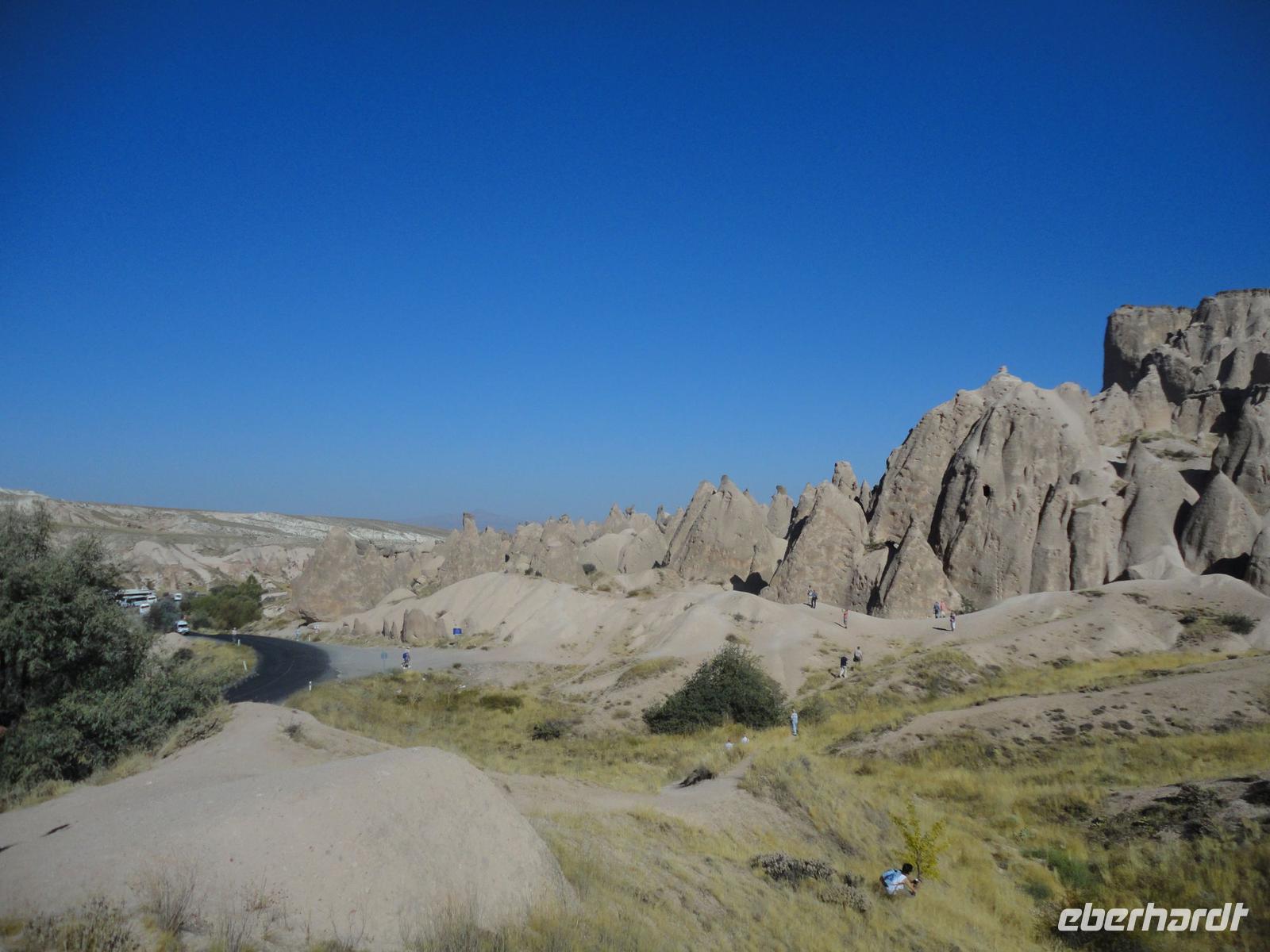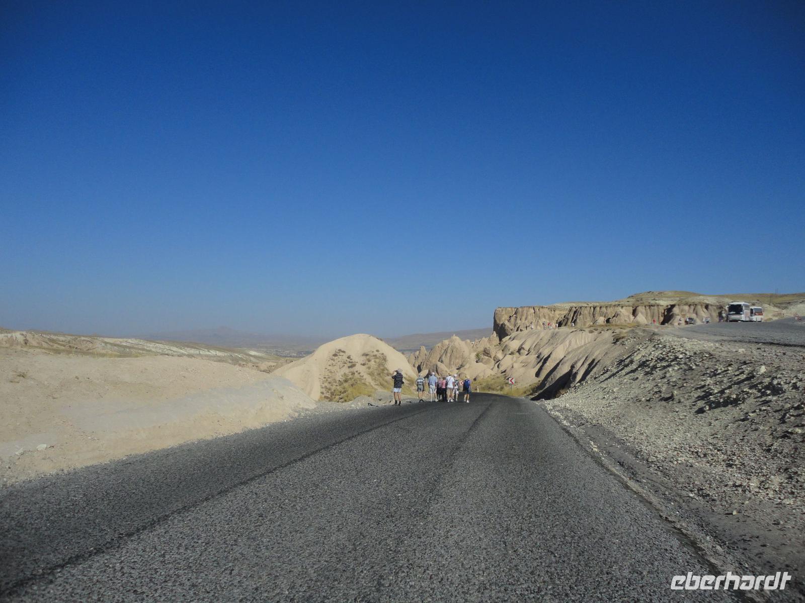 Am Nachmittag machten wir zunächst einen kurzen Fotostopp in Selime, wo sich die dunkelgrauen Tuffsteinformationen befinden. Auch der typische kurze Stopp an einer "Teestube" darf nicht fehlen - lädt uns unser Buschauffeur Tahir zu einem türkischen Tee in der Karawanserei Tepesidelik - mitten im Nirgendwo - ein.