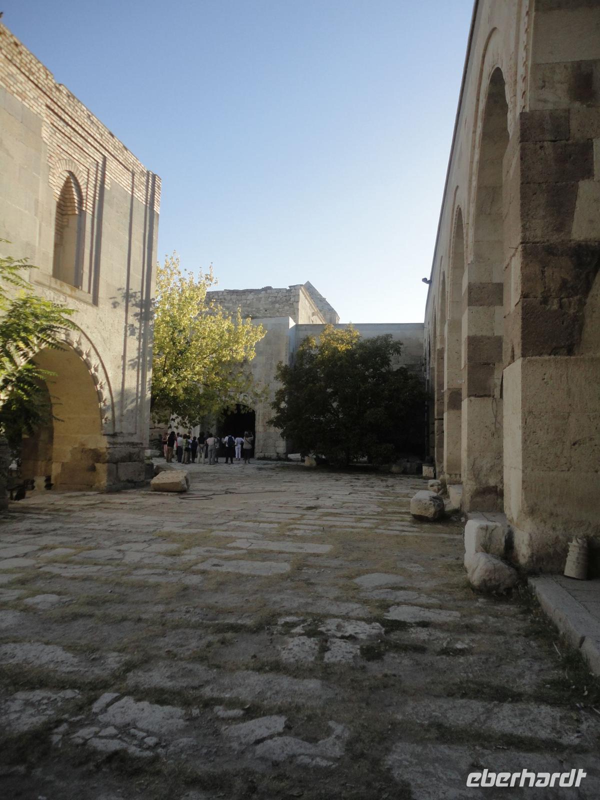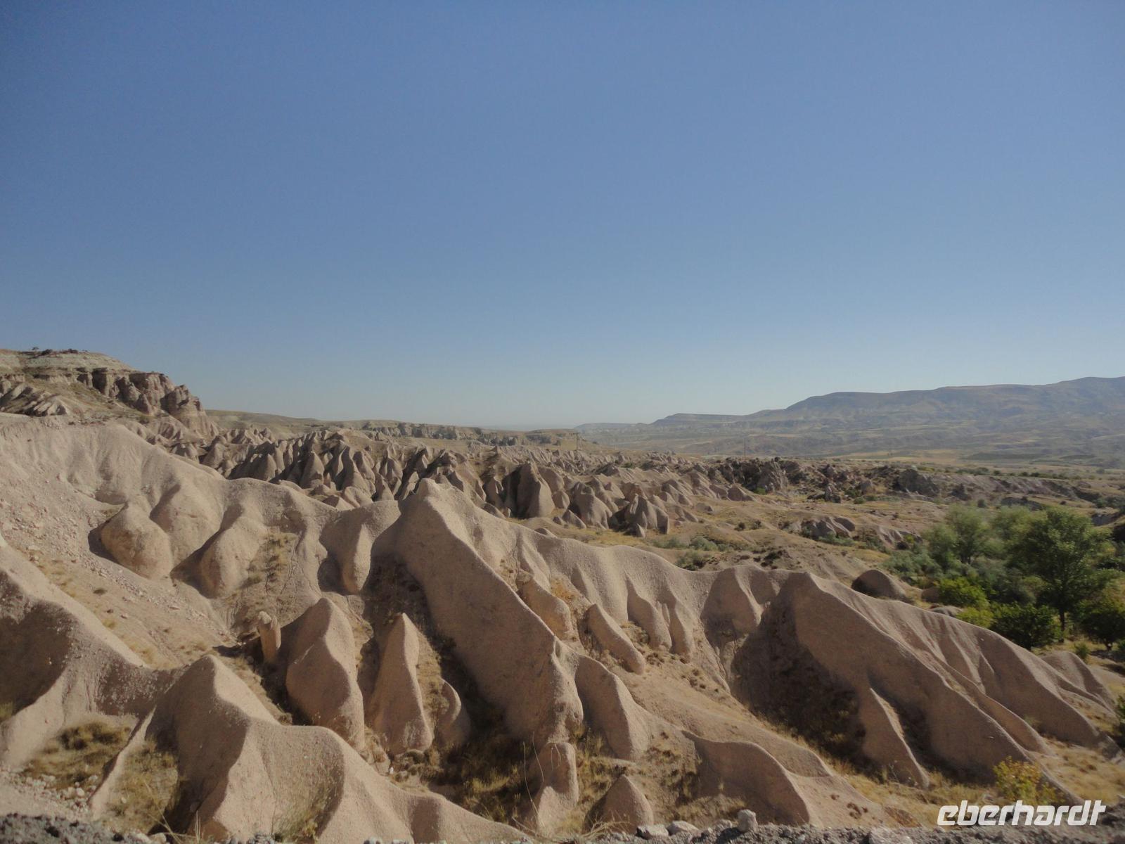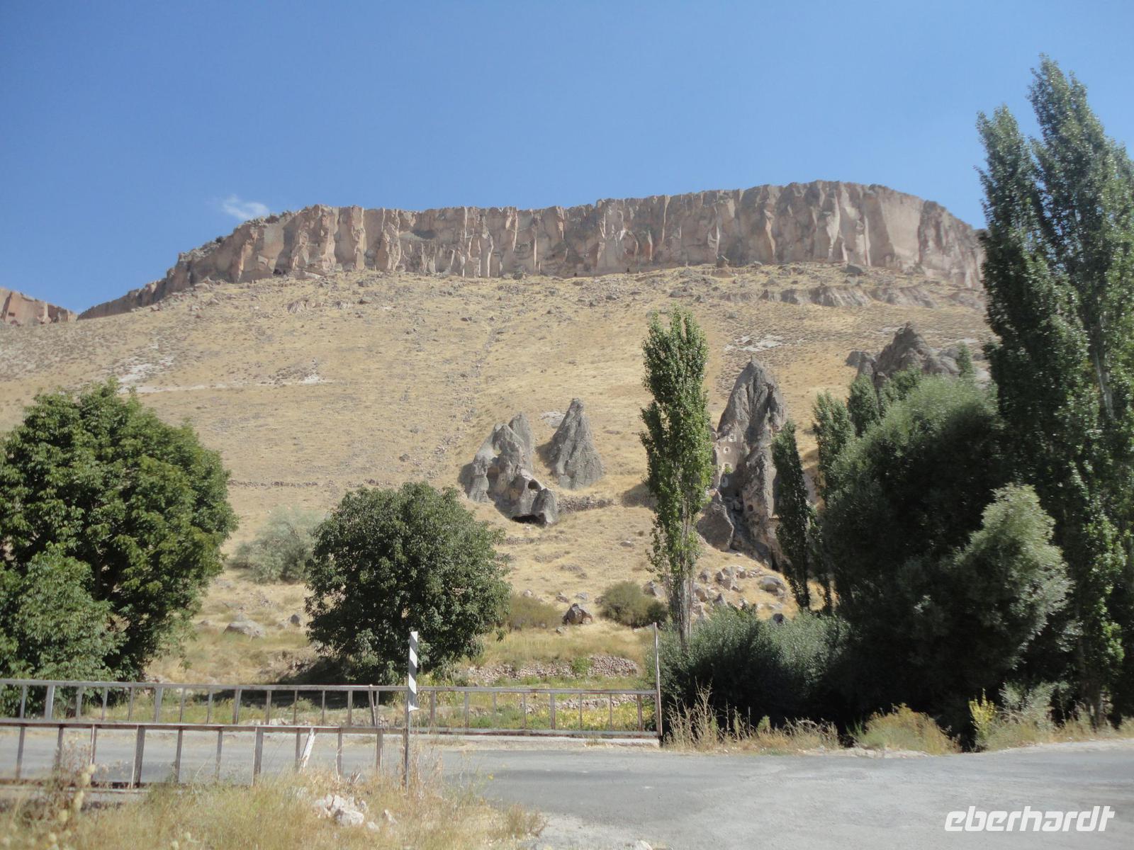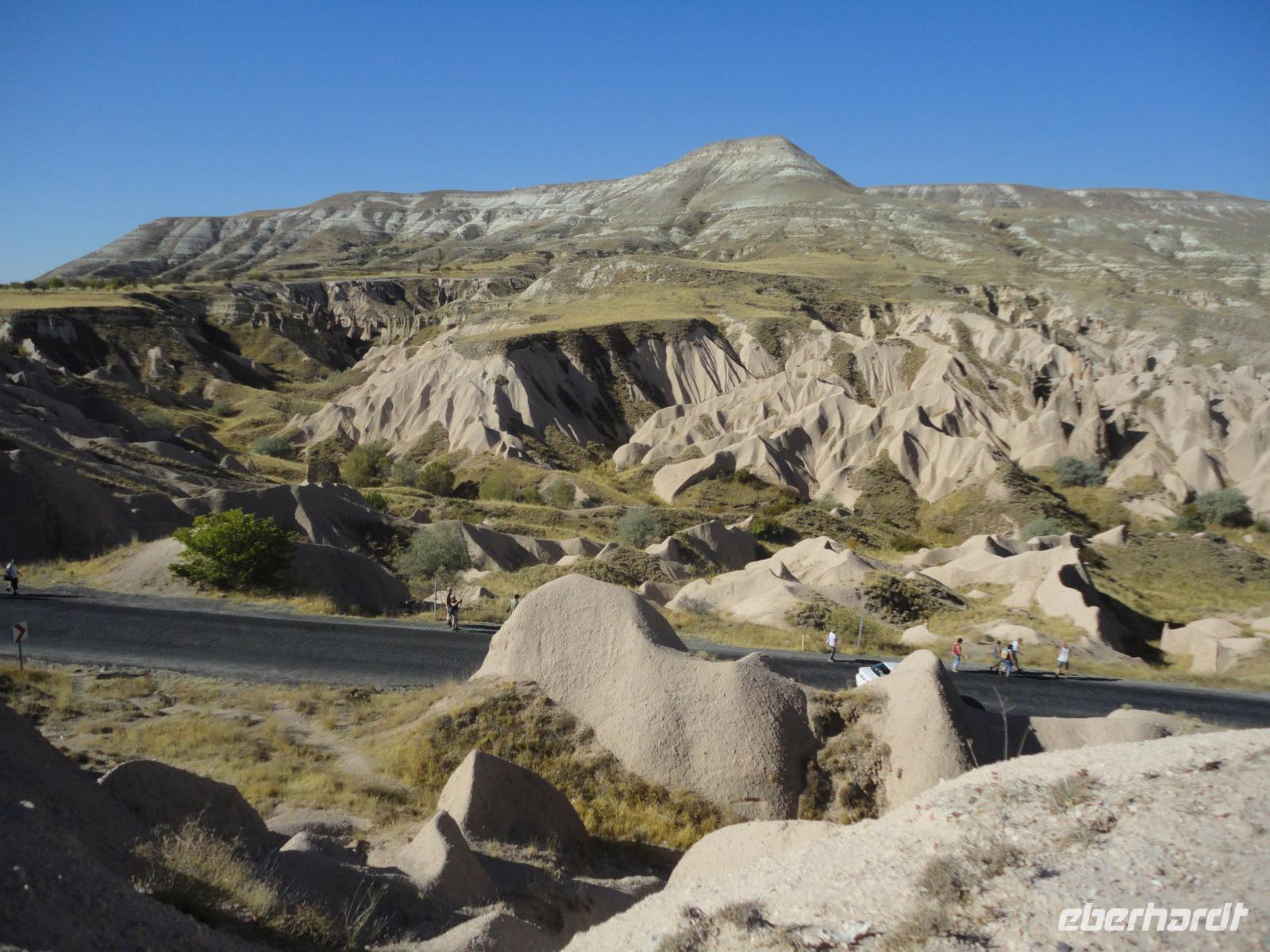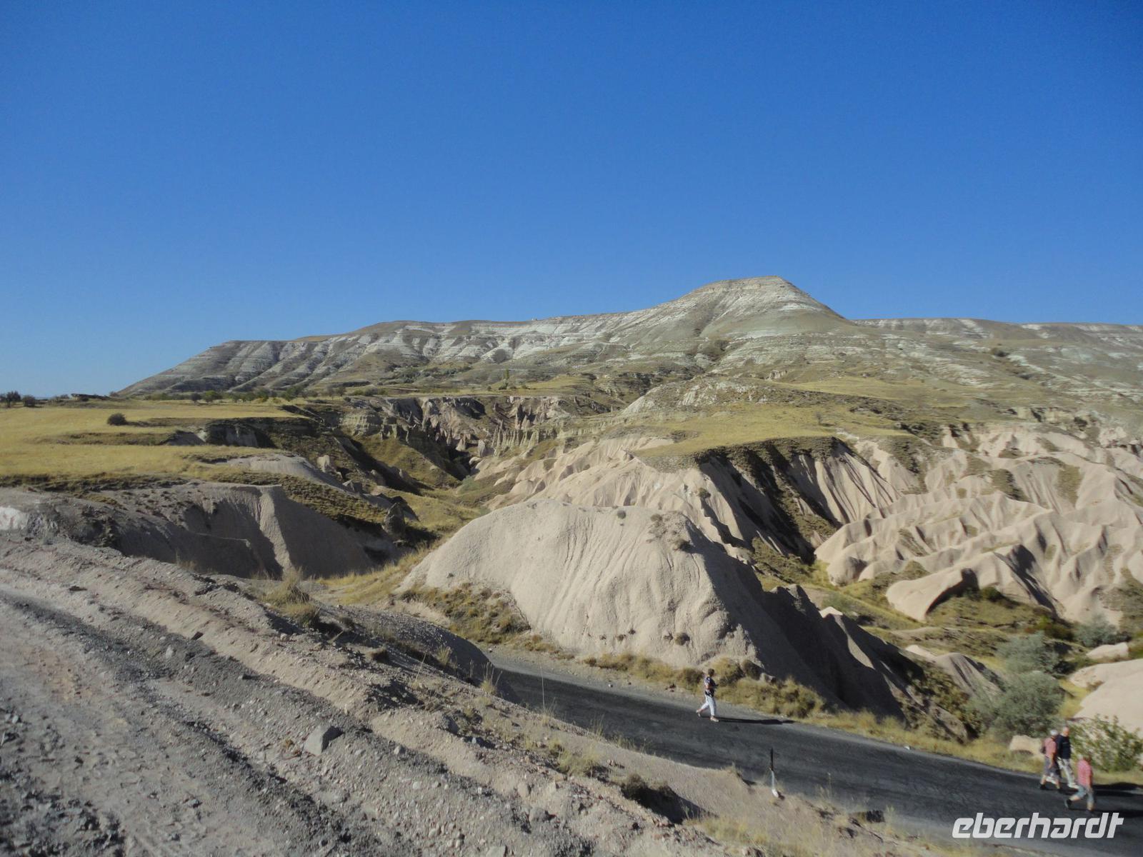 Am Nachmittag machten wir zunächst einen kurzen Fotostopp in Selime, wo sich die dunkelgrauen Tuffsteinformationen befinden. Auch der typische kurze Stopp an einer "Teestube" darf nicht fehlen - lädt uns unser Buschauffeur Tahir zu einem türkischen Tee in der Karawanserei Tepesidelik - mitten im Nirgendwo - ein.