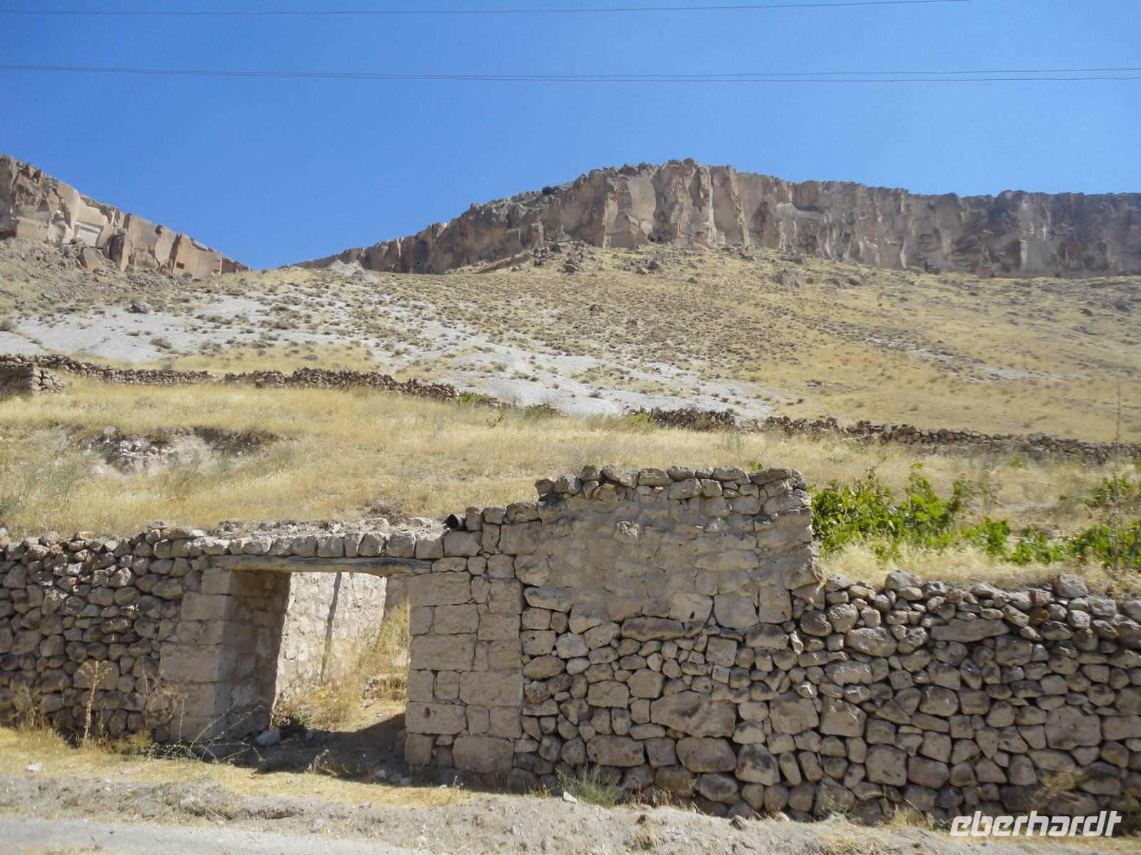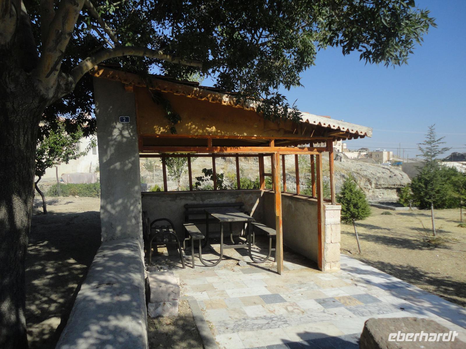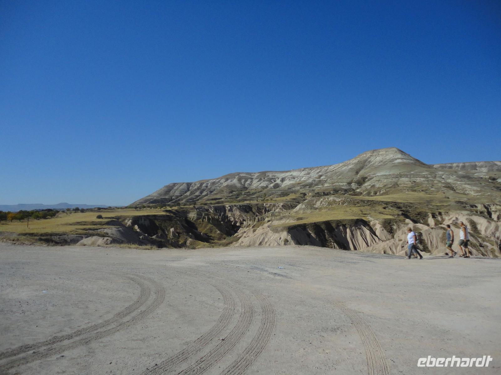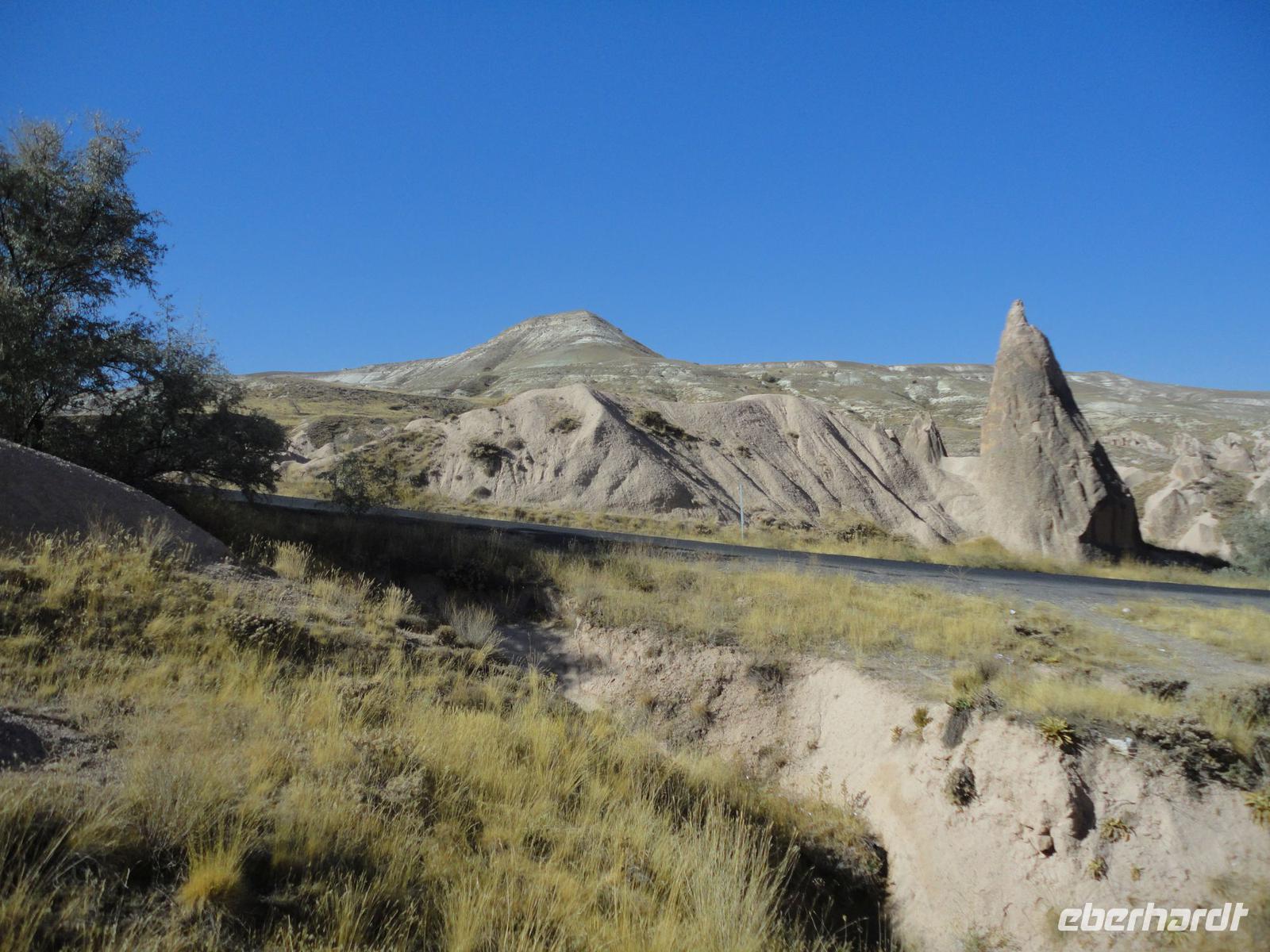 Am Nachmittag machten wir zunächst einen kurzen Fotostopp in Selime, wo sich die dunkelgrauen Tuffsteinformationen befinden. Auch der typische kurze Stopp an einer "Teestube" darf nicht fehlen - lädt uns unser Buschauffeur Tahir zu einem türkischen Tee in der Karawanserei Tepesidelik - mitten im Nirgendwo - ein.