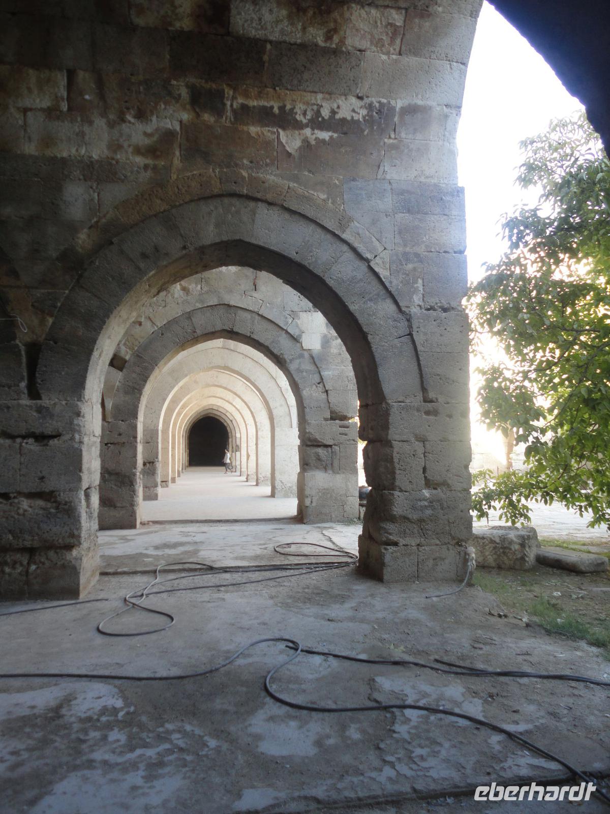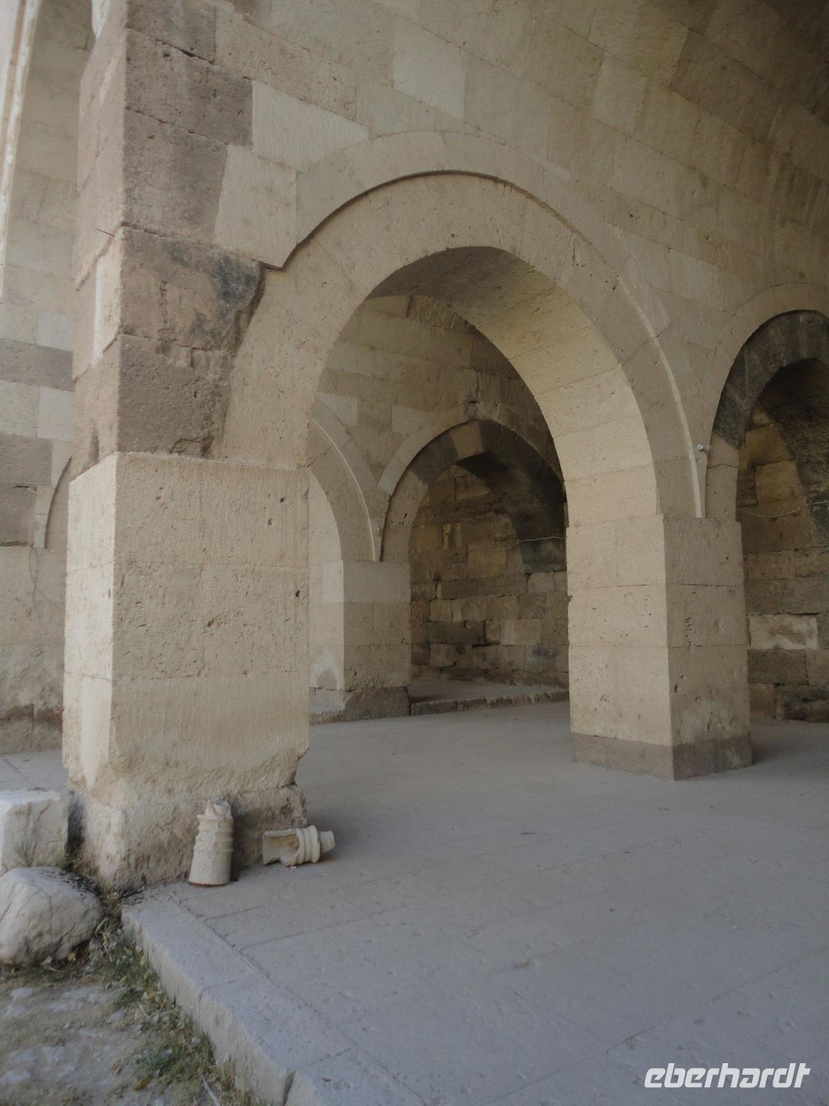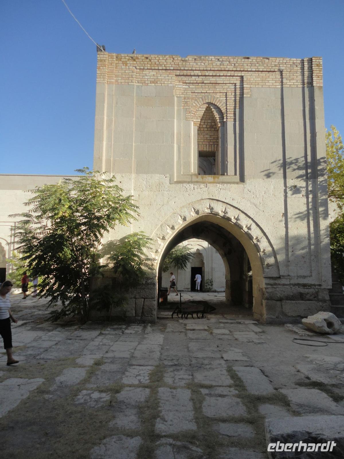 Unser weiterer Weg führte uns auf der D.300 Richtung Aksaray. Am späten Nachmittag erreichten wir bei tollem Sonnenstand "Sultanhani Kervansaray" - eine 1229 unter dem seldschukischen Herrscher Kobad gegründete Herberge, die den alten Händlern auf ihrer Karawanenroute einen Unterschlupft, die Karawanserei, bieten sollte. Die Karawanserei an der Seidenstraße zwischen Konya und Aksaray ist heute die größte Karawanserei in Kleinasien und liegt inmitten des Dorfes Sultanhani. Besonders das verzierte Portal und die kleine Moschee in der Mitte des Hofplatzes erschienen uns besonders sehenswert.