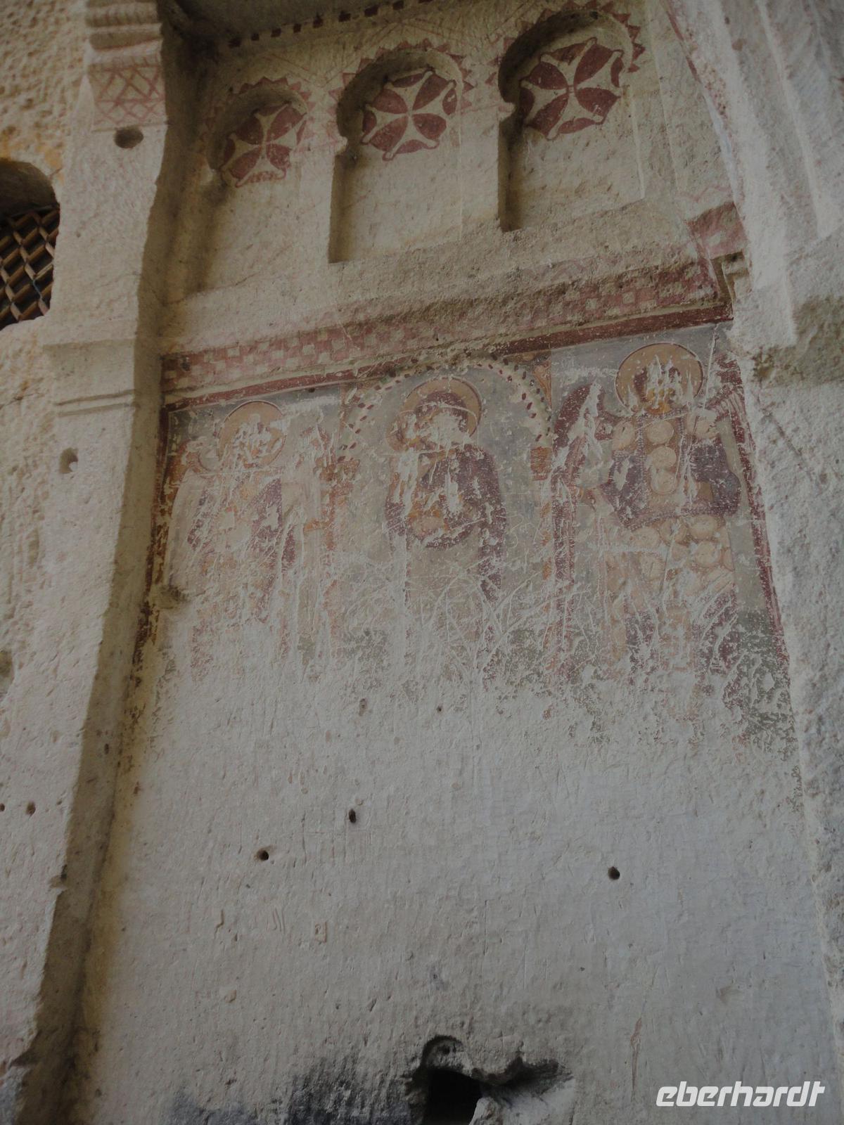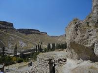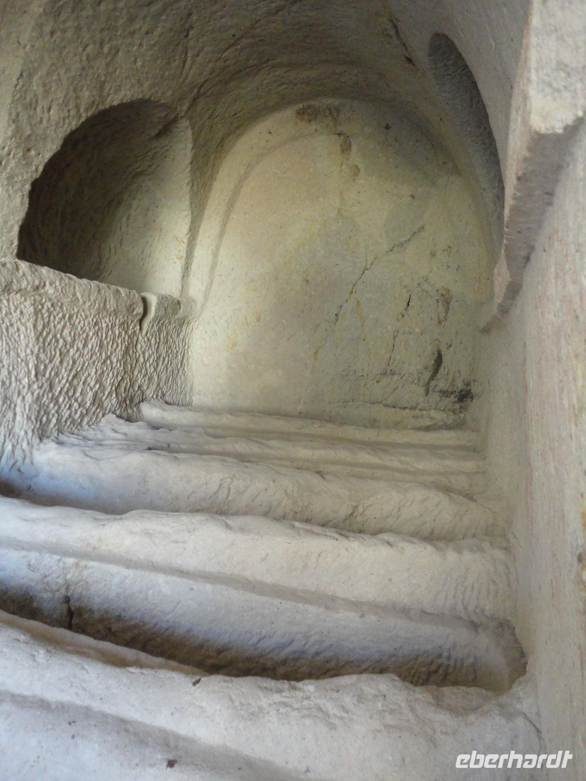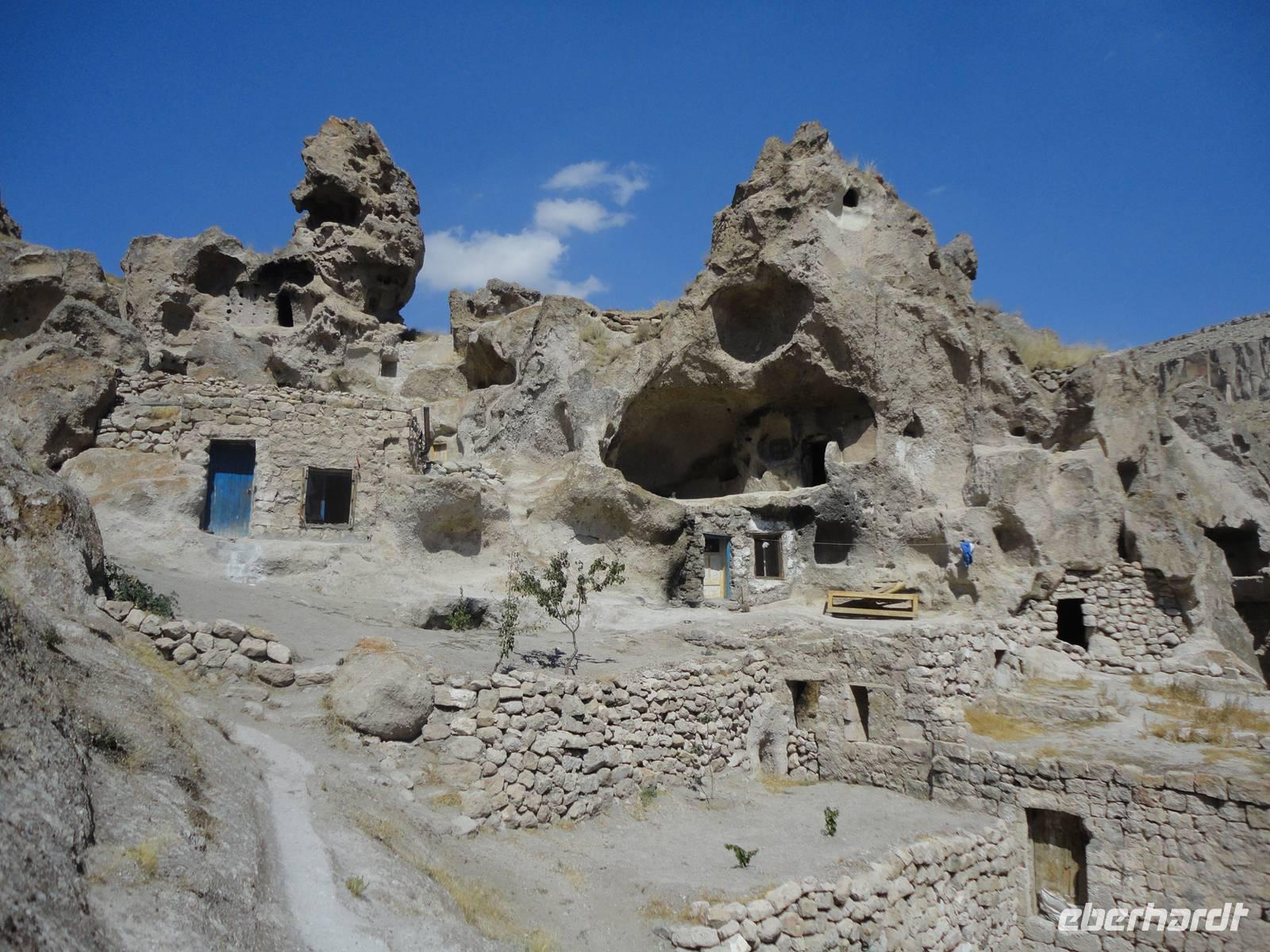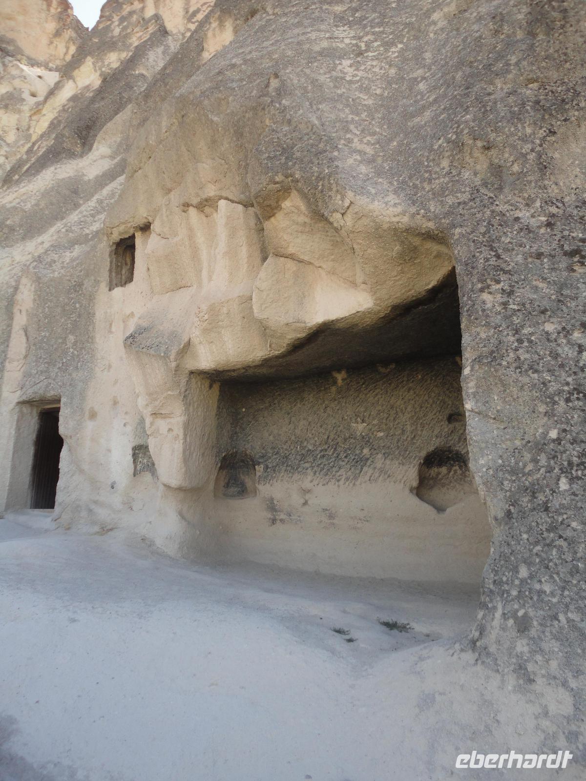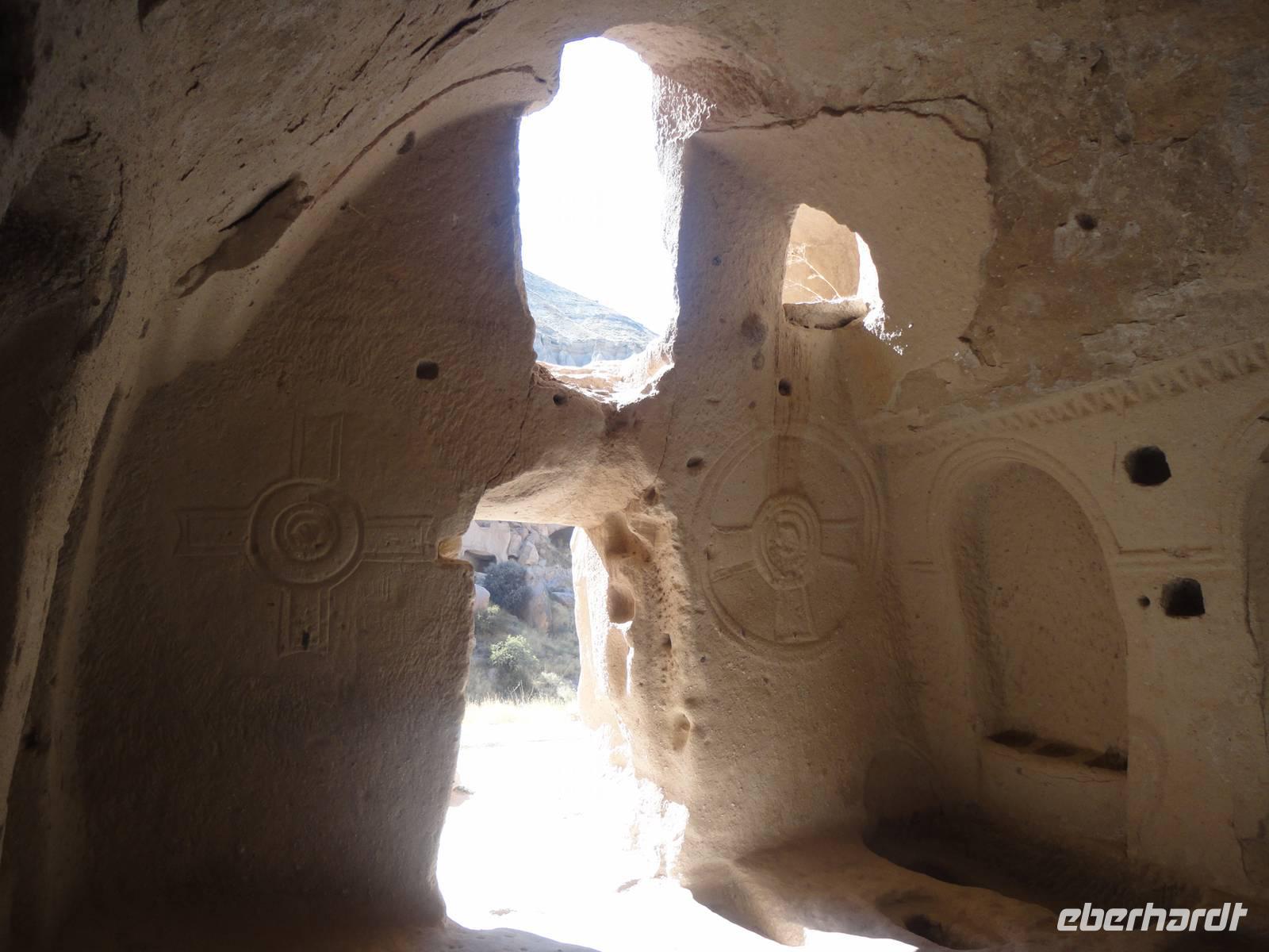 Danach fuhren wir weiter ins etwa 40 km entfernte Soganli-Tal mit seinen typischen byzantinischen christlichen Kirchen, Höhlenwohnungen und Taubenschlägen. Die Taubenschschläge im Soganli-Tal entscheiden dich von anderen durch den typischen weißen Kreis, der die Einbuchtungen umgibt. Wir hatten wieder Freizeit, um durch das Tal zu spazieren bzw. zu wandern oder klettern.