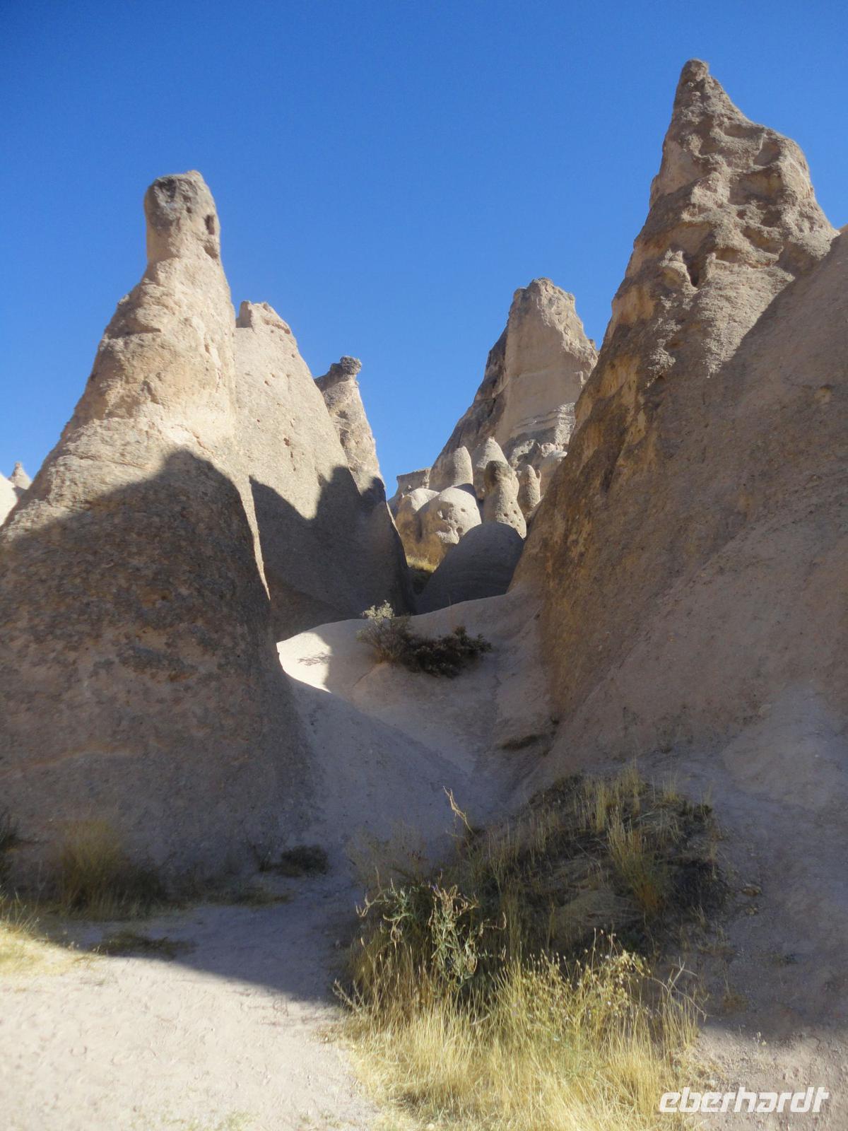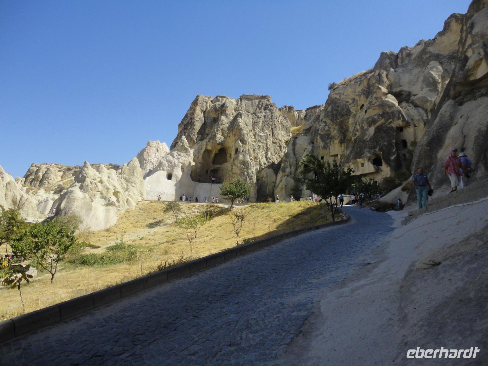 Unser Mittag nahmen wir in Uchisar ein, gleich im neben den Taubenschlägen gelegenen Bindalli Restaurant. Wir bekamen wieder ein üppiges und leckeres Büffet für 15 Lira. Anschließend hatten wir noch kurz Zeit, um spazieren zu gehen und die Taubenschluchten zu fotografieren.