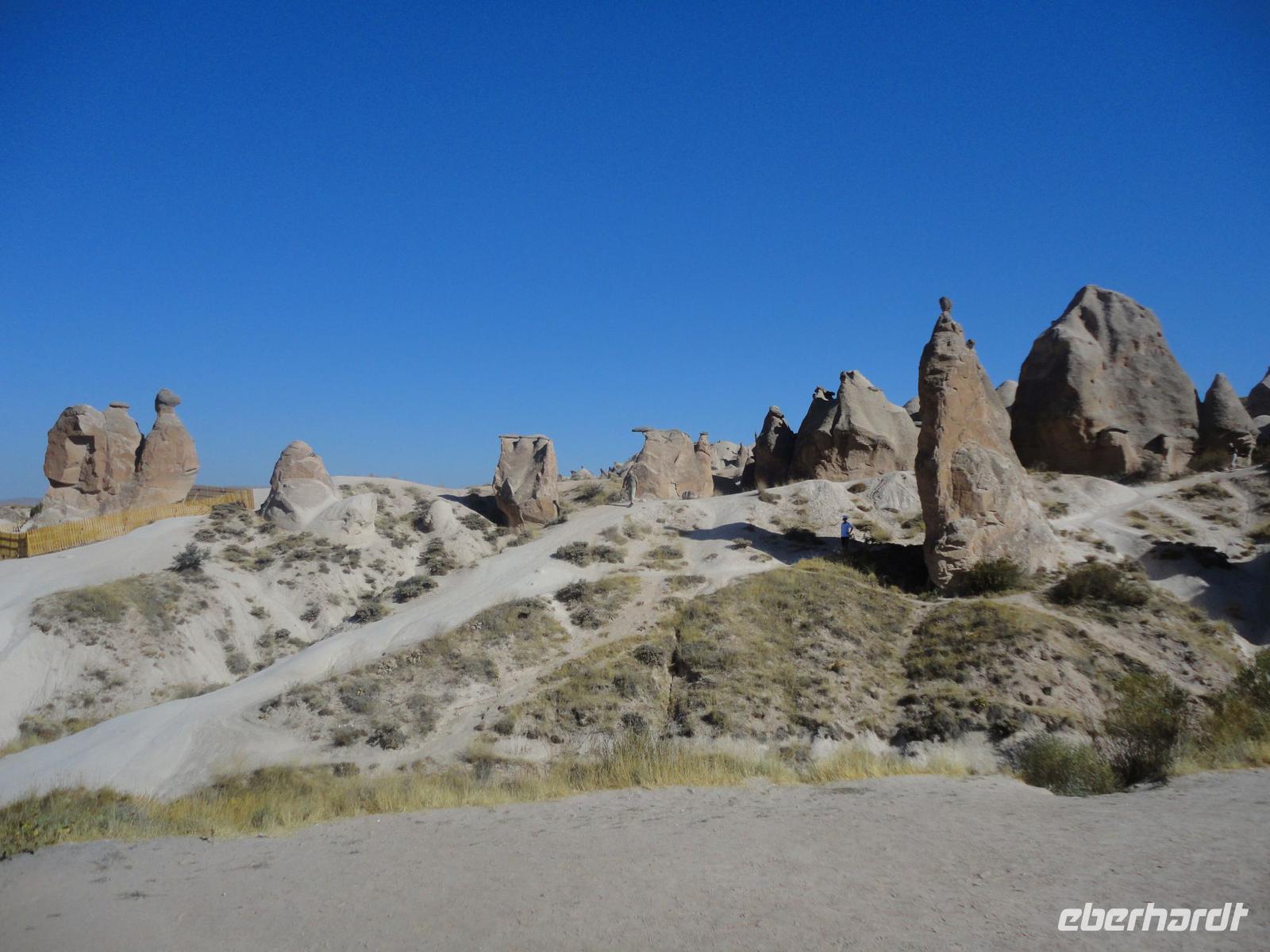 Gut gestärkt und mit viel Vorfreude und Sonne im Gepäck, starteten wir unseren heutigen Reisetag um 08:45 Uhr zu den Felsformationen von Kappadokien. Zunächst machten wir Stopp im Kameltal und hatten genügend Zeit durch die beeindruckenden Formationen zu spazieren und Fotos zu schießen. Anschließend fuhren wir nach Göreme und das beeindruckende Freilichtmuseum zu bestaunen.