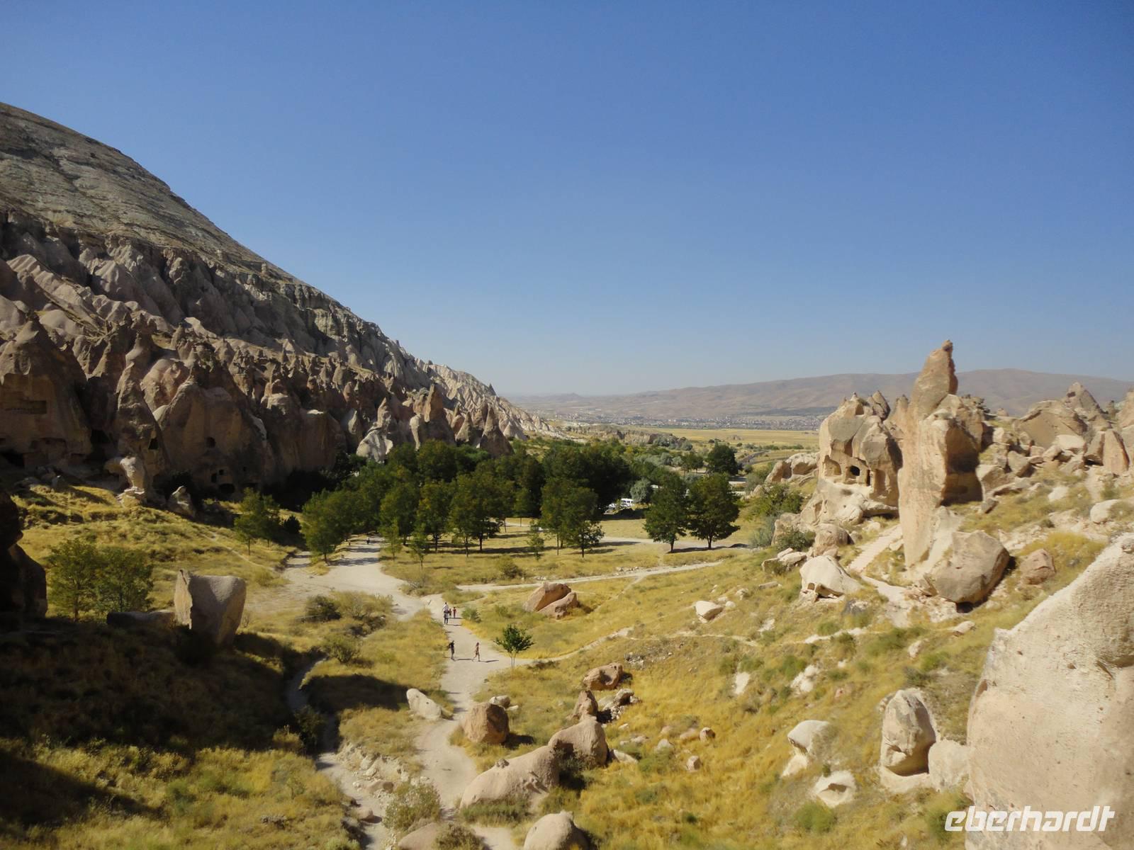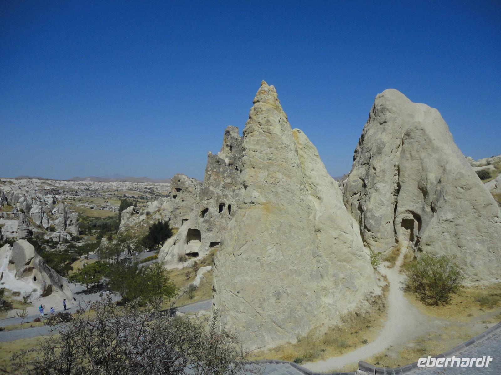 Die 1985 zum UNESCO-Welterbe ernannte Landschaft ist durch markante Tuffsteinformationen wie die Feenkamine und Höhlenwohnungen bekannt. Im 4. Jahrhundert nutzten Christen sie erstmals als Hausungen für ein andächtiges Leben in Abgeschiedenheit. Die Höhlen dienten zudem als Versteck vor Feinden - also den Persern, Römern, Arabern und Mongolen. Heutzutage findet der Besucher nicht nur Überbleibsel ganzer Wohnanlagen, sondern von Kirchen und Kapellen, die ins Gestein gearbeitet wurden. Besonders beeindruckend sind die Höhlen, die bis zu zehn Stockwerke tief gebaut wurden und Küchen, Lager, Schlafräume und sogar Tierställe und Leichenhallen beinhalten. Hervorzuheben ist zudem, dass das Wohnen in diesen Tuffsteinformationen besonders praktisch war, da sie im Sommer kühl und im Winter warm hielten! Soweit heute bekannt ist, wirde Göreme 1923/4 von den letzten Bewohnern verlassen.