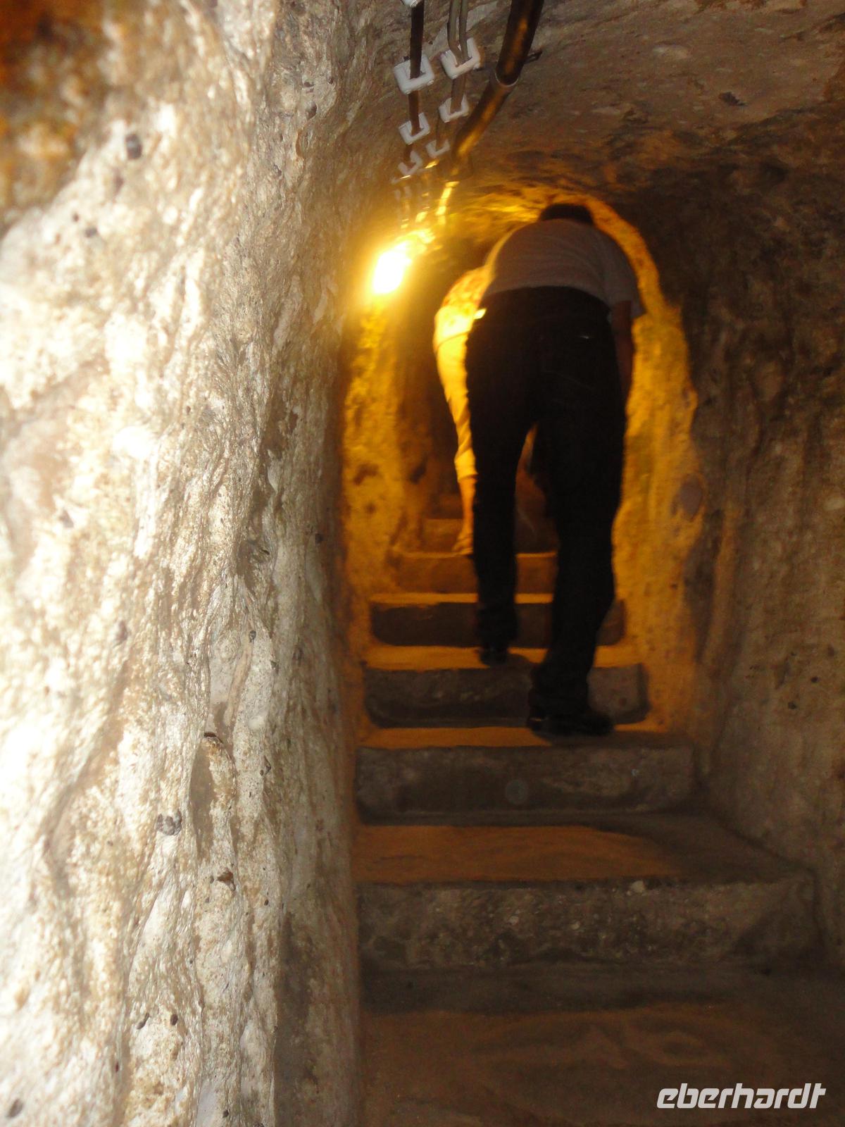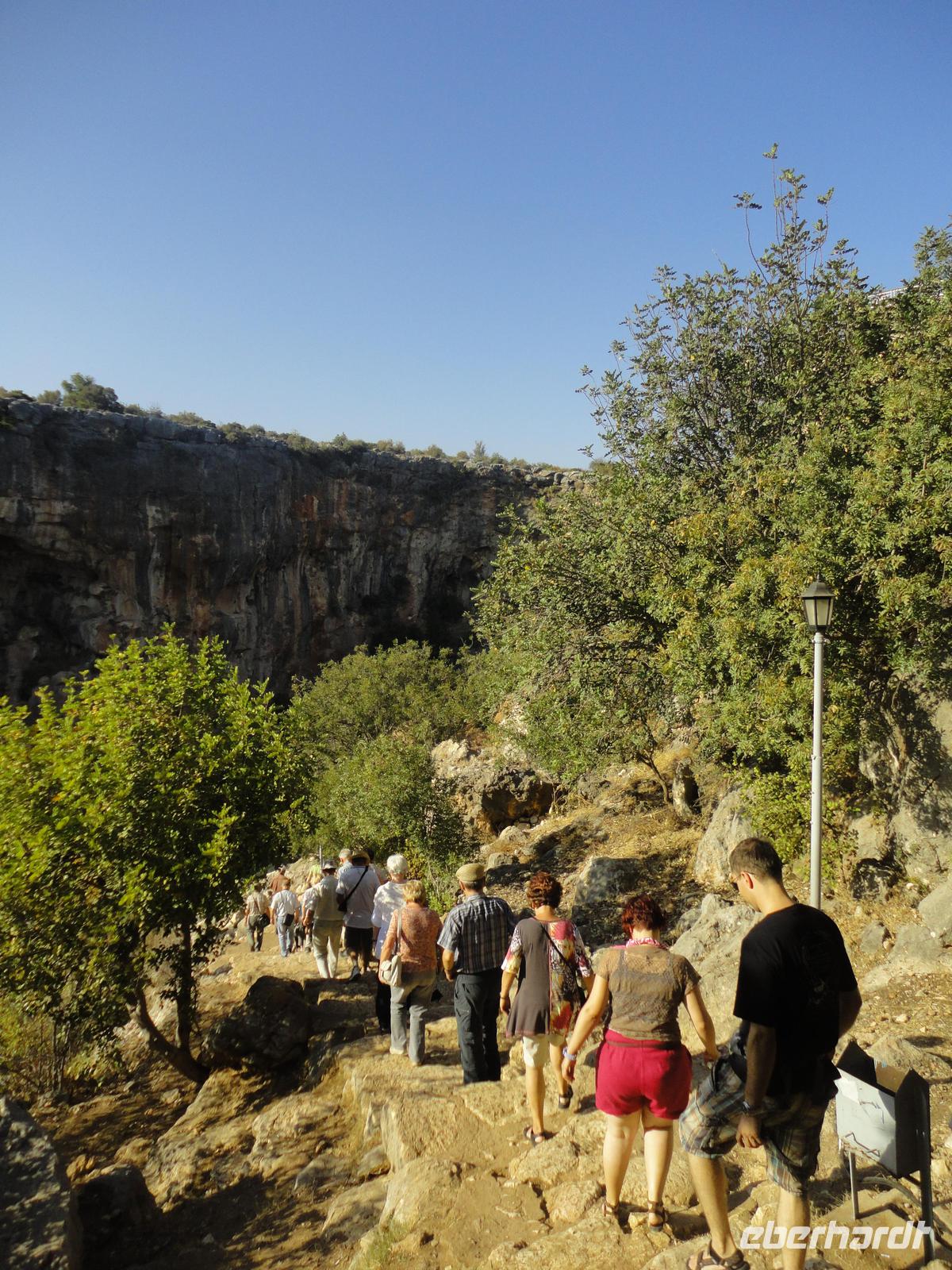 Schließlich führen wir Richtung Mersin am Mittelmeer und dann entlang der Autobahn D.400 bis zu der Korykischen Grotte und der Kapelle von Himmel und Hölle. Der späte Nachmittag eignete sich bestens, um die mehr als 400 Stufen hinab in die Grotte zu steigen. Da es unten in der Grotte dann aber doch etwas zu schlüpfrig wurde, entschied sich die Mehrheit an der Kapelle zu warten. Schließlich mussten wir den Weg, den wir hinabgestiegen sind, auch wieder hinauf schaffen!