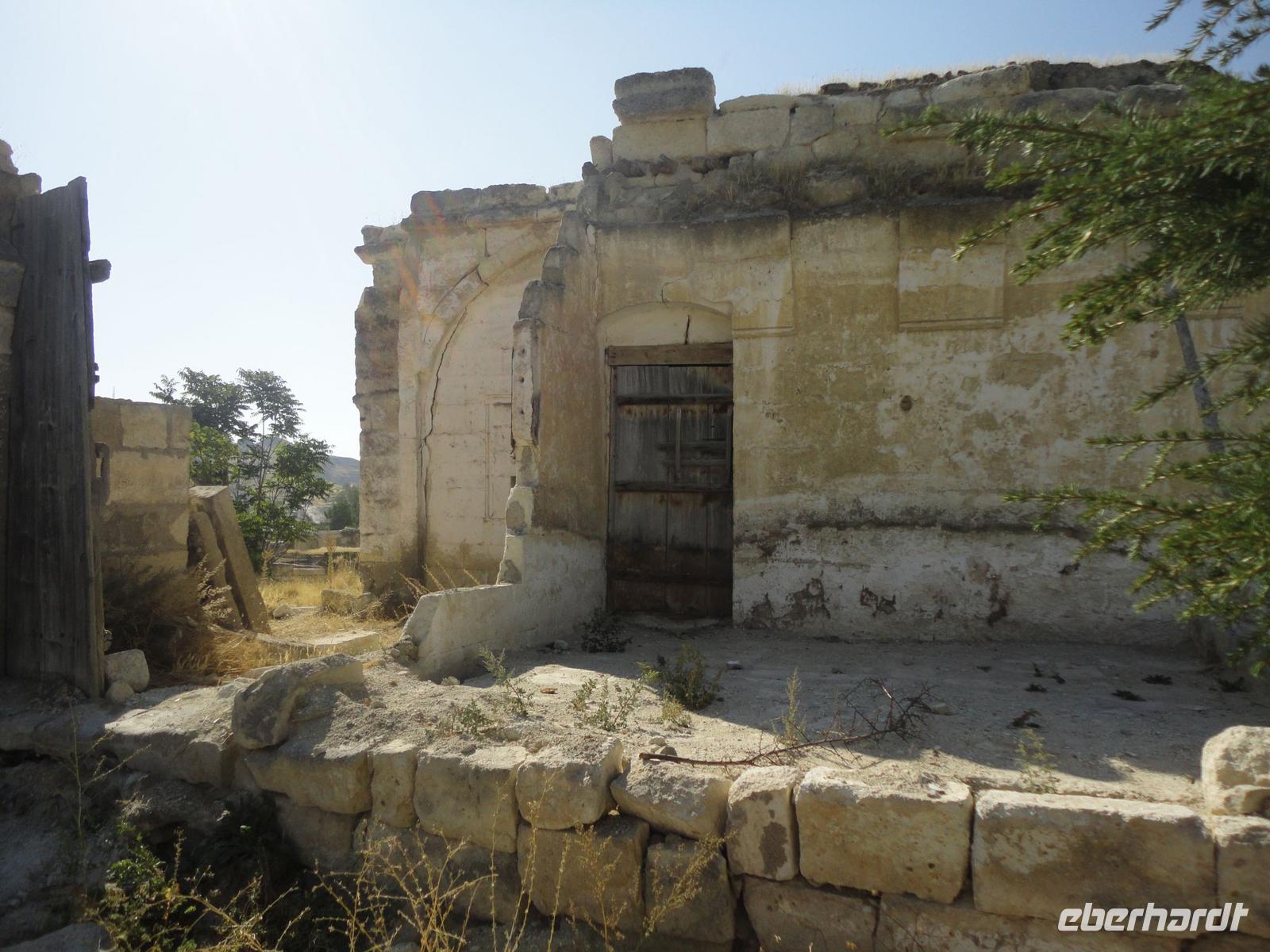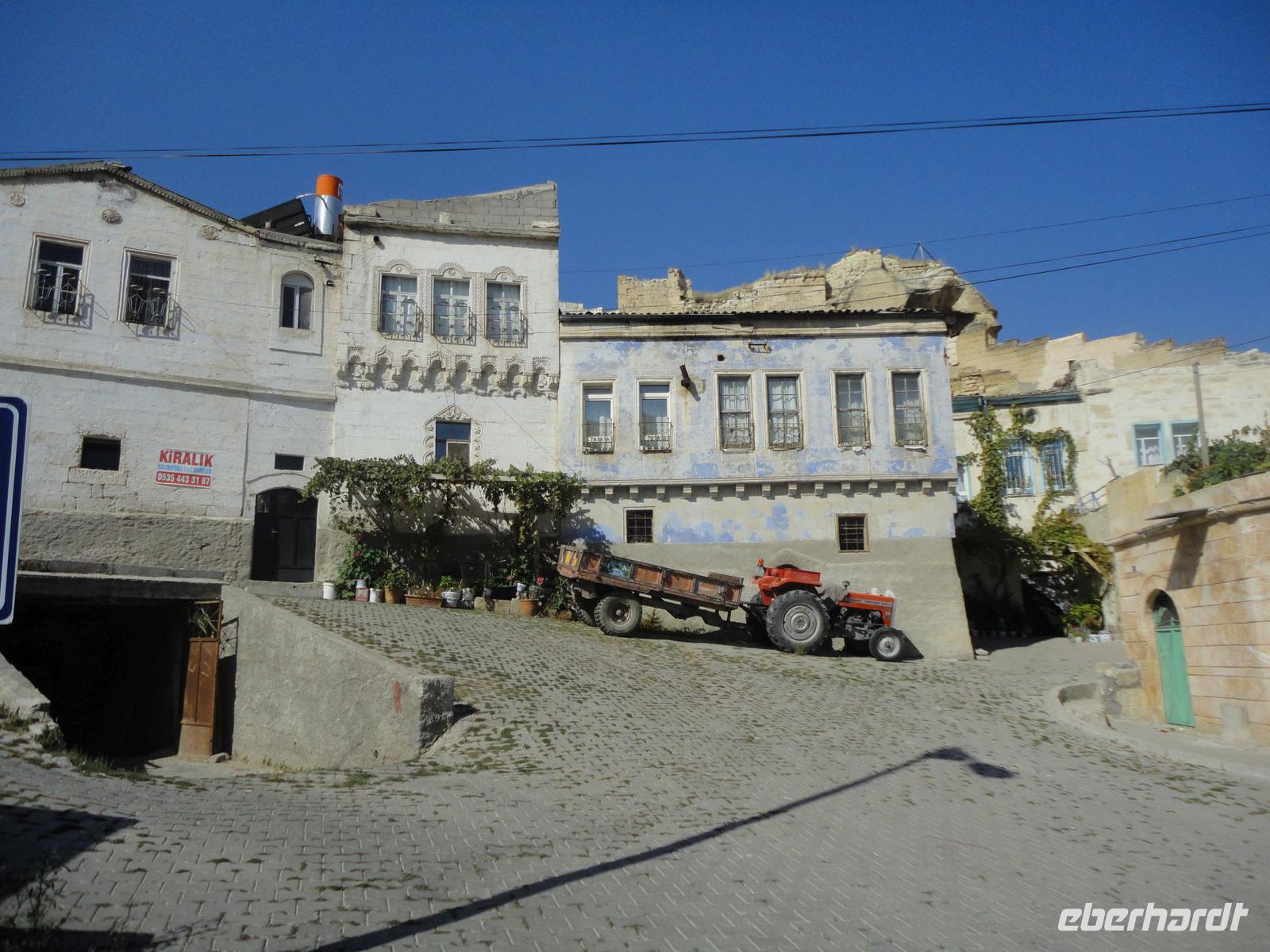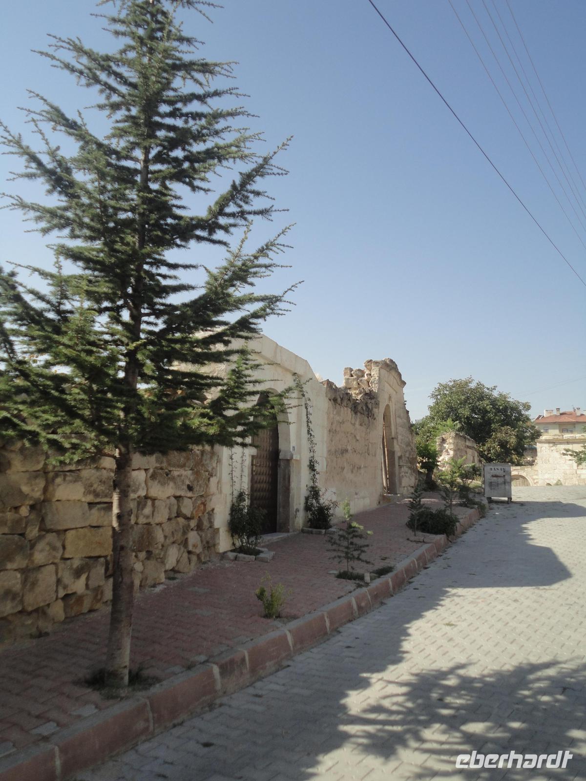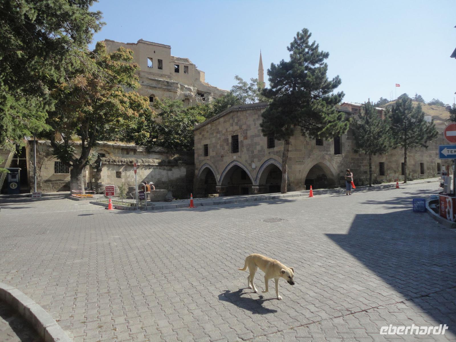 Heute stand die Besichtigung eines der schönsten Dörfers Kappadokiens, des griechisch-orthodoxen Dorfes Mustafapasa auf unserem Programm. Nach der Ankunft am Belediye mit der goldenen Büste hatten wir eine Stunde Freizeit, um einen Spaziergang durch das Dorf zu unternehmen. Das Dorf wirkte teilweise wie ausgestorben, dann wieder überraschten uns Einheimische mit ihren Deutschkenntnisse oder moderne Kunstmuseen. Auch sehr interessant war, wie die Frauen auf der Straße in riesigen Töpfen Tomaten zu Ketchup zubereiteten.