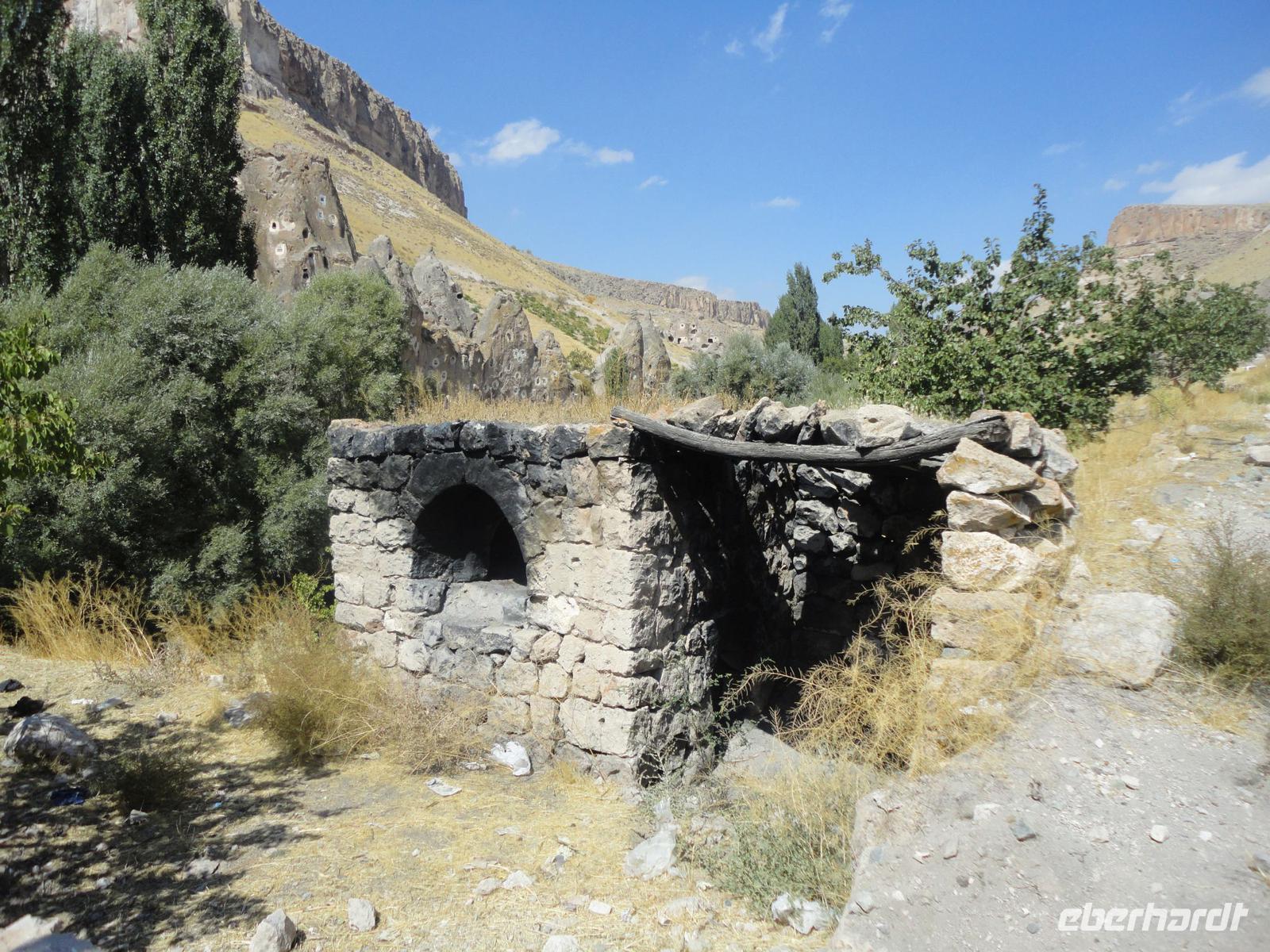 Untem am Melendiz-Fluss angekommen nutzten wir das schöne Wetter, um kurz zu verweilen und auf die Nachzügler zu warten. Anschließend spazierten wir etwa eine halbe Stunde entlang des Melendiz-Flusses bis zu einer Teestube, an der uns Eberhardt TRAVEL zum Tee einlud. Die kleinen "schwimmenden Pavillons" waren eine Augenweide.
