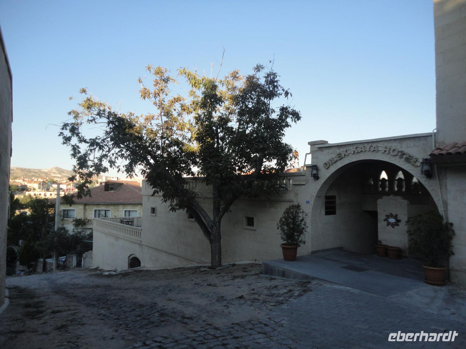 Nach der Besichtigung legten wir den letzten Rest unserer heutigen 600 Kilometer langen Etappe auf der Straße D.300 weiter fort, um am Abend in Ortahisar in unserem Hotel Dilek Kaya erschöpft und hungrig anzukommen. Dieses wunderschöne und wahnsinnig beeindruckende Höhlenhotel verwöhnte uns dann sehr schnell mit seinem besonderen Ambiente. Nachdem wir dann auch eine leckere warme Mahlzeit genießen konnten, fielen wir gegen 22:30 Uhr völlig müde und mit den ersten tollen Eindrücken ins Bett.