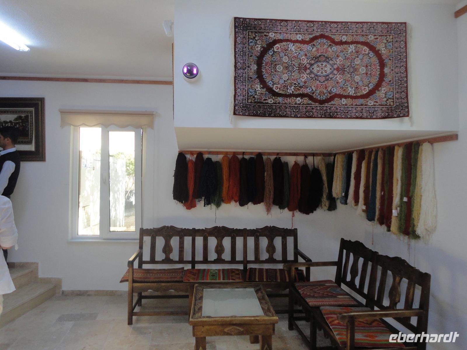Am späten Nachmittag besuchten wir noch eine Teppichknüpferei. Wir waren sehr beeindruckt von dem langen Prozess der Herstellung eines Teppichs. Schon die Herstellung einer einzelnen robusten Faser aus den hauchdünnen Seidenfädchen der Raupen hat uns sehr beeindruckt. Die Fingerfertigkeit der jungen Frauen, die den Teppich meist nach einer Vorlage knüpfen, war ebenfalls sehr interessant zu bestaunen. Auch die wunderschönen Teppiche, die uns gezeigt wurden und die freundliche lustige Art des Vortragenden haben uns sehr gefallen.