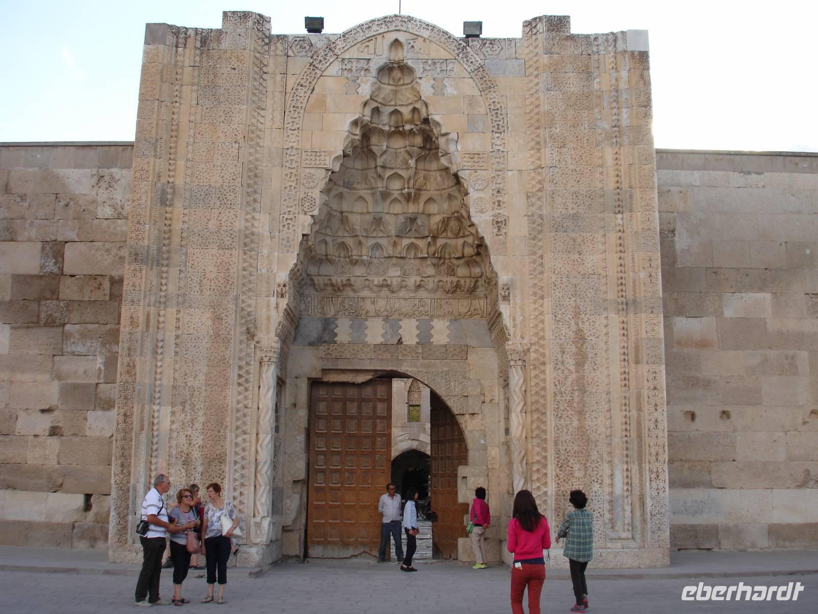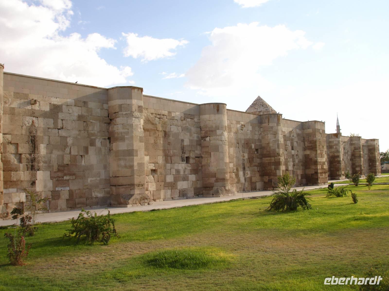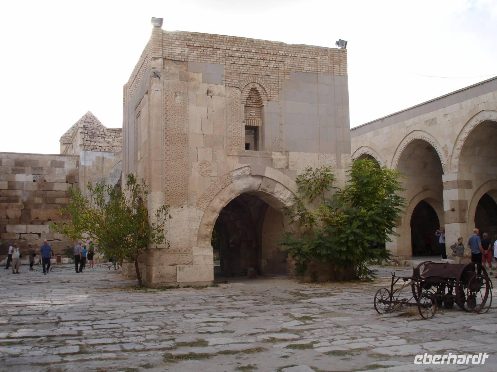 Weiter ging unsere Fahrt zur Karawanserei von Suthanhasi. Auf Grund ihrer zentralen Lage an der historischen Seidenstraße und am seldschukischem Karawanweg war sie eine der wichtigsten Behergungsstätten für die Karawanen und reisenden Kaufleute.Alle notwendigen Verrichtungen von Mensch und Tier konnten vollzogen werden und die umgebenden starken Mauern boten umfassende Sicherheit.