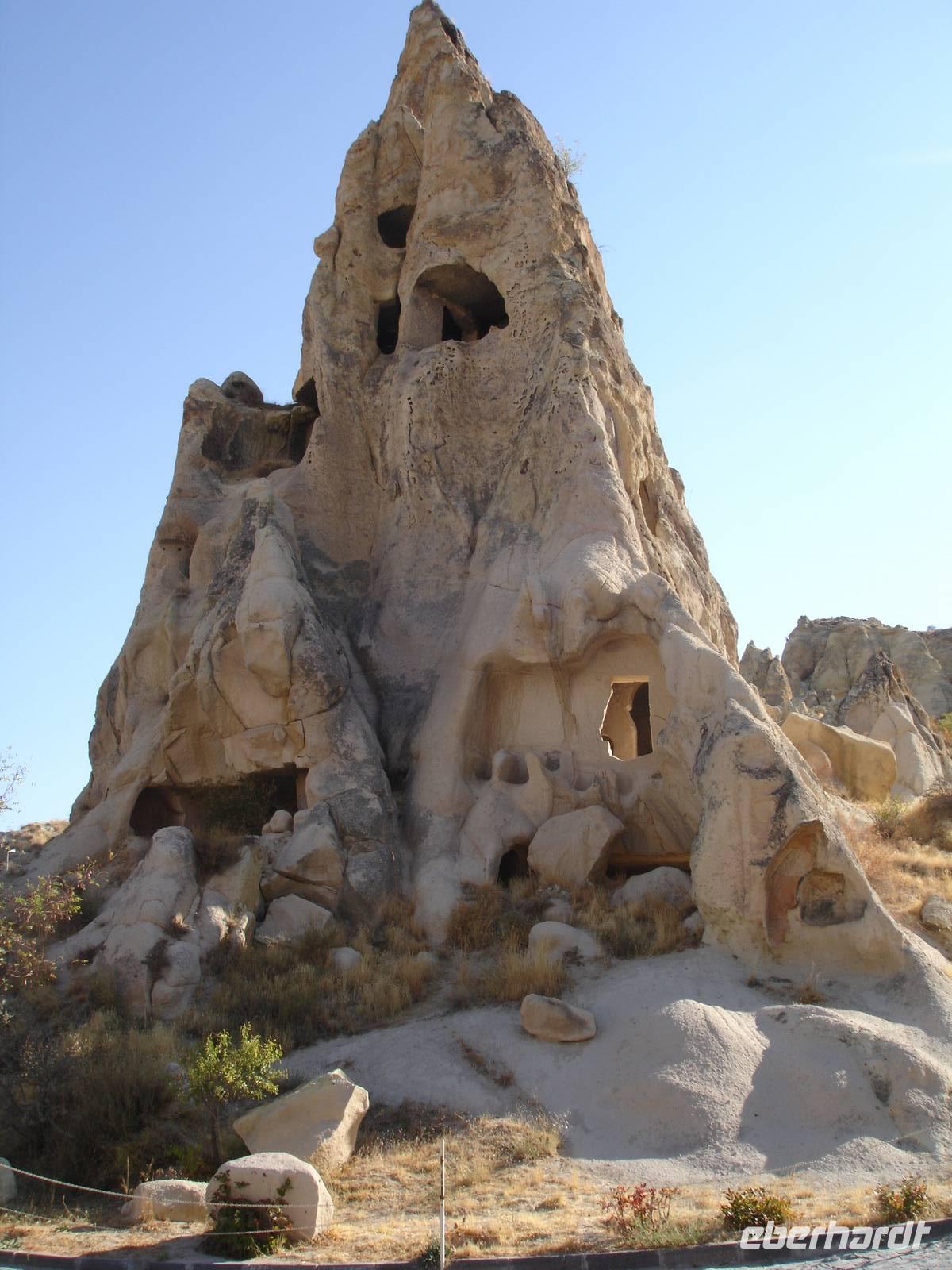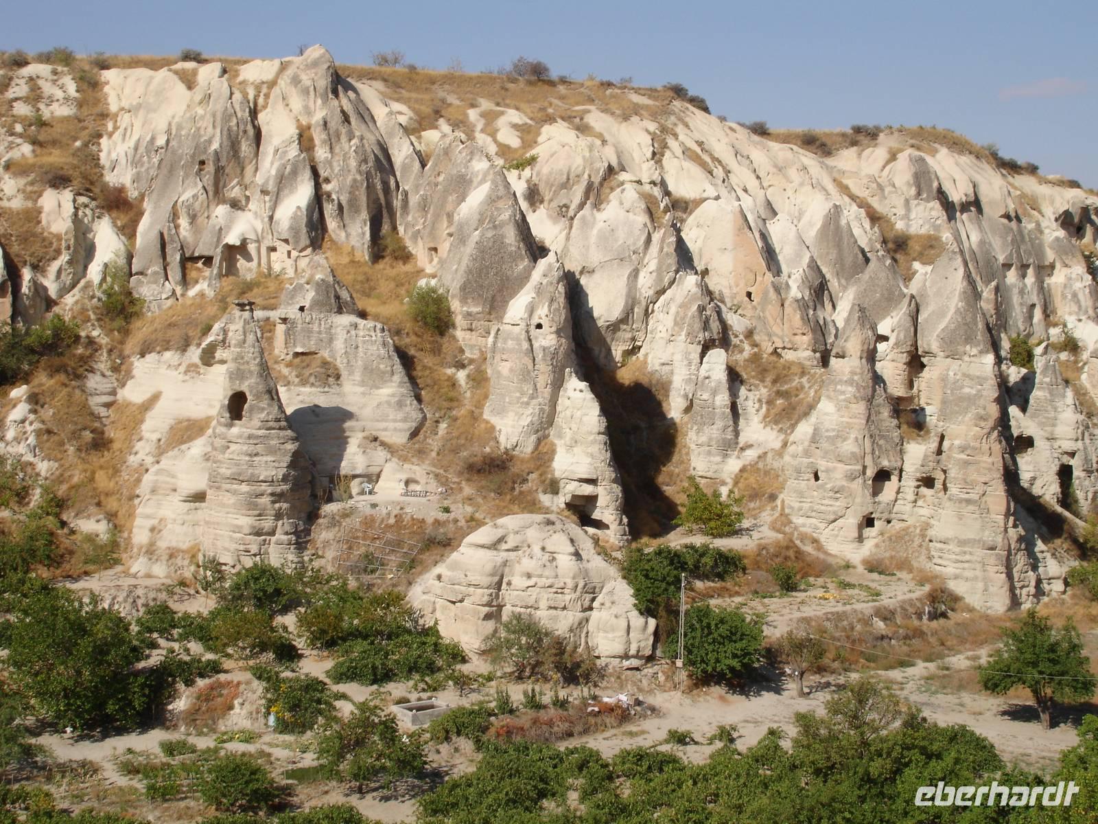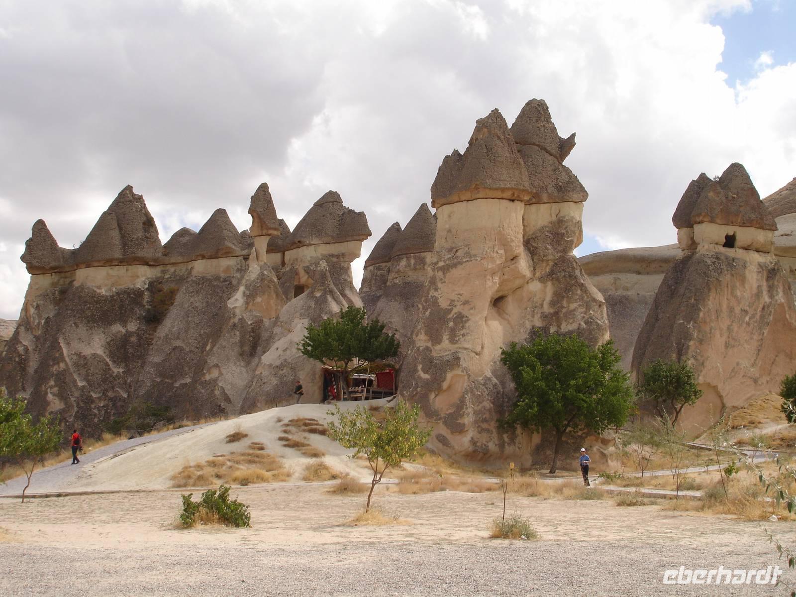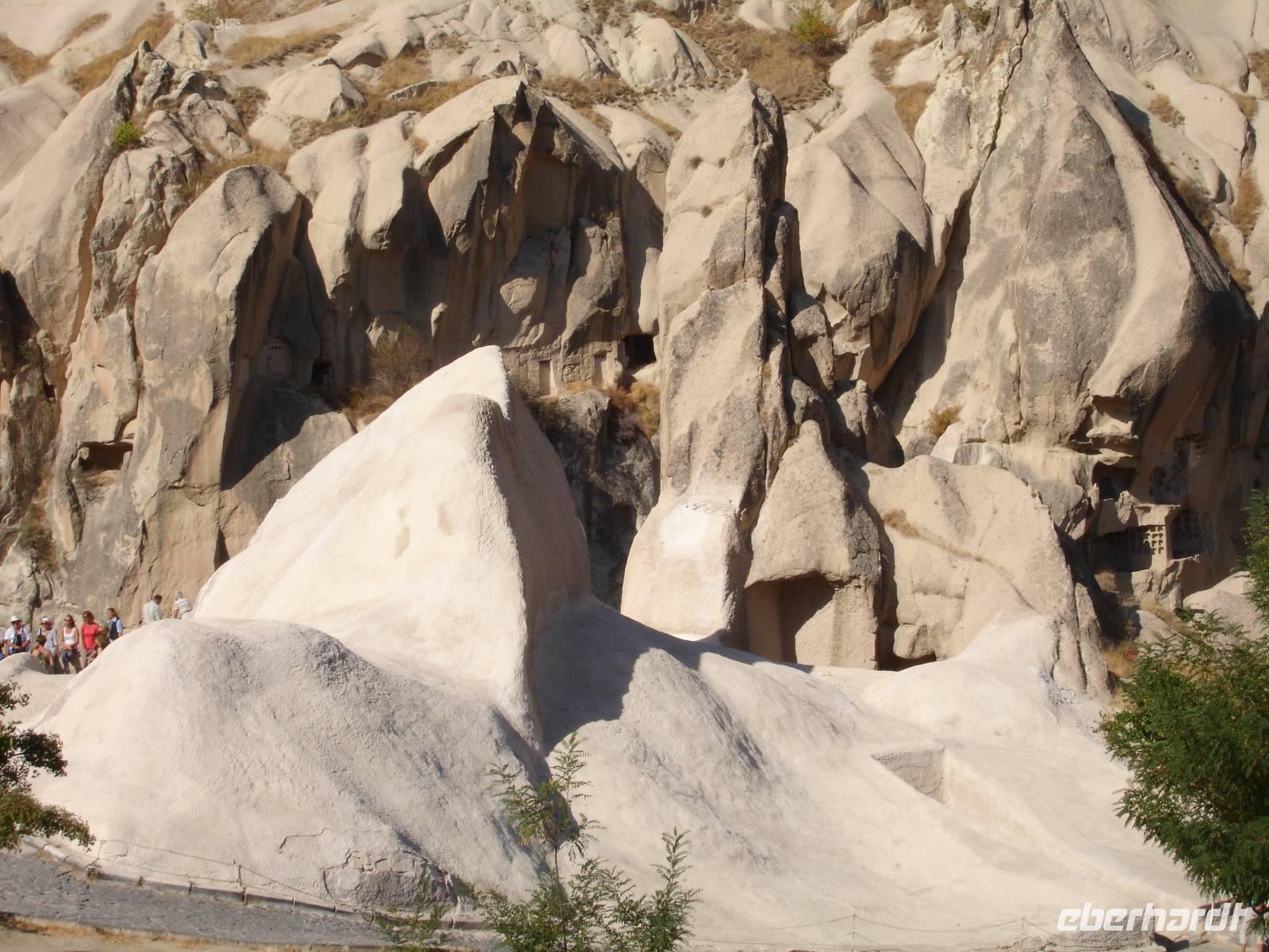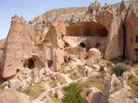 Weiter ging es dann zum Freiluftmuseum "Zelve-Tal", wo die Menschen früher in Höhlenwohnungen lebten. Das Tal besteht aus insgesamt drei Tälern und bei fast noch hochsommerlichen Temperaturen wanderten wir zu den schönsten Orten wie einer Mühle, der Weintrauben-Kirche sowie dem Dorfplatz mit einer Moschee, welche christliche Züge aufweist.Nach dieser "heißen" Herausforderung war nun eine Rast sehr willkommen.Diese vollzogen wir in Pashabag- dem Weinberg des Pashas.Hier hatte jeder genügend Zeit, um sich zu stärken und die schönsten, beeindruckendsten Feenkamine Kappadokiens, die entweder mit Zwei- oder Dreitürmchen aus Torfstein versehen waren, an zu schauen.