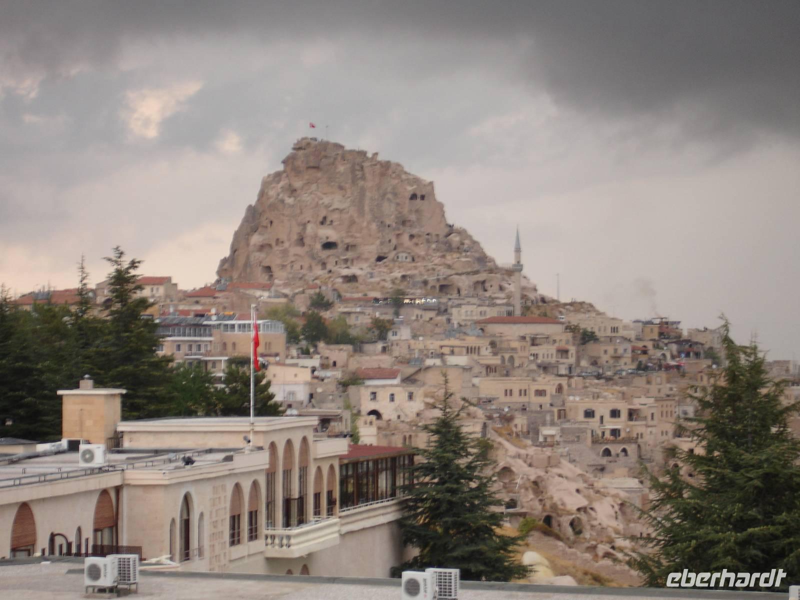 Auf der Rückfahrt zum Hotel machten wir in Ortahisar noch einen Fotostopp für einen Postkartenblick auf den Burgfelsen und die Stadt.