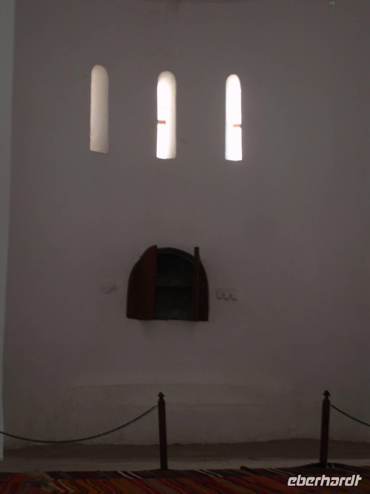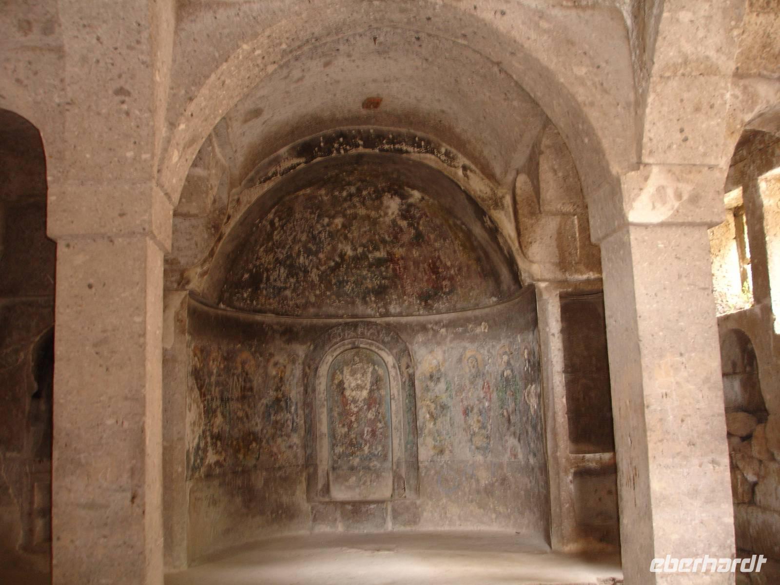 Danach ging es in Richtung des mehr als 3000 Meter hohen Vulkans Hassan Dagi nach Güzelyurt, was übersetzt "Schöne Heimat" heißt. Hier besichtigten wir eine Kirche, welche zu Ehren von Gregorius Theologus, einem Mitbegründer der griechisch-orthodoxen Glaubenslehre, entstand und 1923 im Zuge des Völkeraustausches zwischen Griechen und Türken in eine Moschee umgewandelt wurde. Dies Umwandlung basiert auf den Vorschriften des Korans, welcher auf die Erhaltung von Kirchen besteht. Deshalb kann man im Inneren sowohl griechisch-orthodoxe als auch Symbole des Korans sehen.