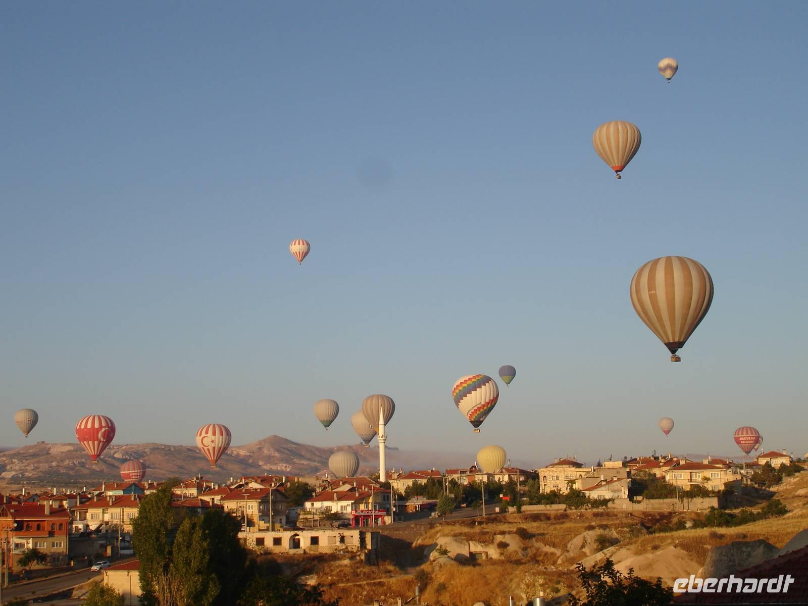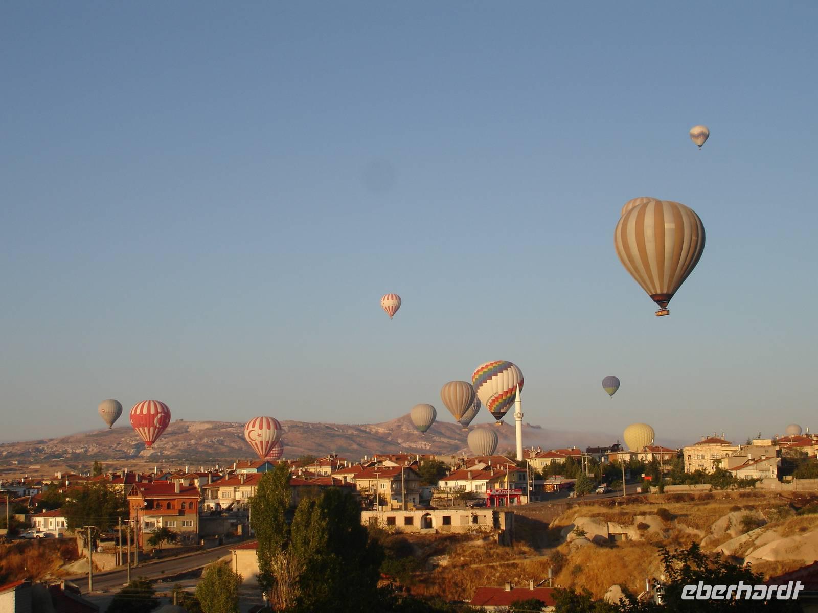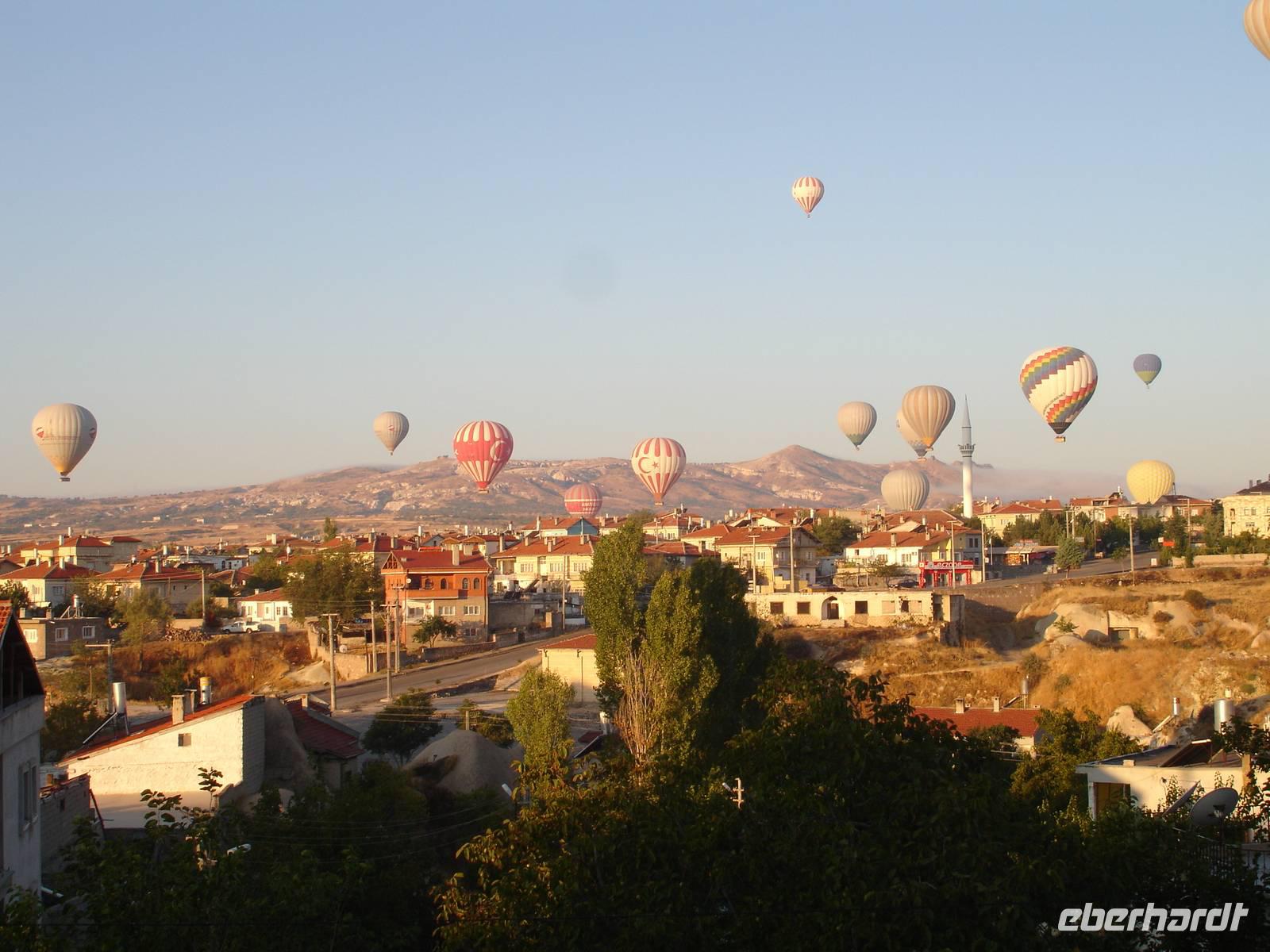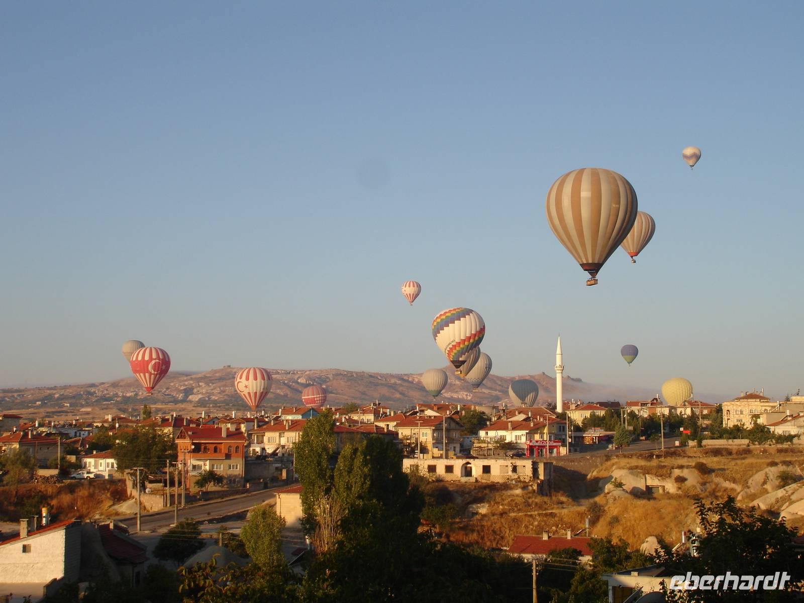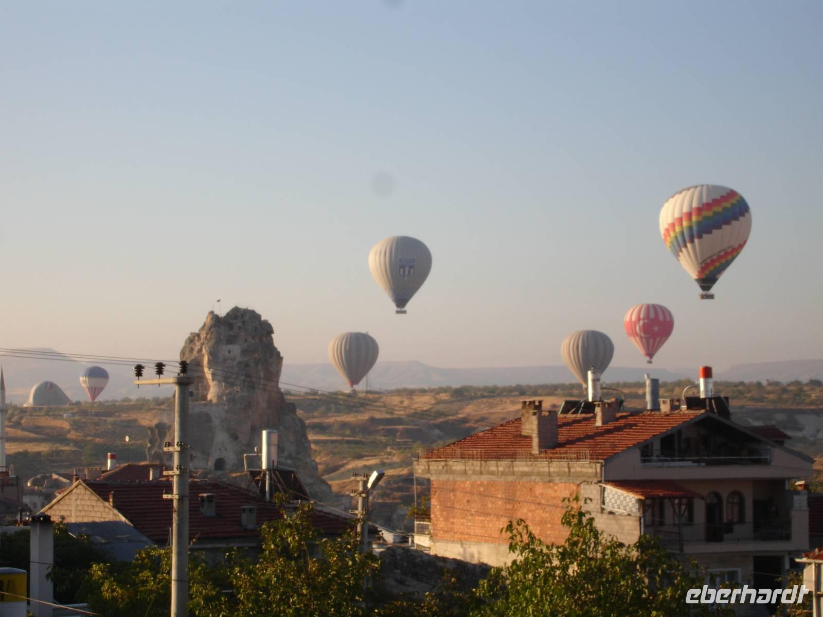 Der allmorgendliche Weckruf des Muezzins gegen 5.15 Uhr galt heute auch den Gäste, welche eine Ballonfahrt erlebn wollten. Den ganzen Tag über schwärmten sie noch von der wunderschönen Aussicht auf diese Märchenlandschaft bei herrlichem Sonnenaufgang.
