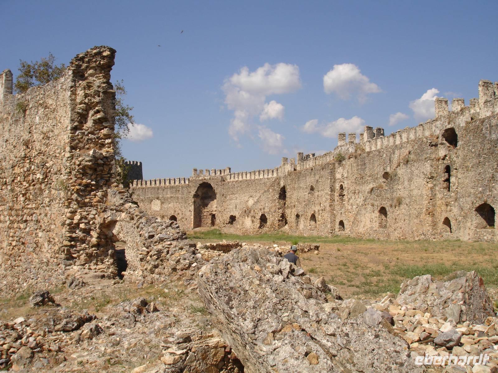 Die Burganlage verdankt ihren Namen Karamanoglu Mahmut Bey, welcher hier von 1300 bis 1308 herrschte. Sie ist 200 Meter lang und besitzt 39 Türme. Als zusätzliche Leistung von Eberhardt Travel besichtigten wir die Festung.